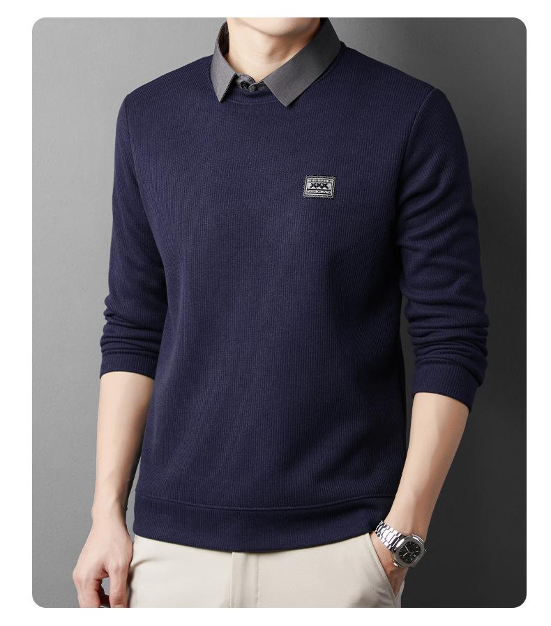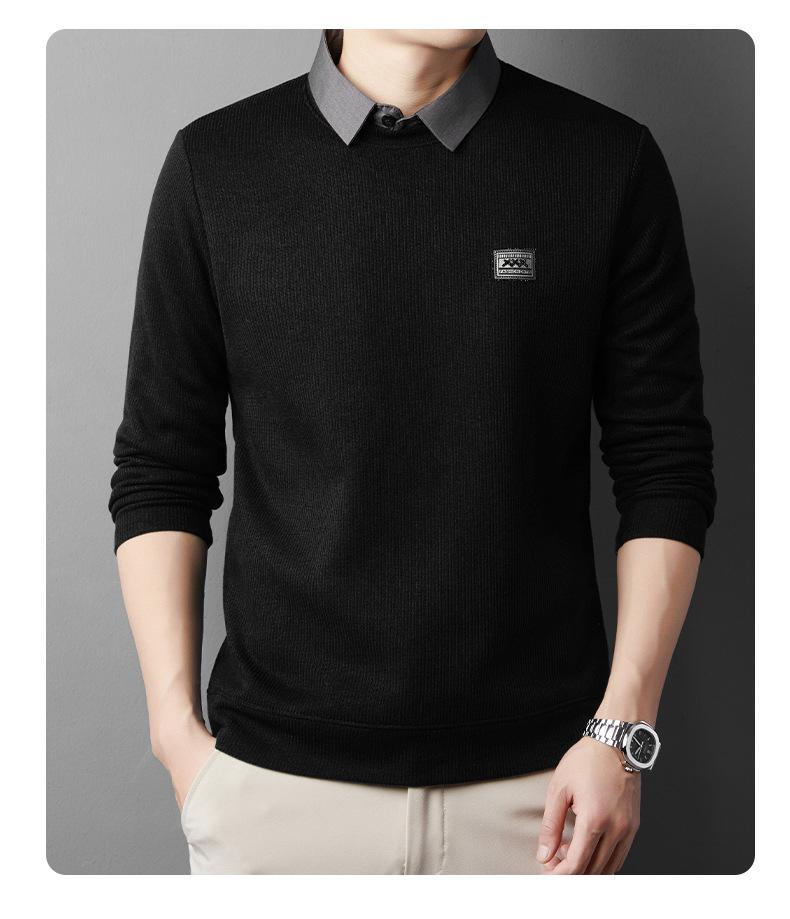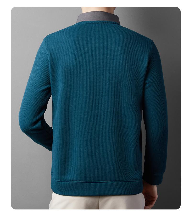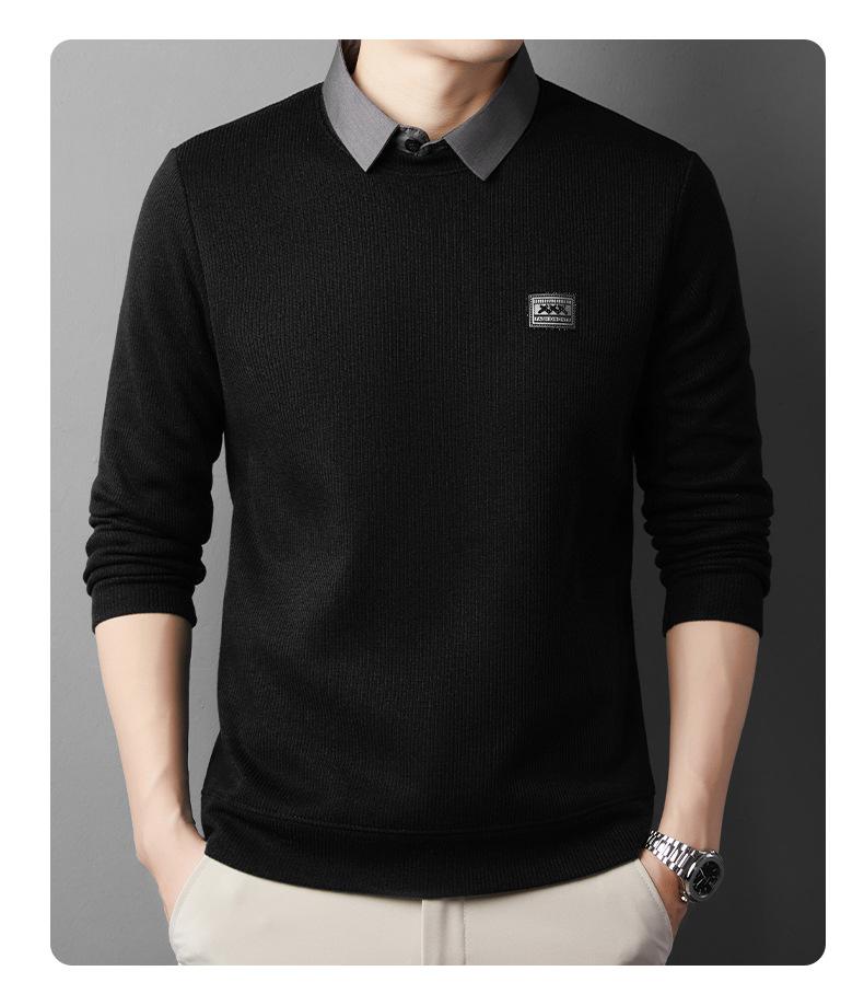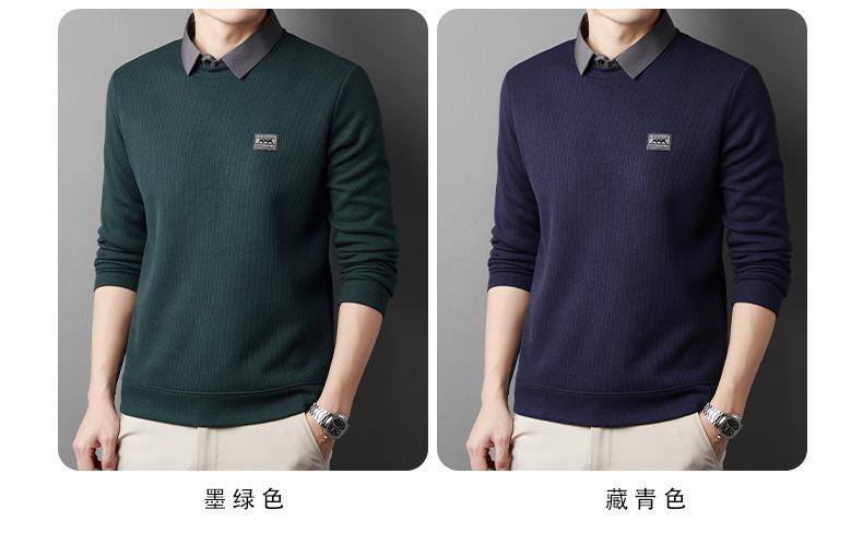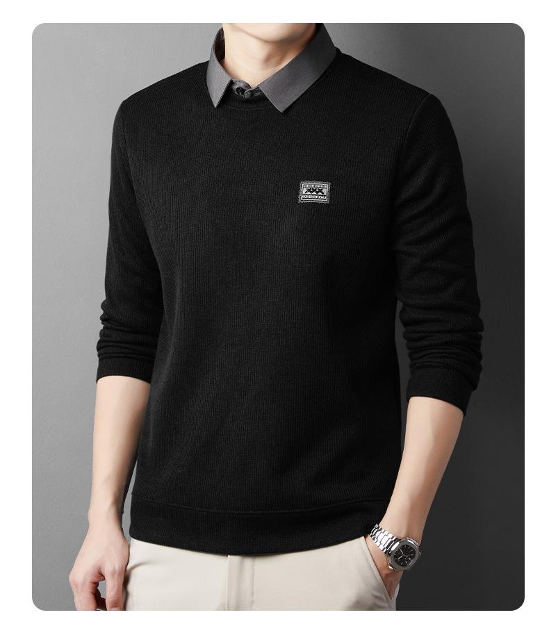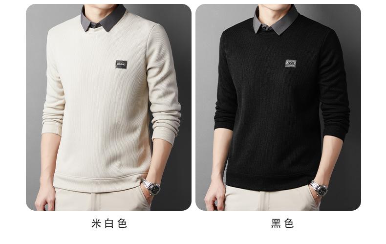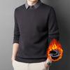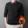 Suéter de invierno nuevo para hombre, de punto, con forro polar, cuello falso, de dos piezas, grueso, con base de gofre.