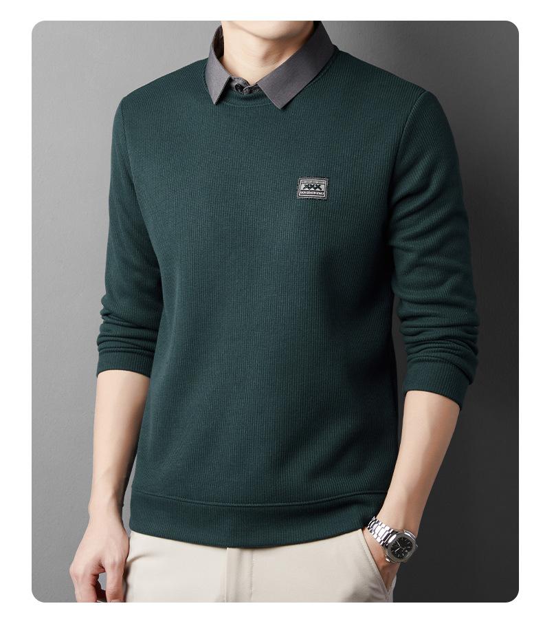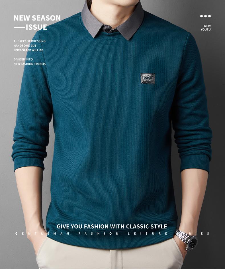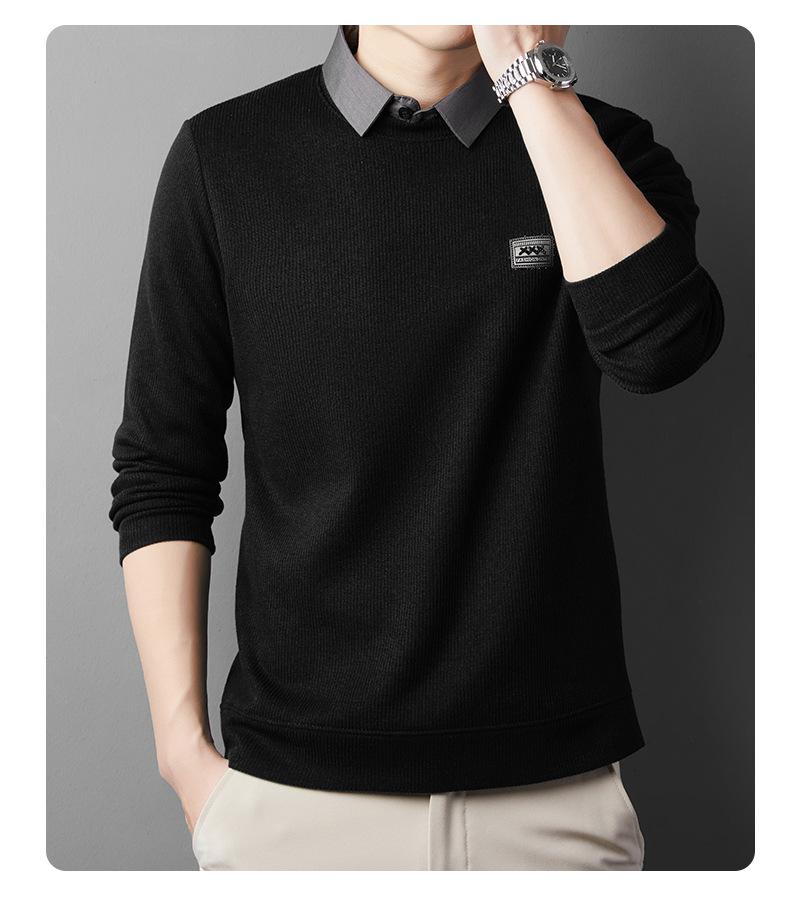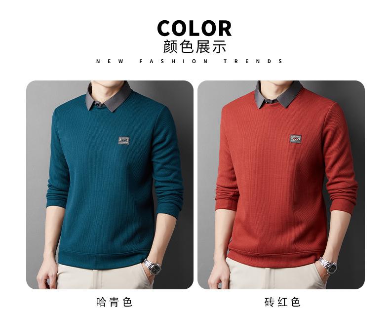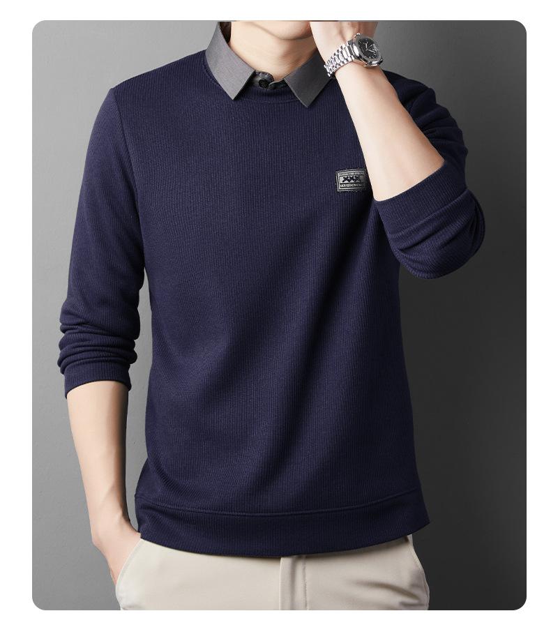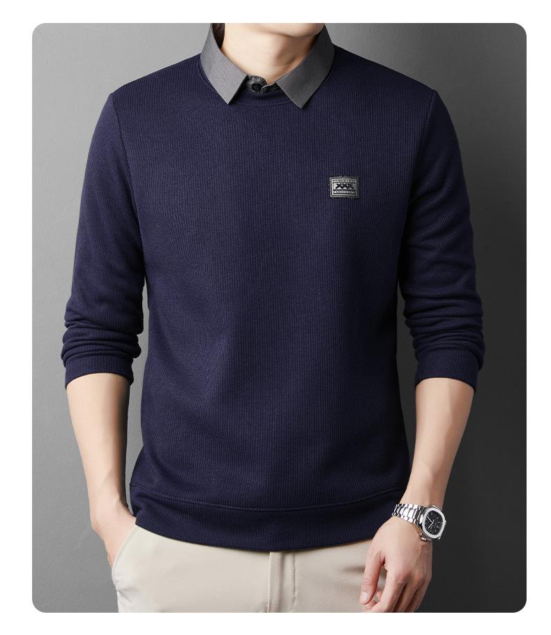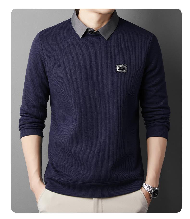Suéter de invierno nuevo para hombre, de punto, con forro polar, cuello falso, de dos piezas, grueso, con base de gofre.