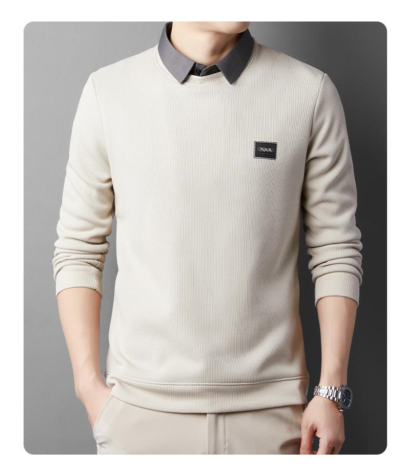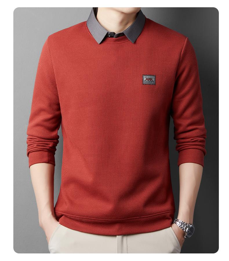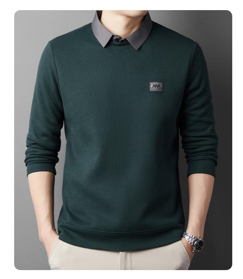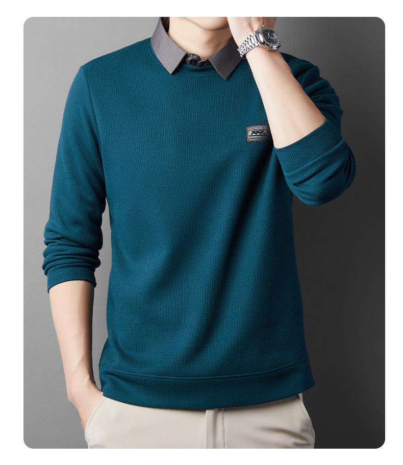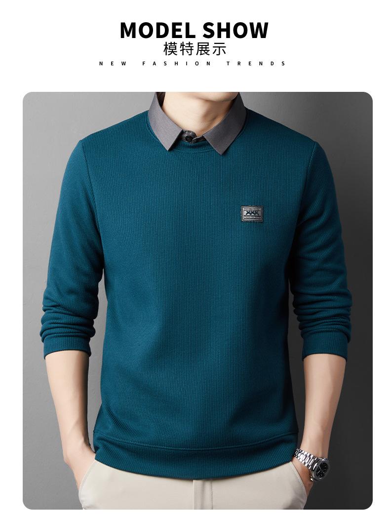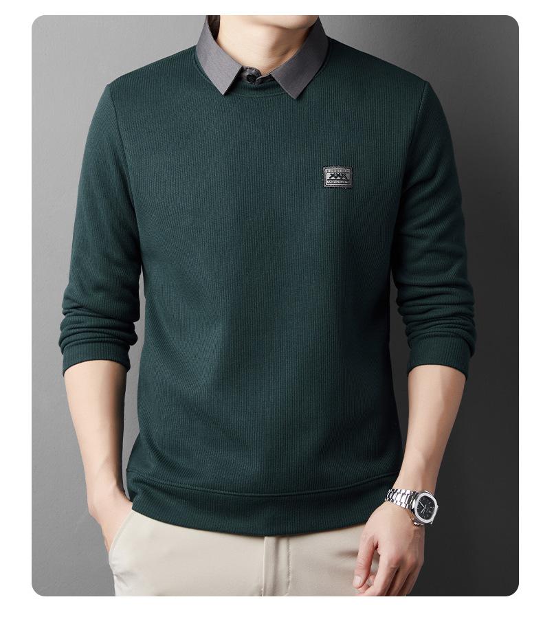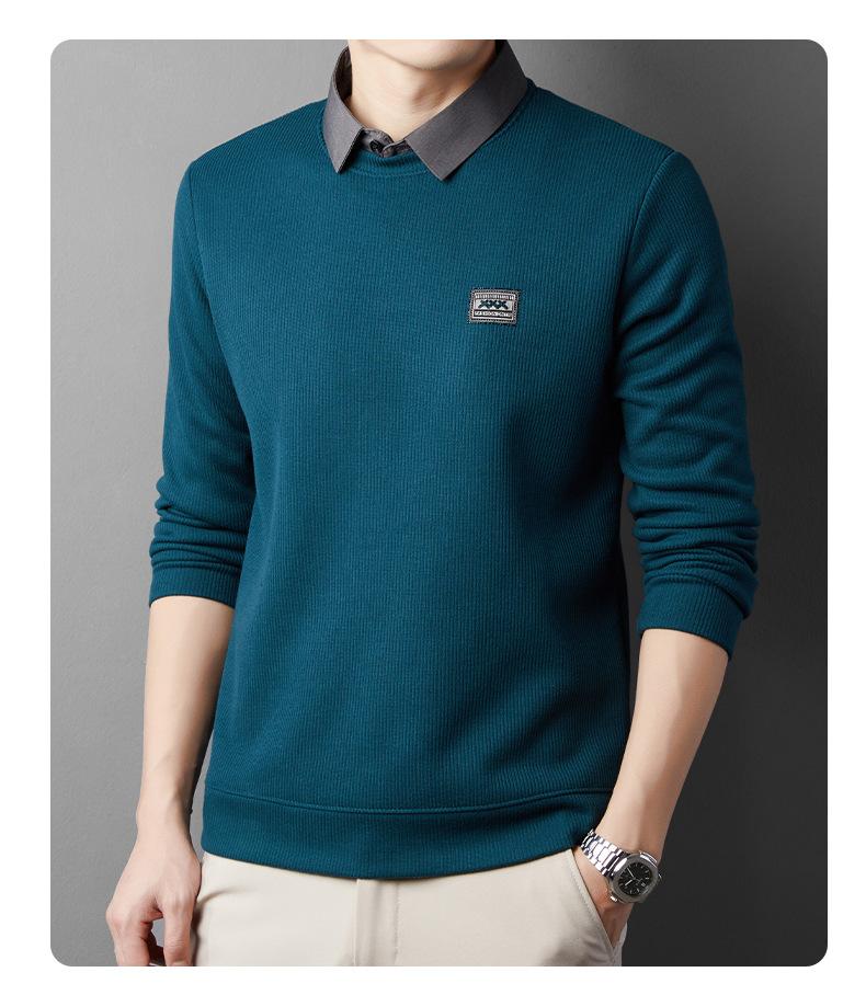 Suéter de invierno nuevo para hombre, de punto, con forro polar, cuello falso, de dos piezas, grueso, con base de gofre.
