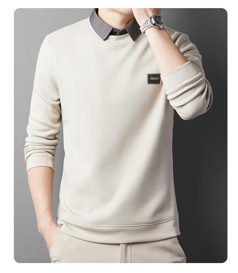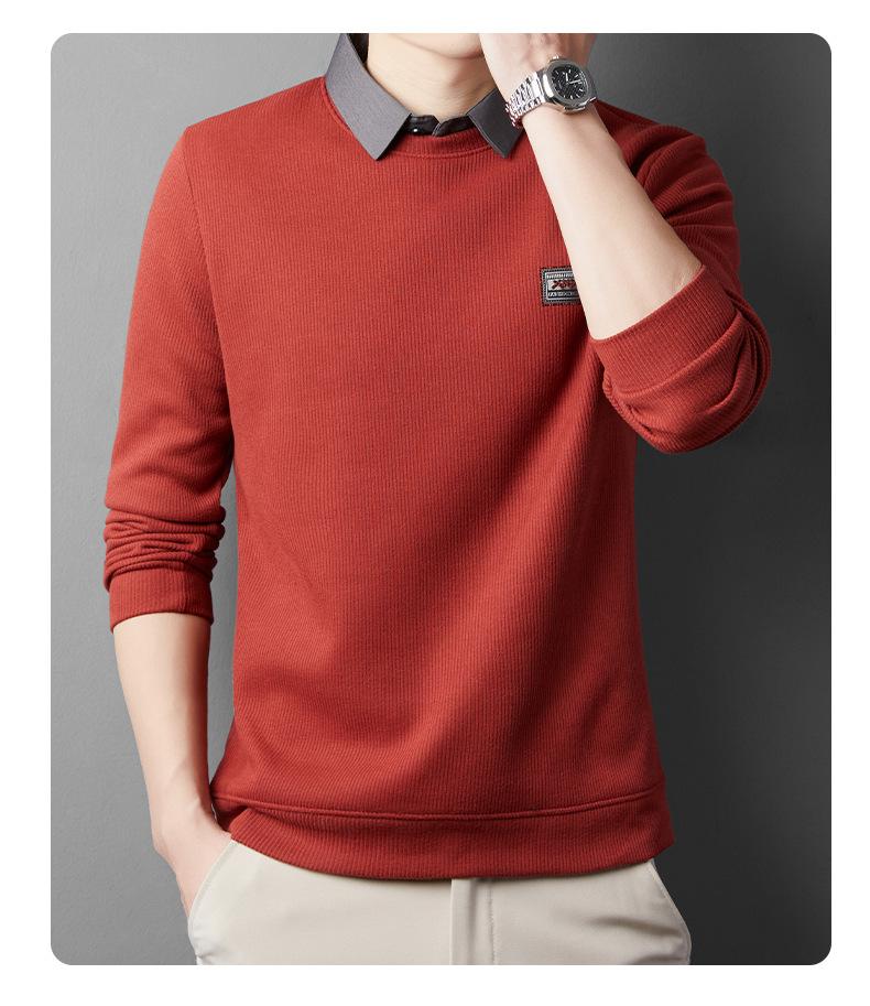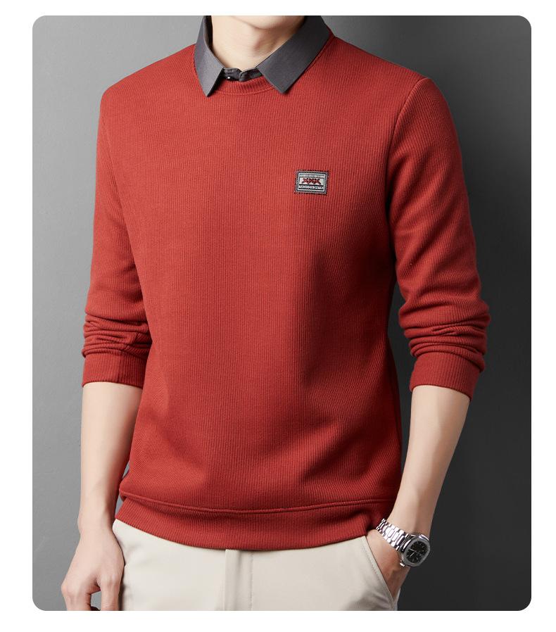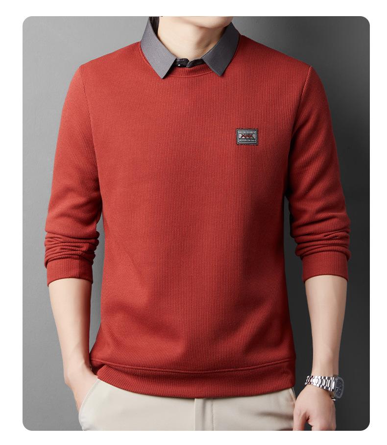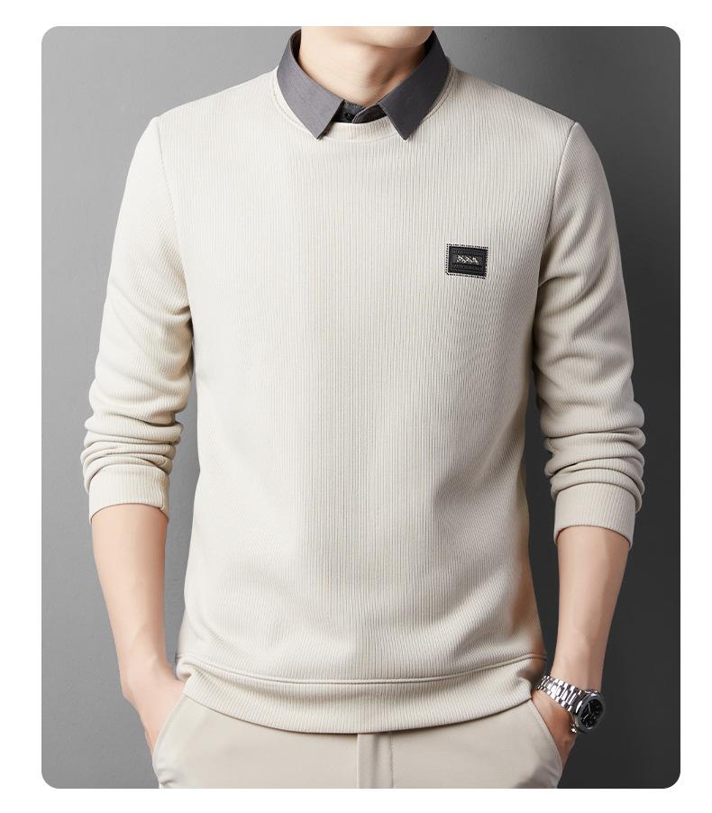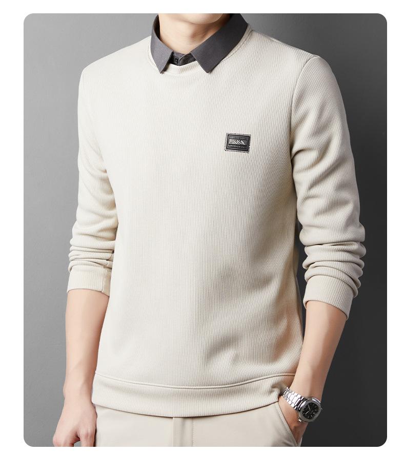 Suéter de invierno nuevo para hombre, de punto, con forro polar, cuello falso, de dos piezas, grueso, con base de gofre.