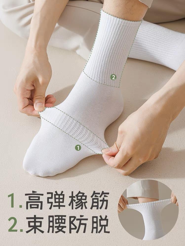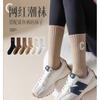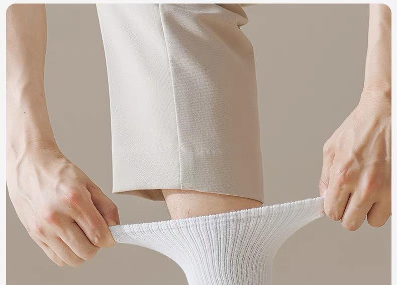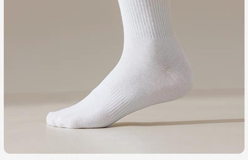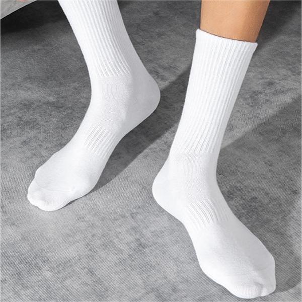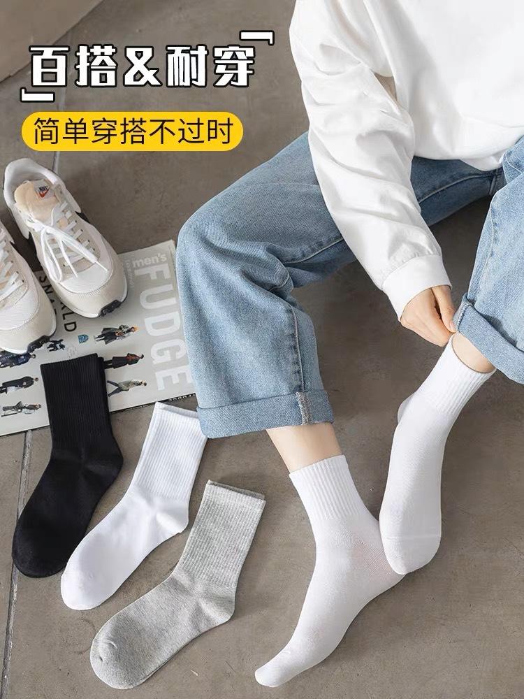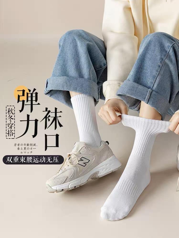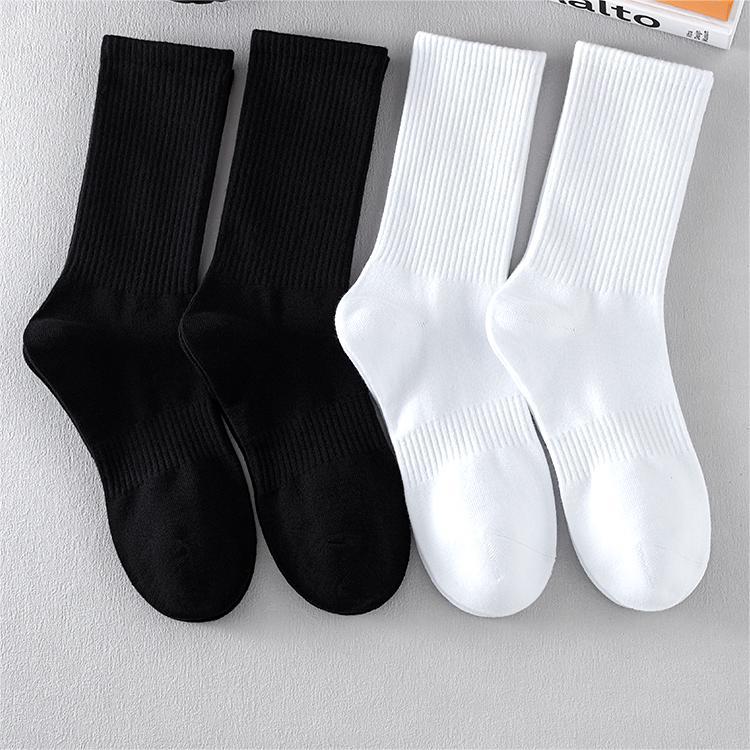 Calcetines gruesos de color sólido blanco y negro de otoño e invierno de algodón peinado hasta media pantorrilla, calcetines largos absorbentes de sudor, leggings de tiburón, versátiles casuales