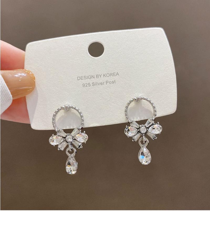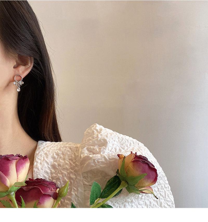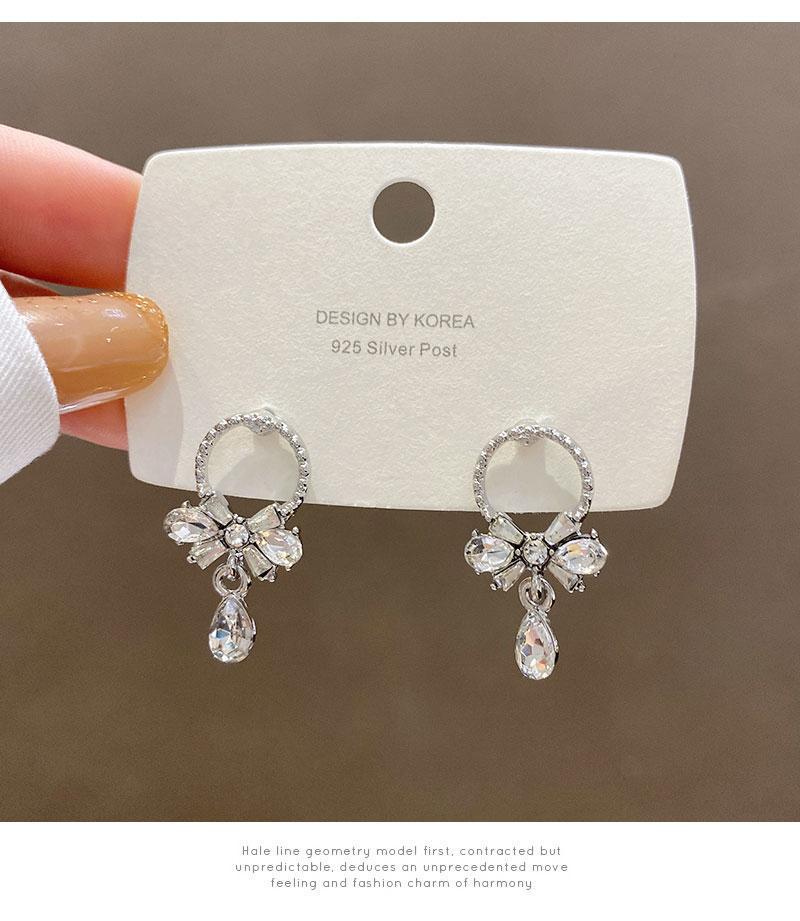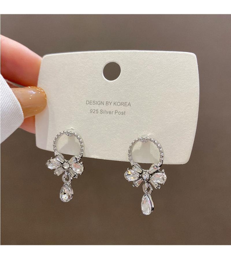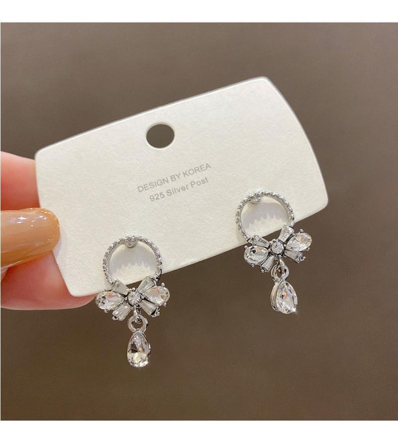 Pendientes de plata S925 con forma de aguja, elegantes, con lazo y diamantes, sencillos, pequeños y combinables, a la moda, para mujer.