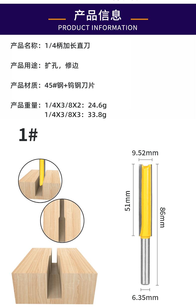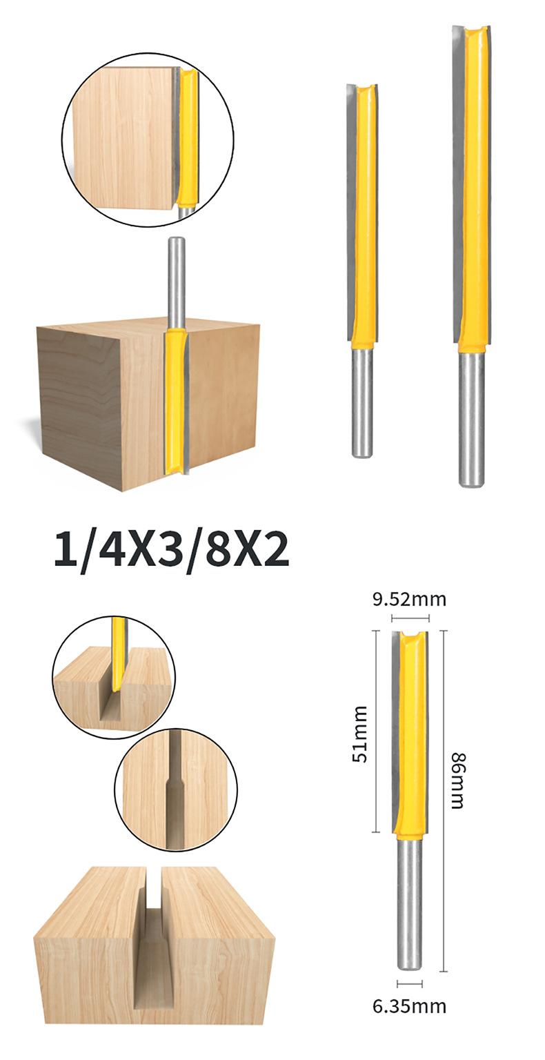 Juego de Cuchillas Rectas de Vástago de 1/4 para Expandir Agujeros y Recortar, Fresa Eléctrica de Doble Filo para Recortar Extendida, Fresa para Madera para Fresado