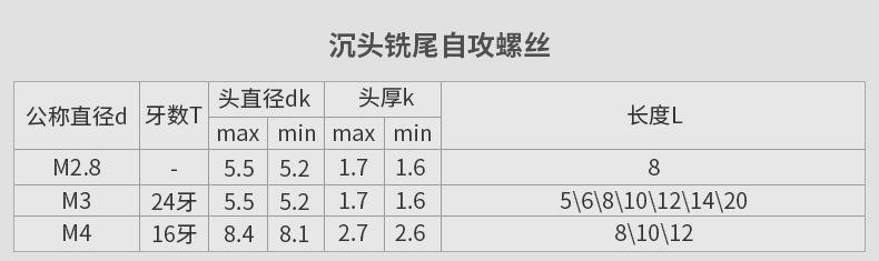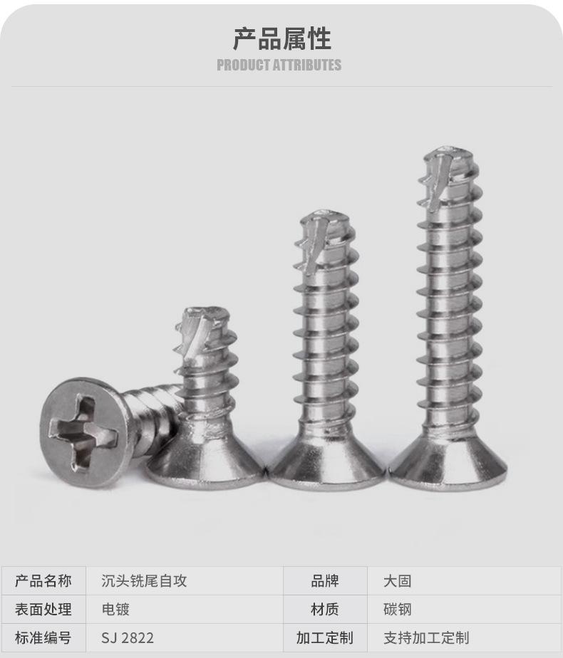 Countersunk head milling tail self-tapping M2.8 * 8 nickel plating, Countersunk head milling tail self-tapping...