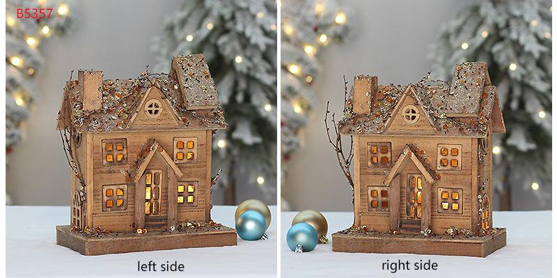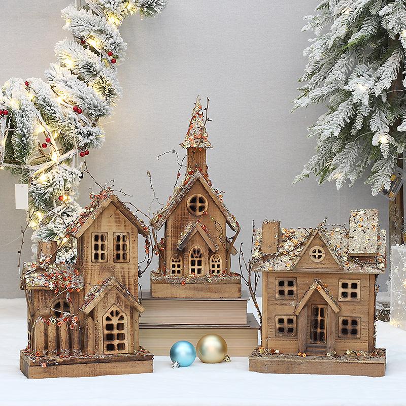 Cabaña luminosa de madera transfronteriza para Navidad, casa pequeña, casa de nieve, adornos navideños, accesorios