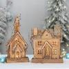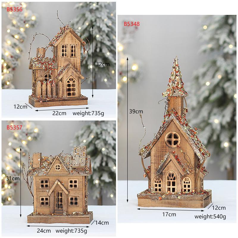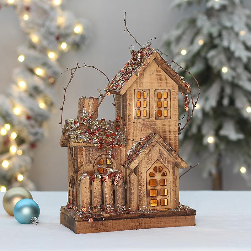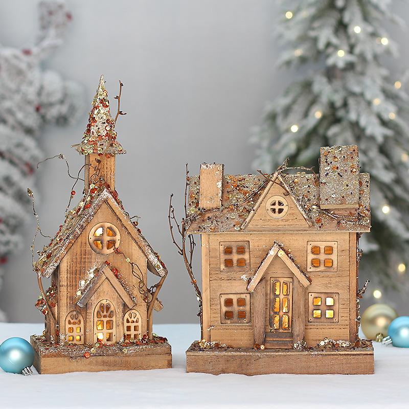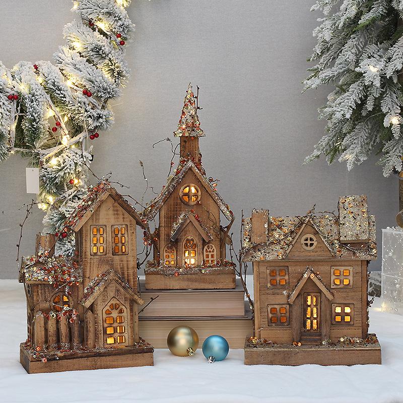 Christmas wooden house glowing christmas small house cross-border christmas new wooden luminous small wooden h...