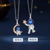 Collar de pareja de astronautas, moderno collar de plata de ley para una pareja, cadena de clavícula, regalo de San Valentín para un novio.