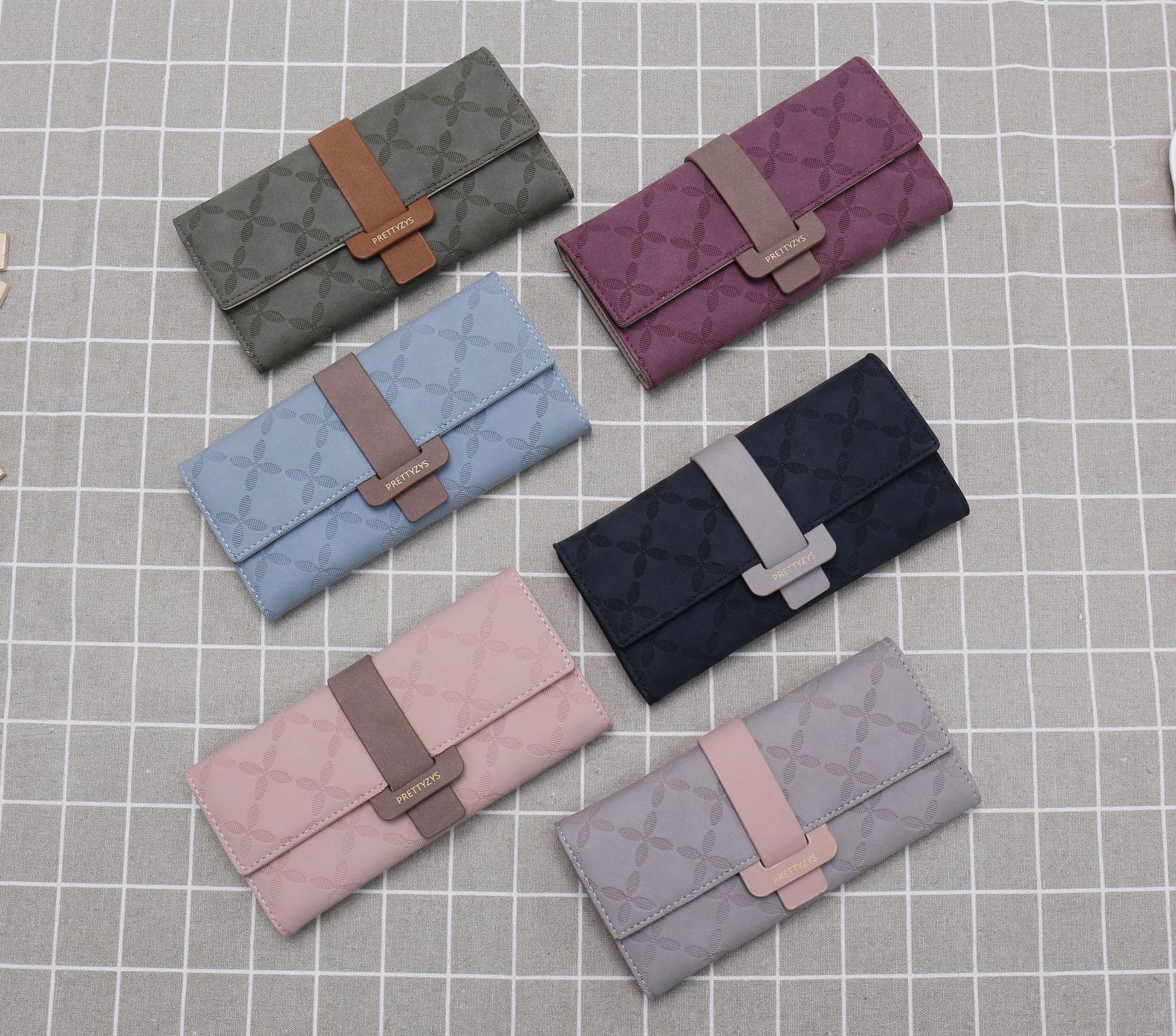 | Cartera de comercio exterior transfronterizo para mujer, larga, de cuero PU japonés y coreano, con hebilla de hoja fresca pequeña, simple y versátil, para mujer, tarjetero |