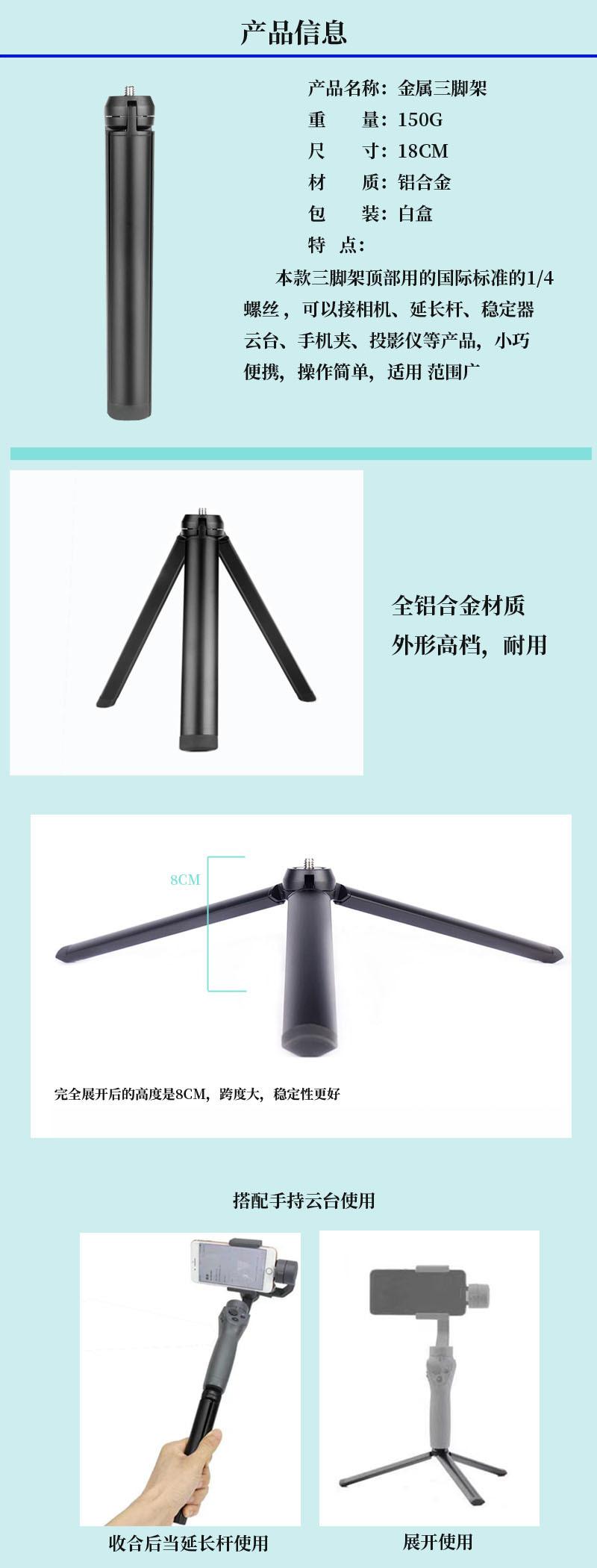fábricaSoporte para proyector de fuente local, trípode de aleación de aluminio para escritorio de teléfono móvil, trípode de metal para cámara de escritorio