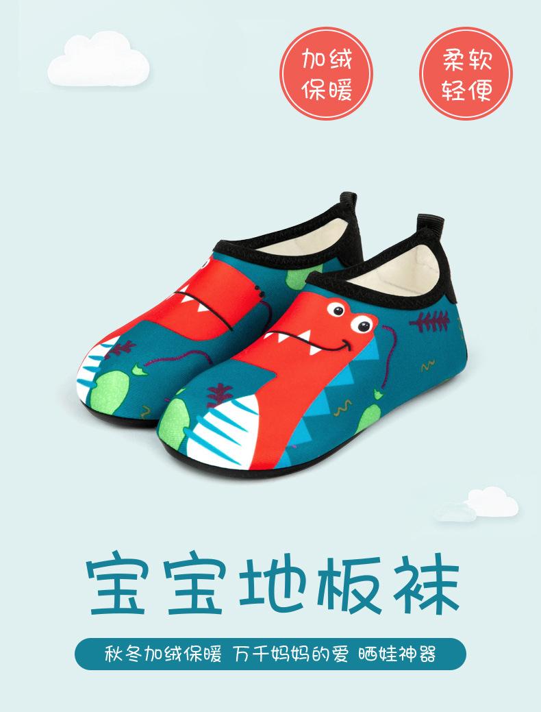 Venta al por mayor de fábrica zapatos de playa de dibujos animados para niños primavera y otoño calcetines gruesos con forro polar cálido zapatos blandos para bebés