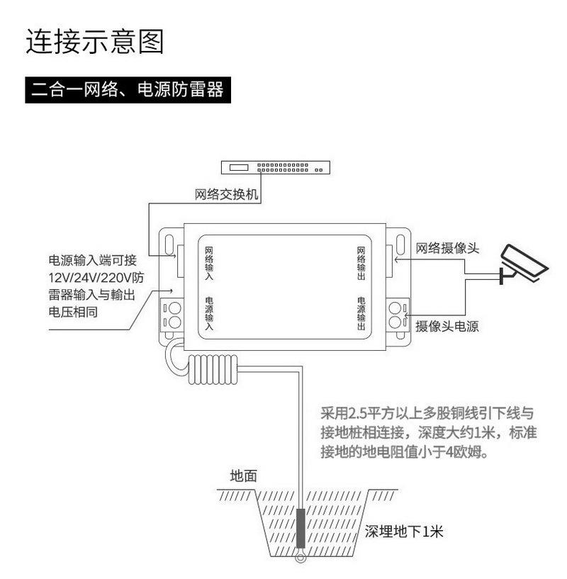 Es adecuado para la protección inductiva contra rayos de señales y fuentes de alimentación de cámaras de vigilancia en red, interfaces RJ45 de equipos de red y otros tipos de Ethernet, así como para la protección inductiva contra rayos de baja corriente tipo señal. Se utilizan componentes de protección contra sobretensiones de alta energía para proteger el equipo final contra daños por rayos inducidos.