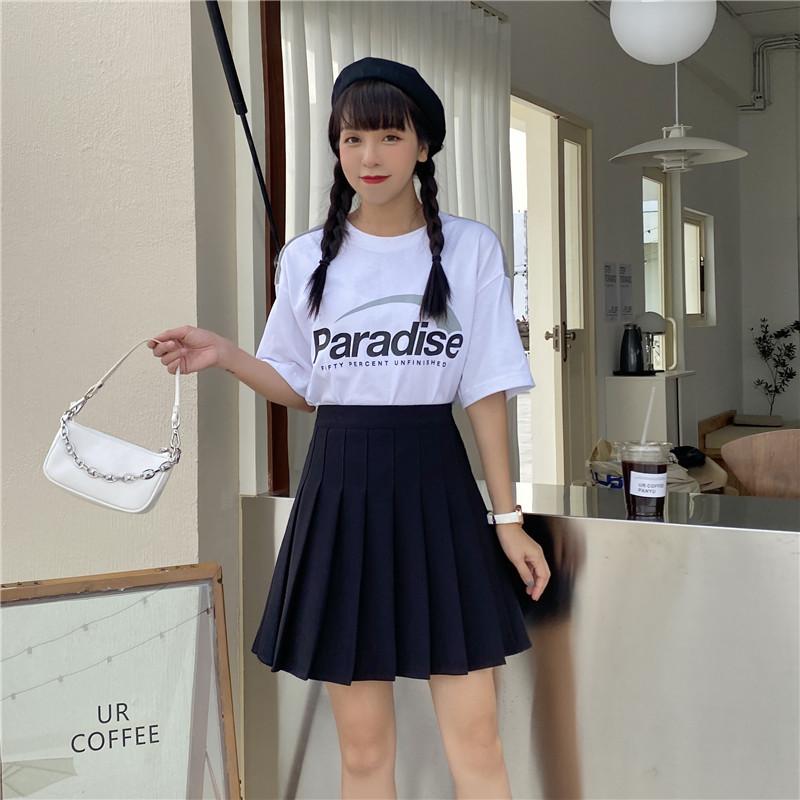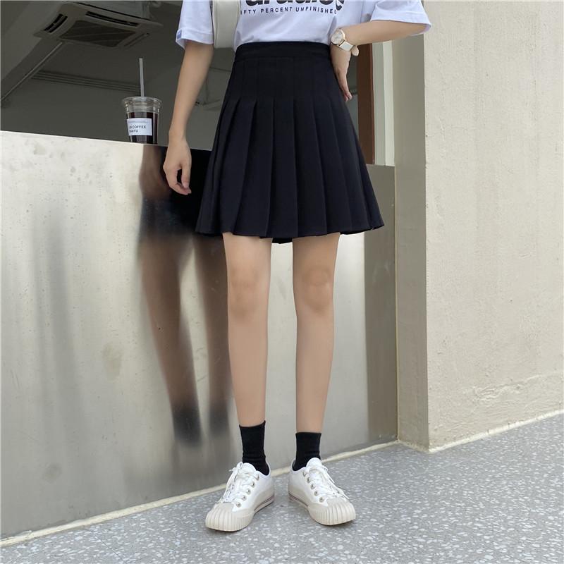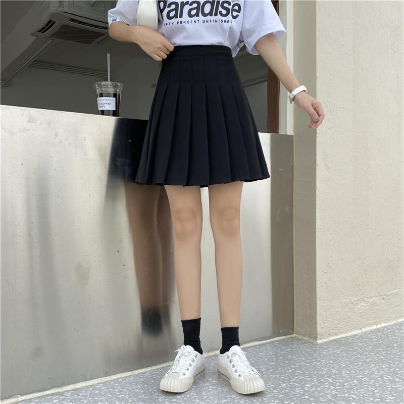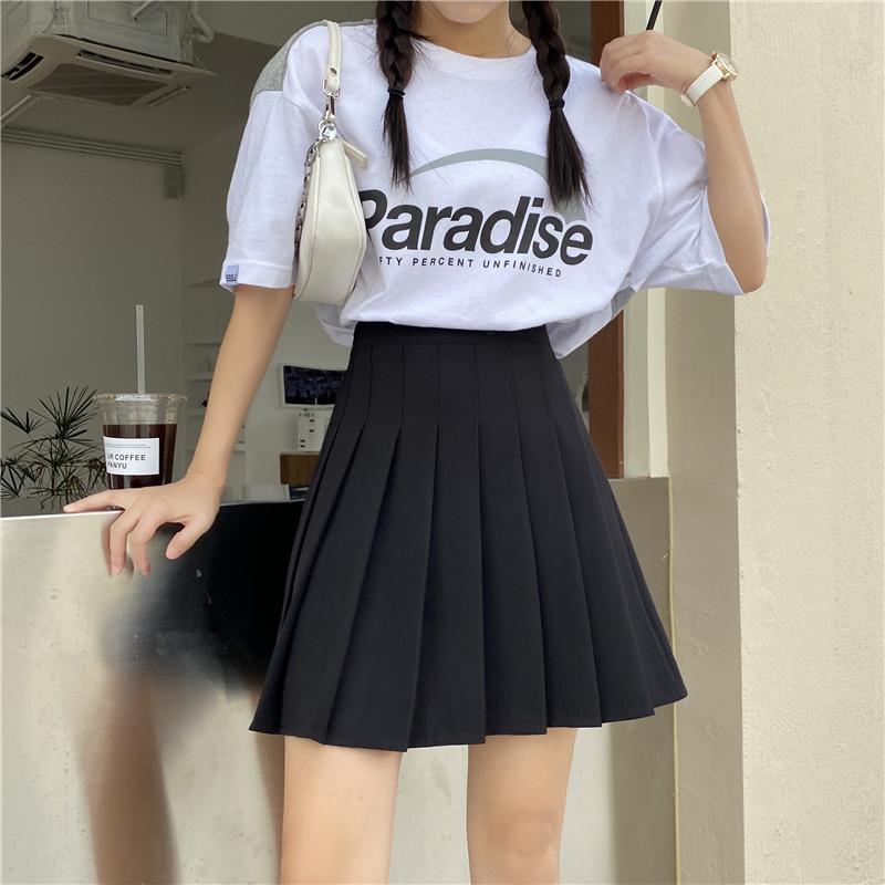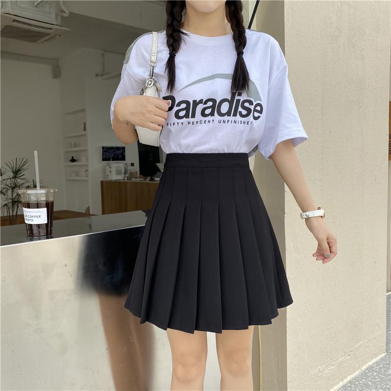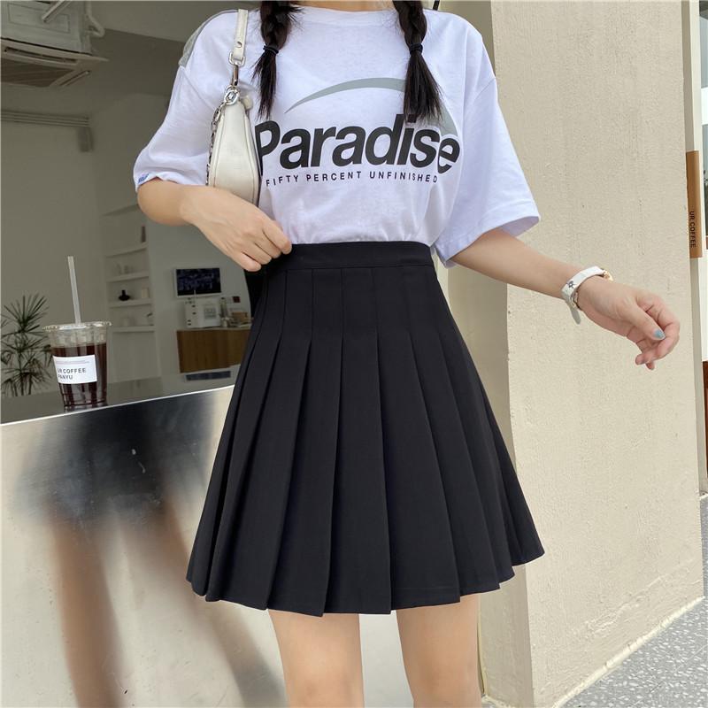Compra Falda plisada negra para mujer, falda de cintura alta para primavera y verano, falda dulce y fresca de corte A, falda blanca pequeña antiexposición de talla grande al por mayor en Joom.pro