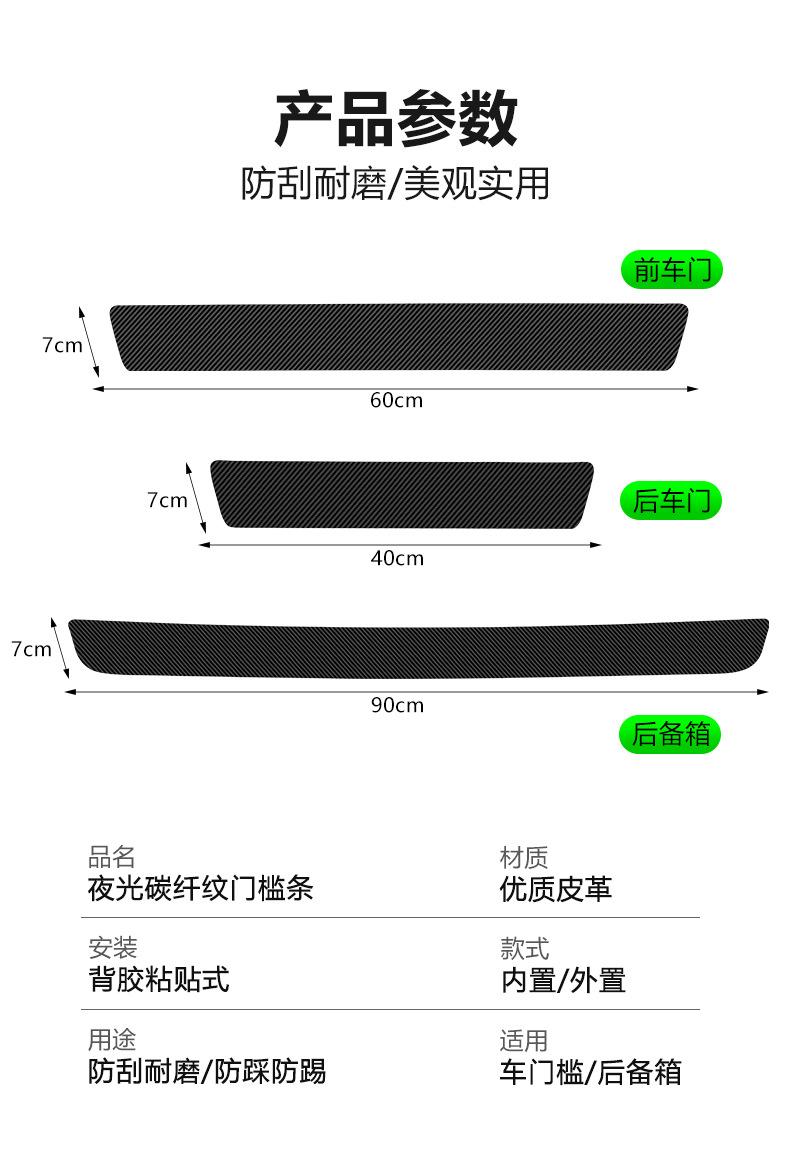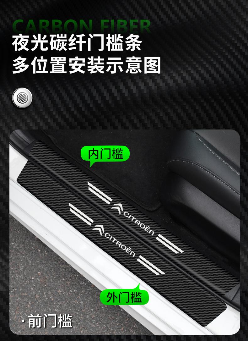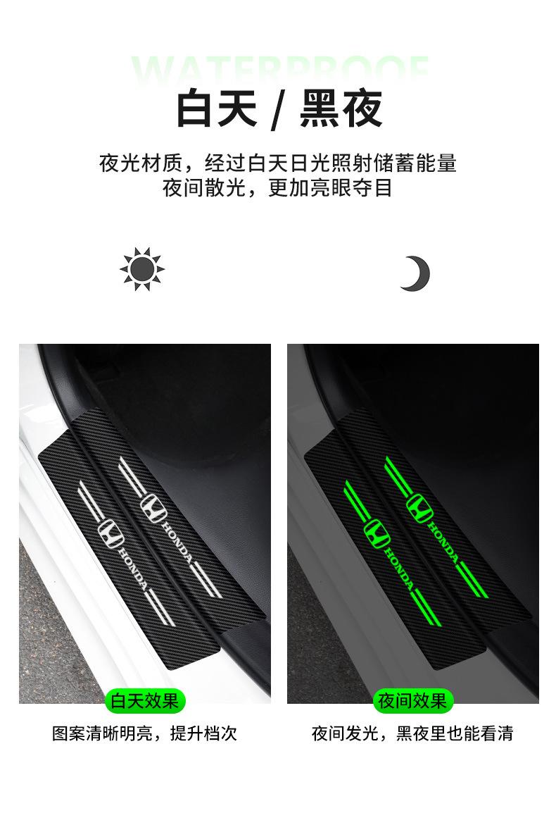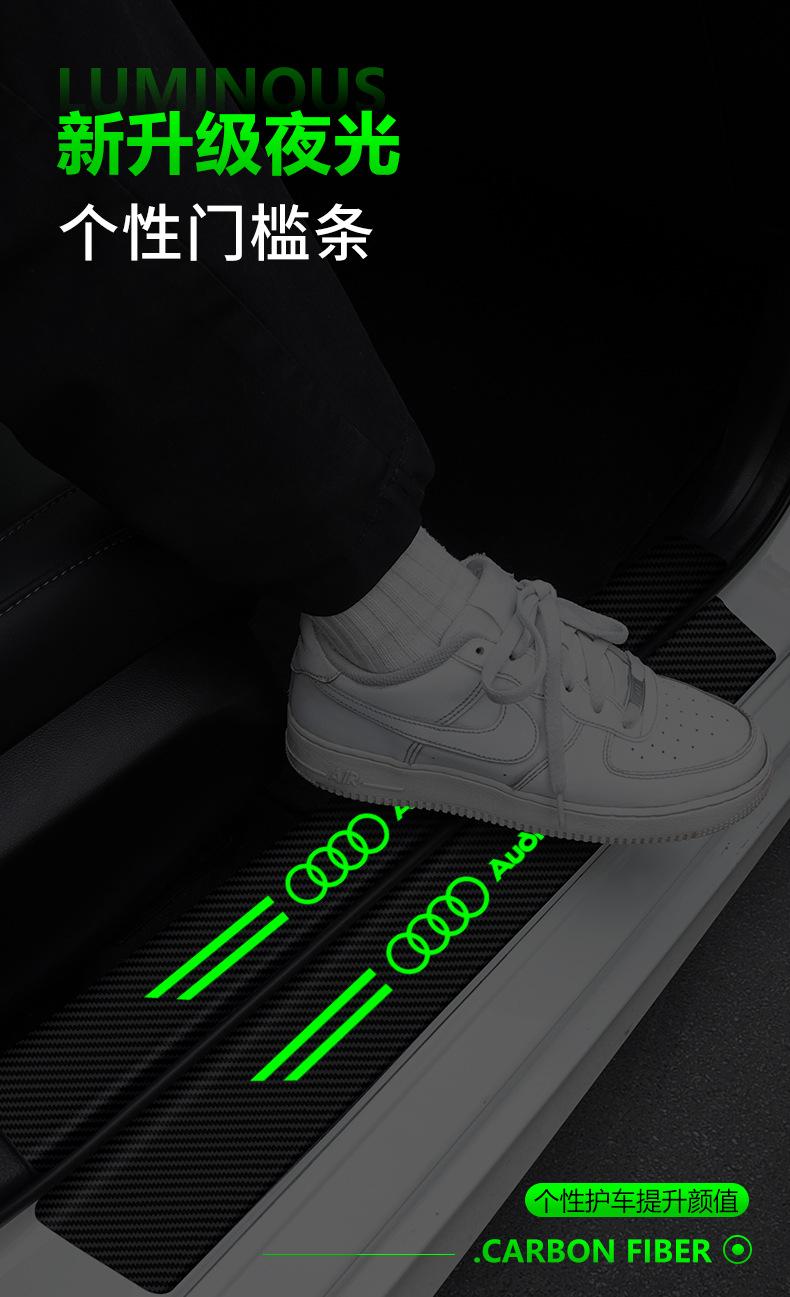 Pegatinas luminosas de fibra de carbono para umbral de puerta de coche, pegatinas protectoras para puerta, pegatinas antihuellas, decoración de pedales de bienvenida.