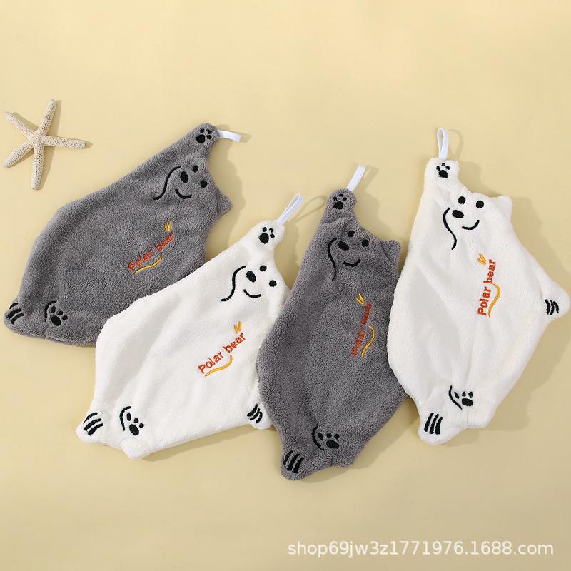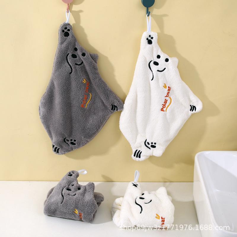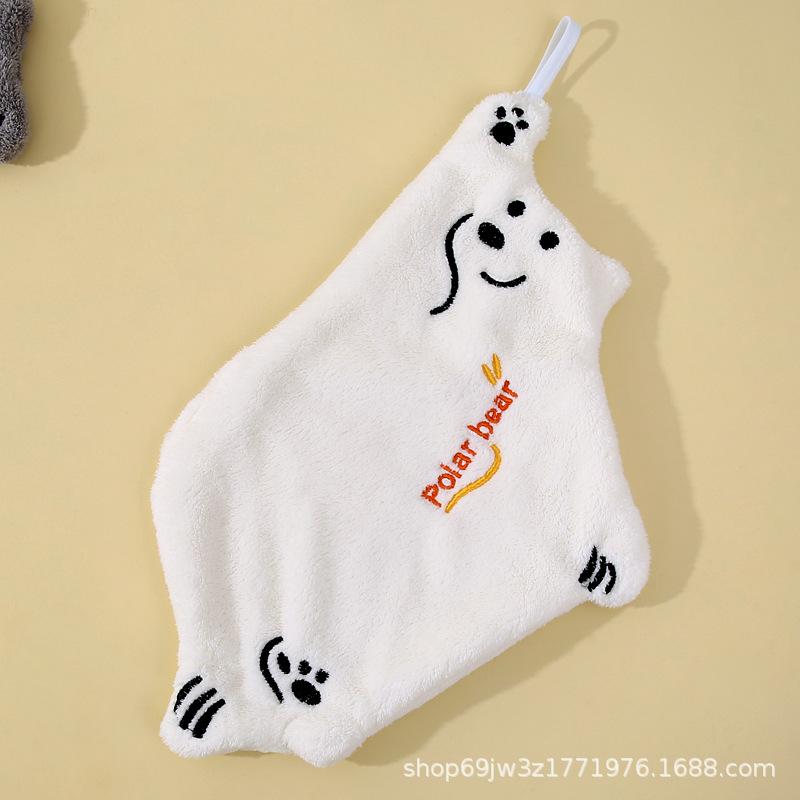 Toalla de mano de dibujos animados de vellón coral para colgar, linda toalla de mano de cocina, absorbente, sin pelusa, para baño infantil.