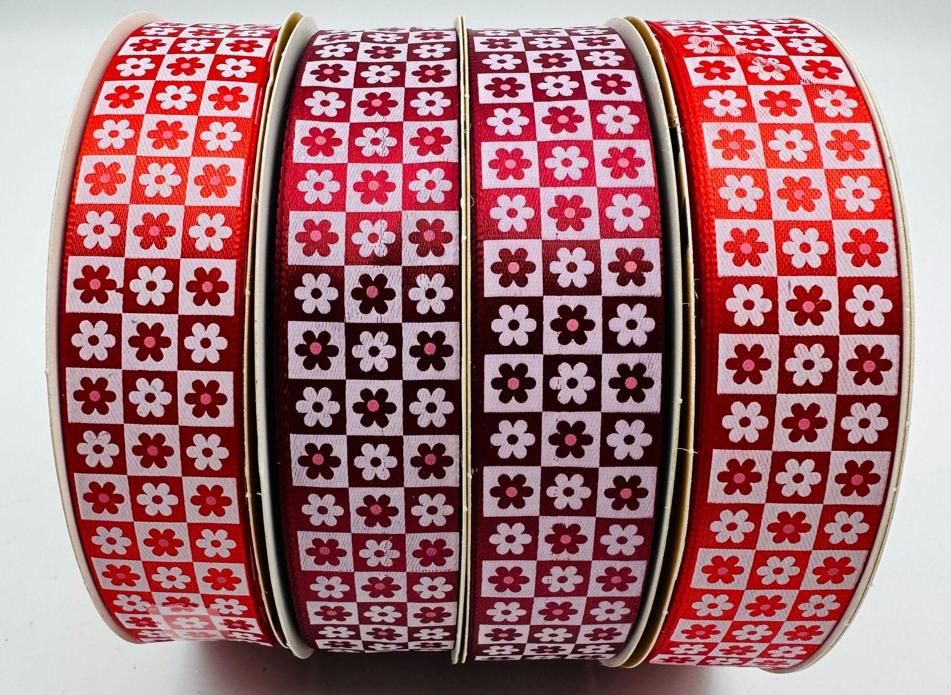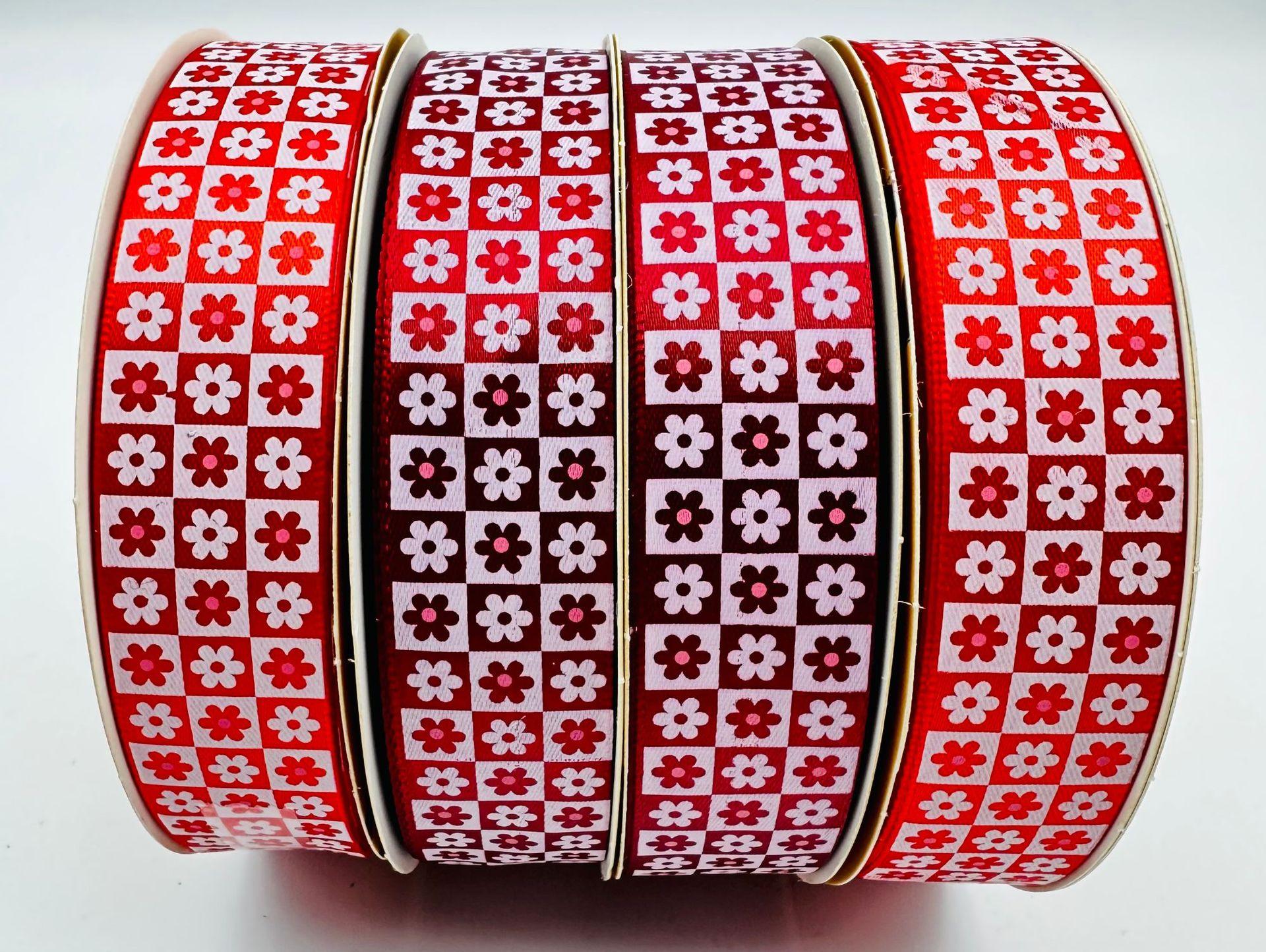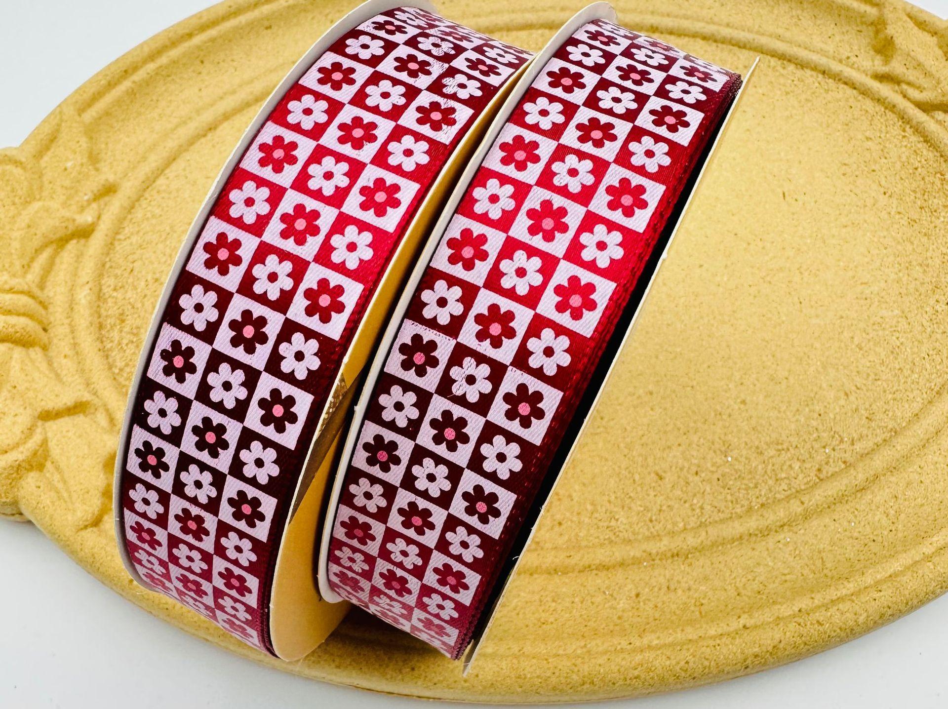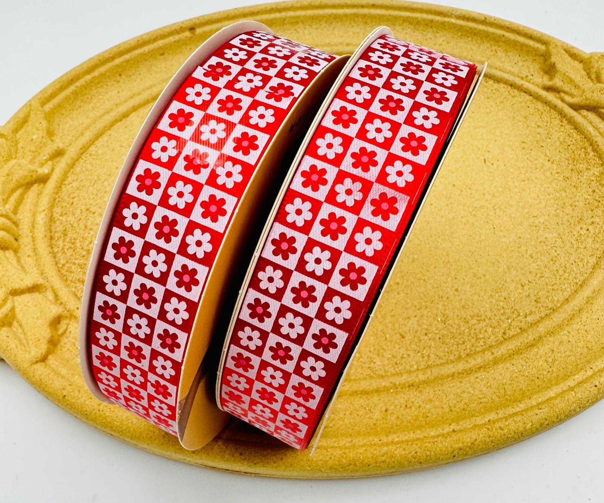Cinta de lazo con flor pequeña con impresión en dos colores de 25 mm, hecha a mano, para caja de regalo, embalaje, cinturón y barra.