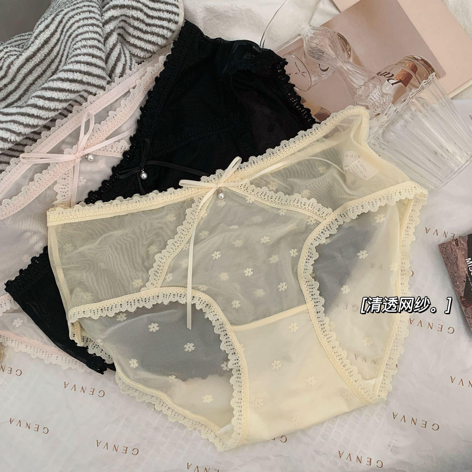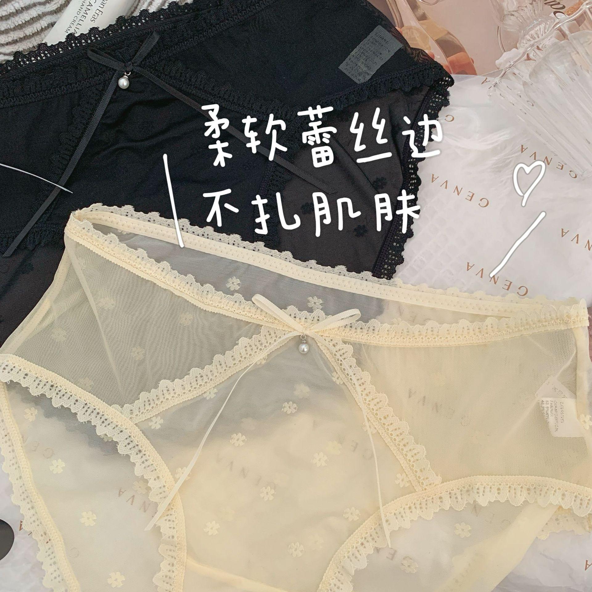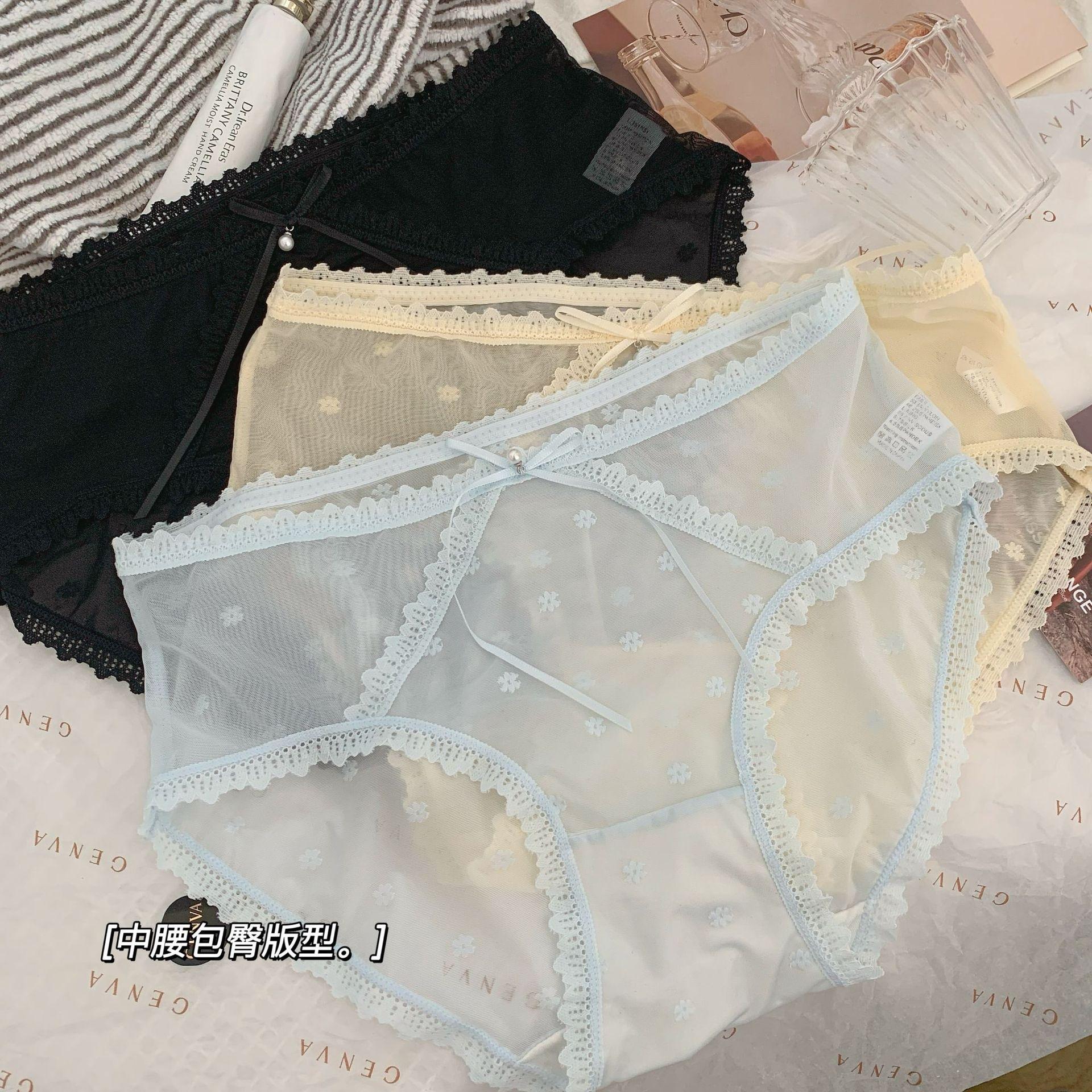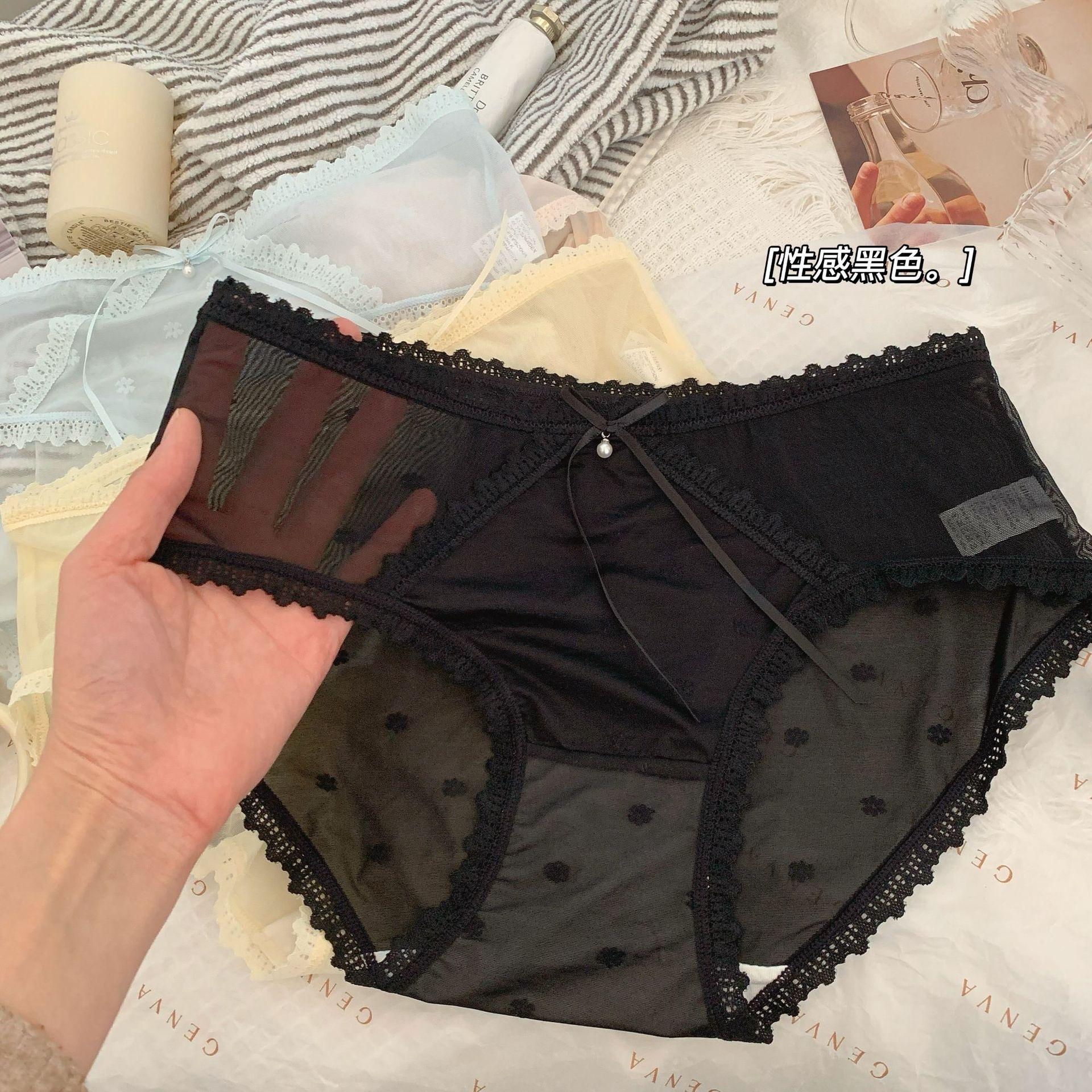 Nueva ropa interior sexy de encaje de malla negra Pure Desire para niña, bragas de cintura media y entrepierna de seda morera para mujer