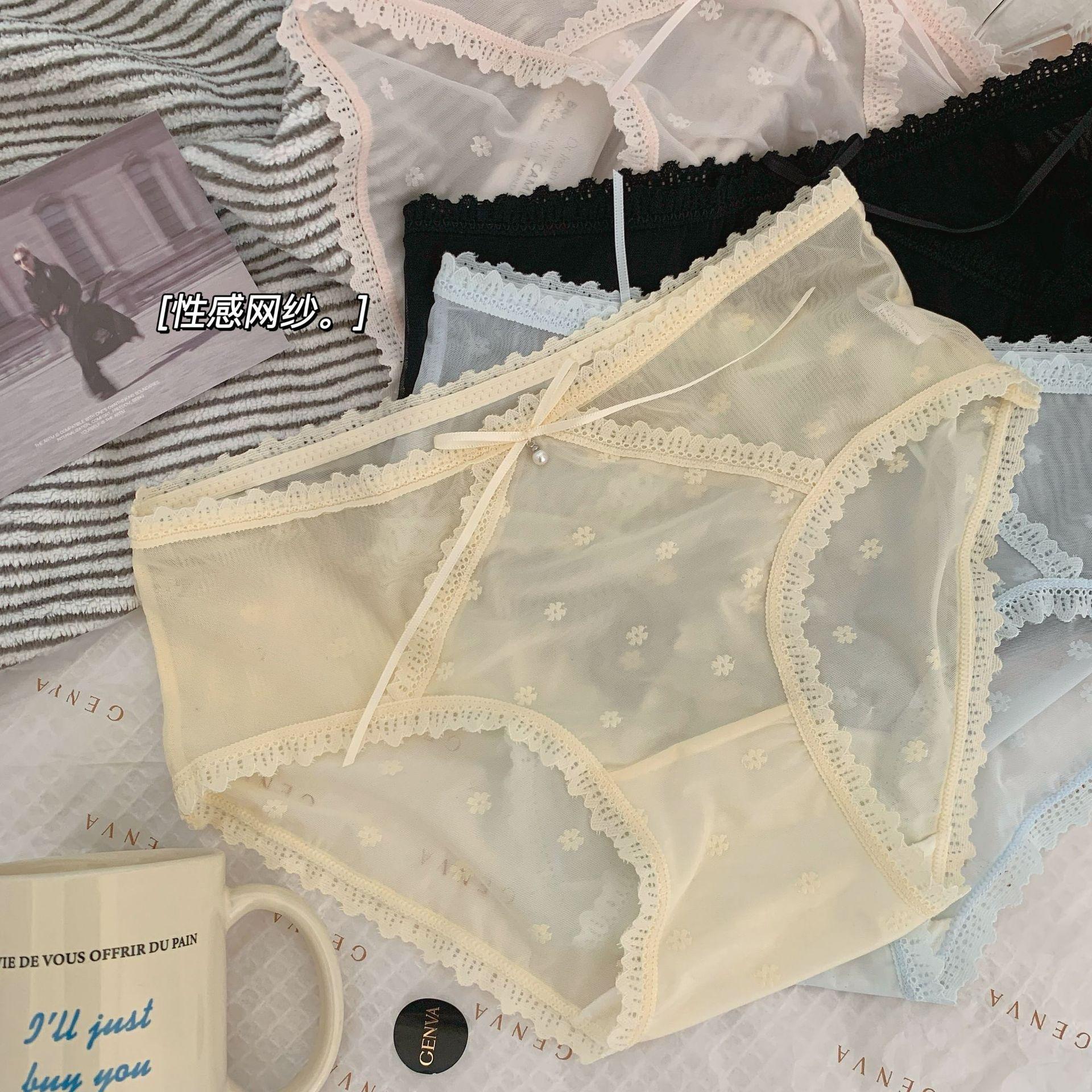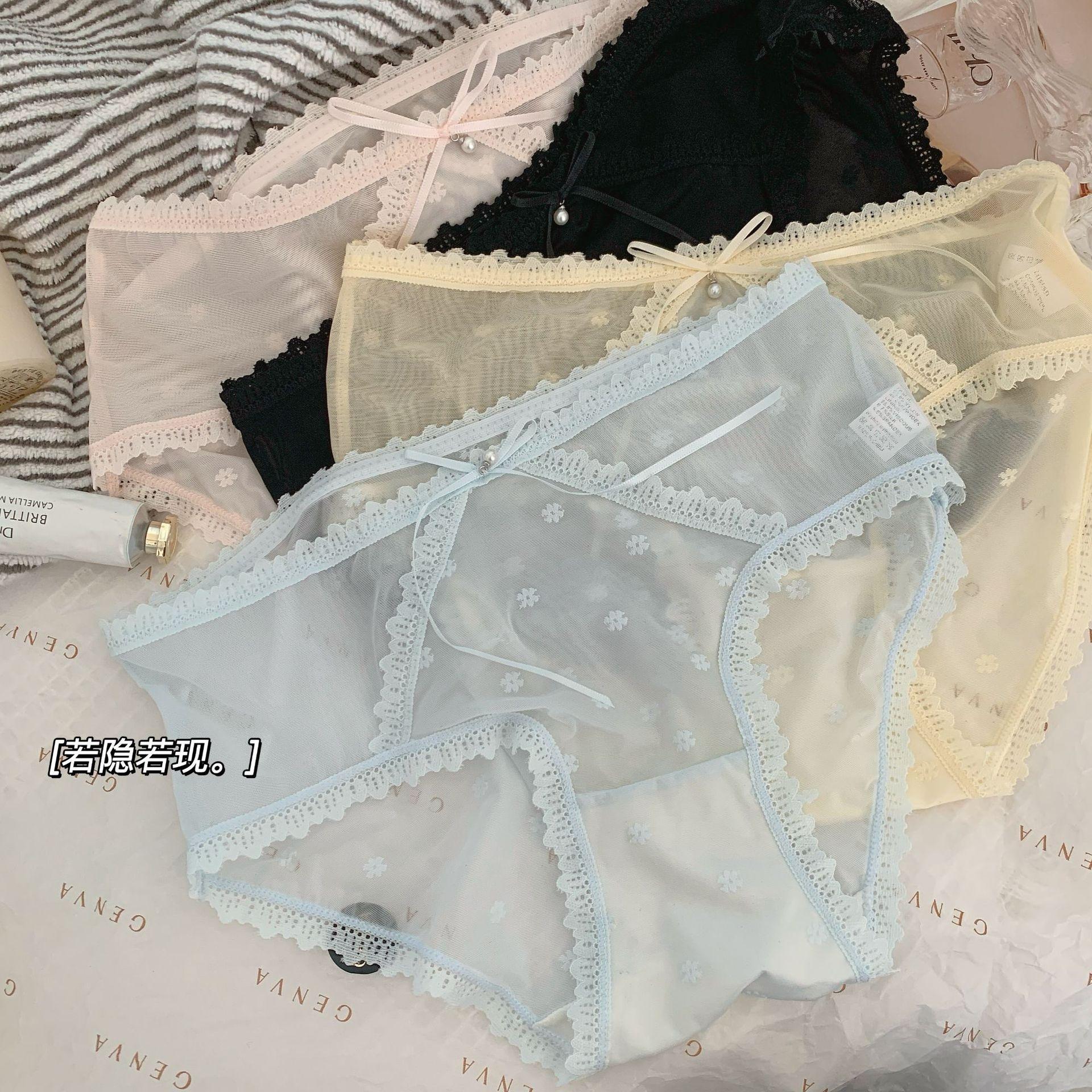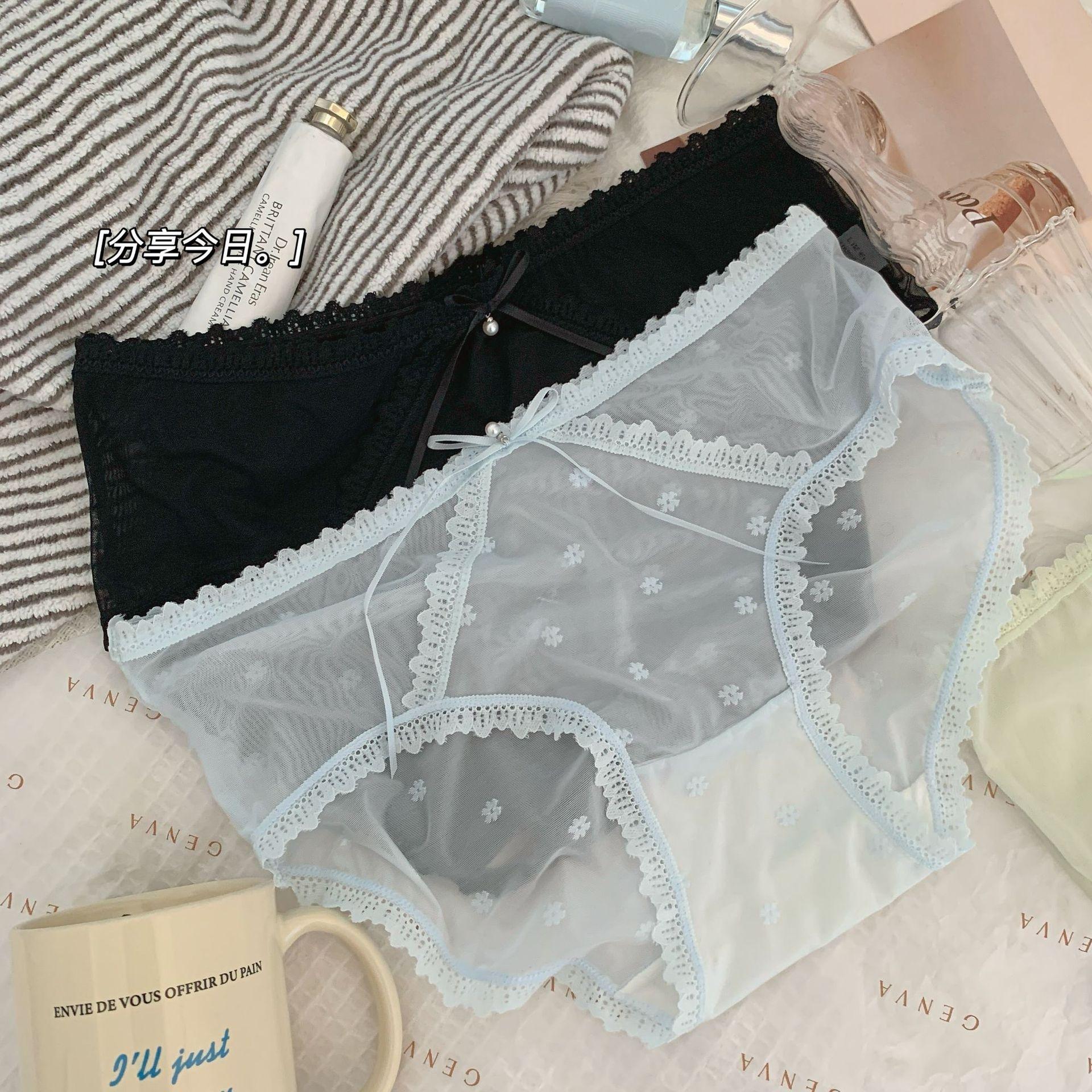 Nueva ropa interior sexy de encaje de malla negra Pure Desire para niña, bragas de cintura media y entrepierna de seda morera para mujer
