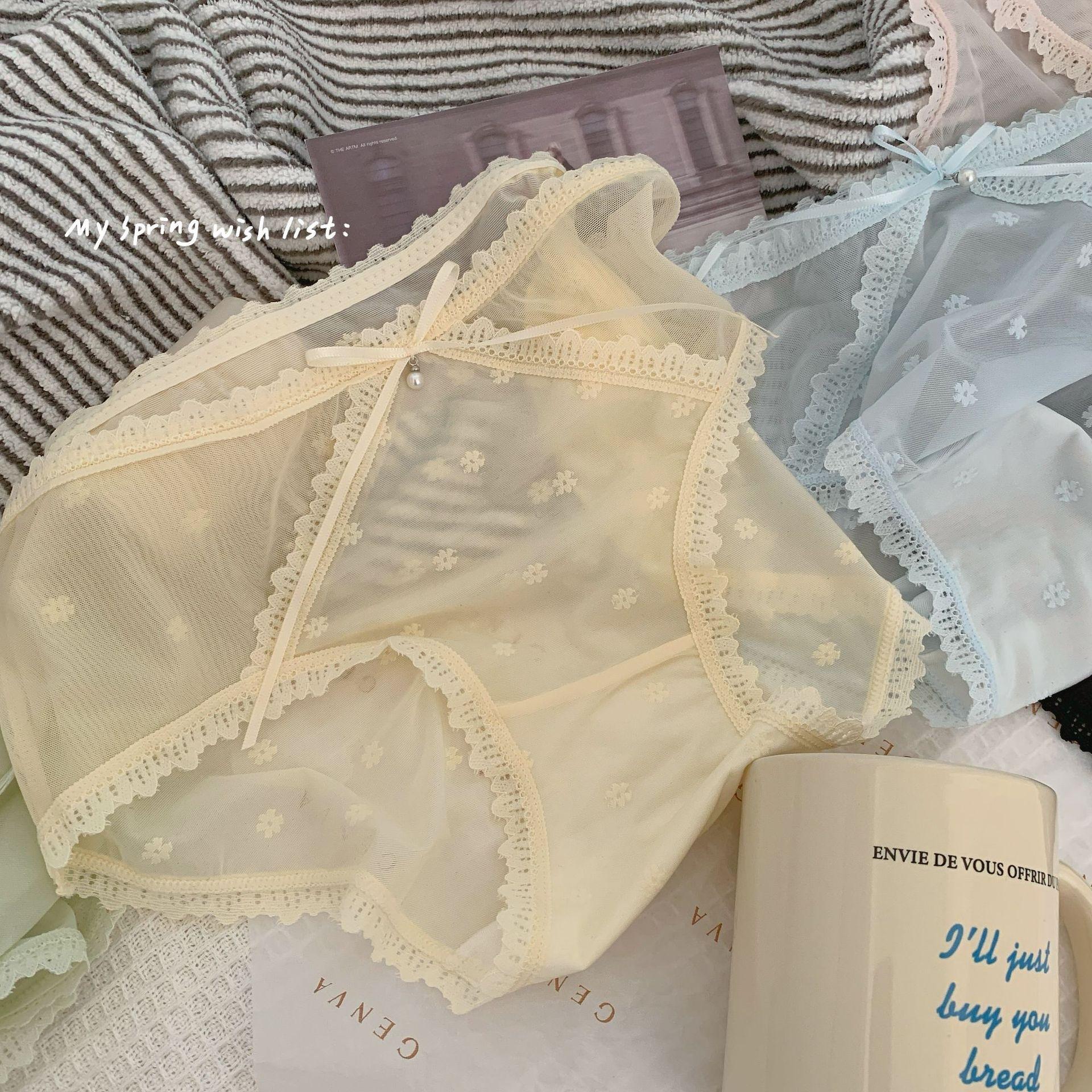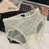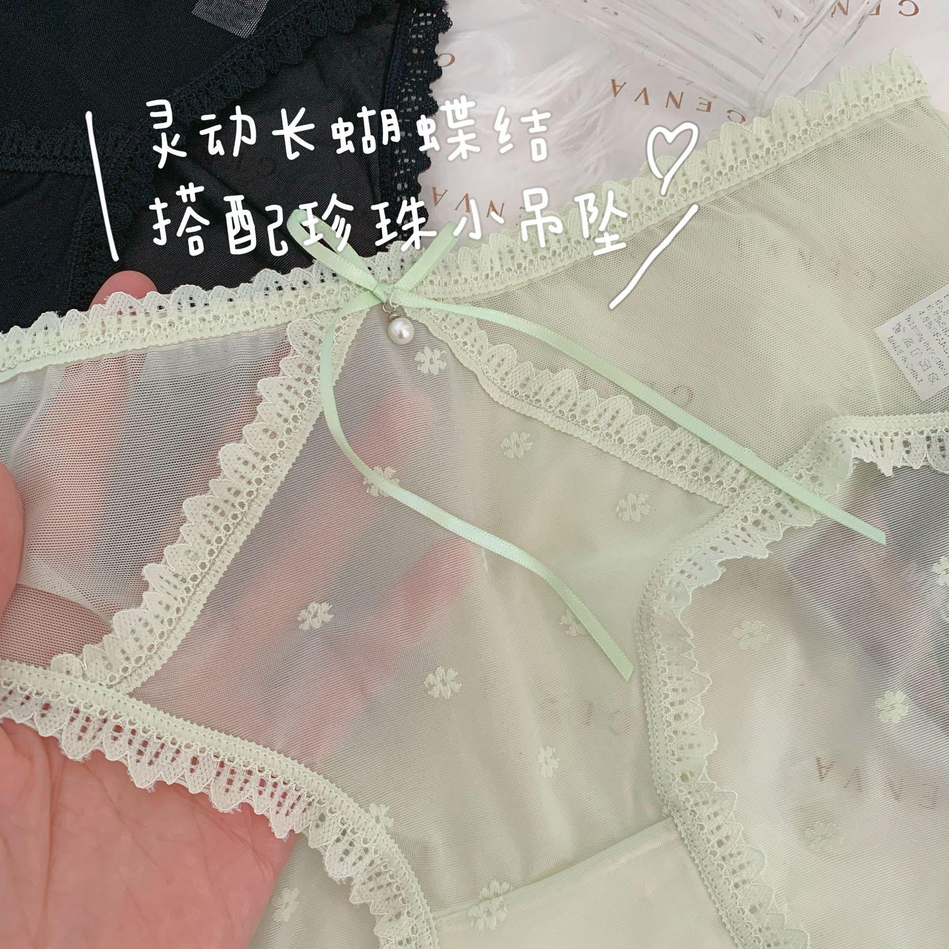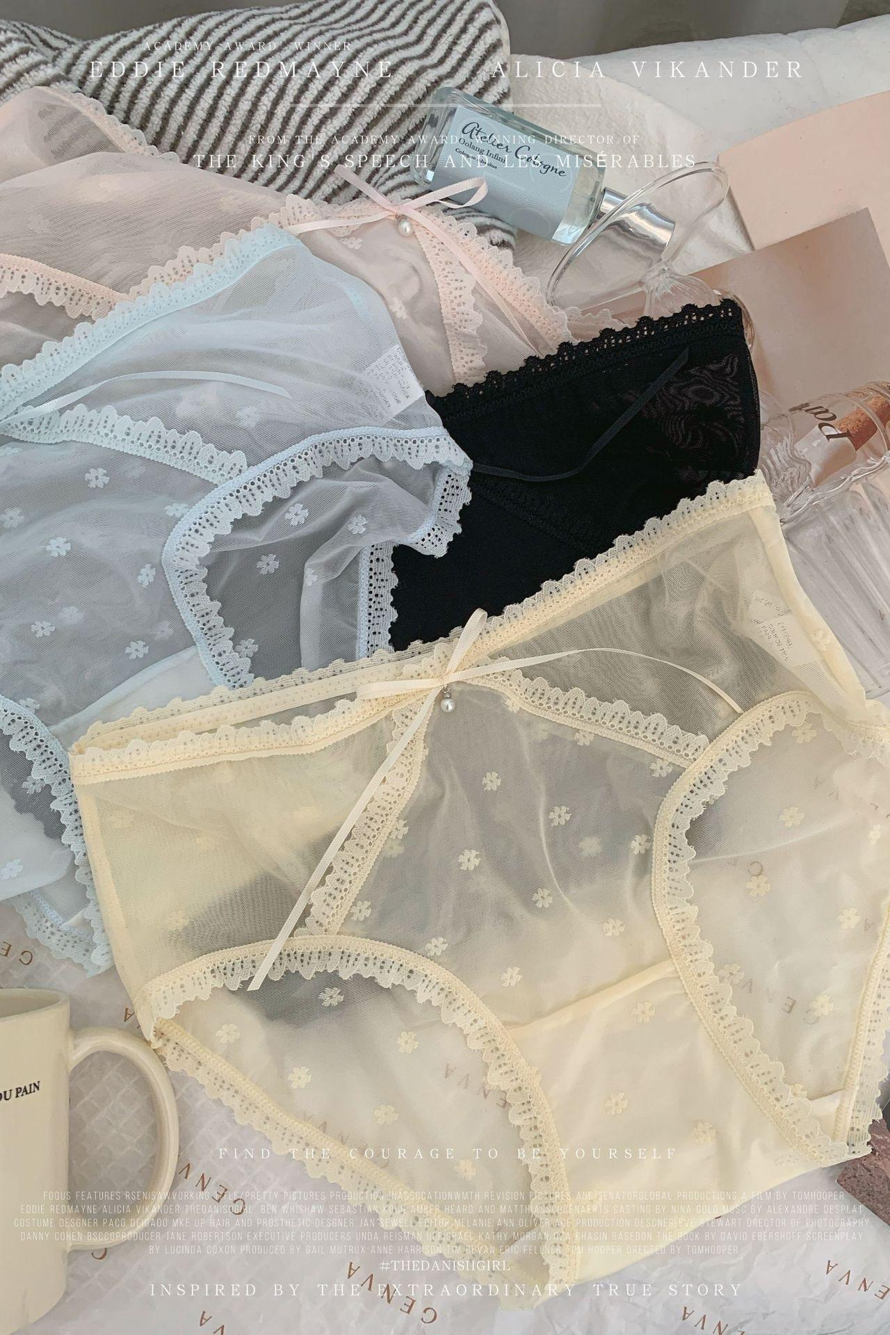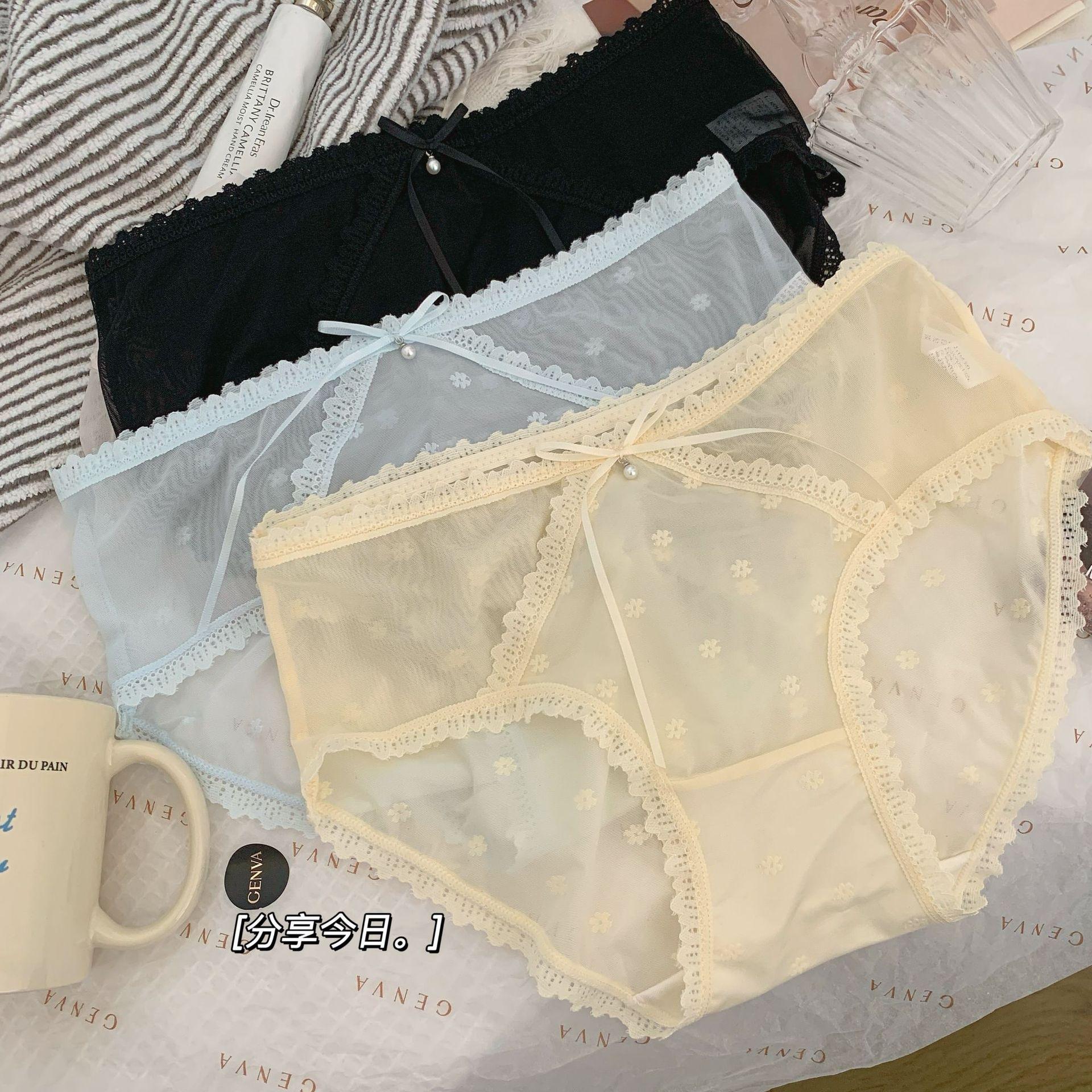 Nueva ropa interior sexy de encaje de malla negra Pure Desire para niña, bragas de cintura media y entrepierna de seda morera para mujer