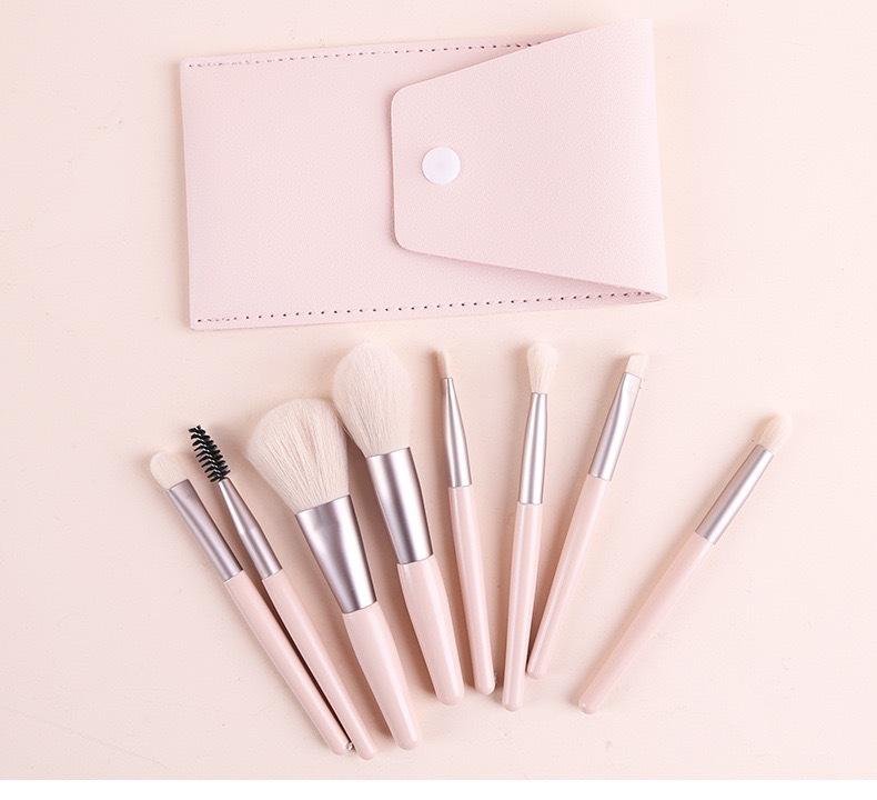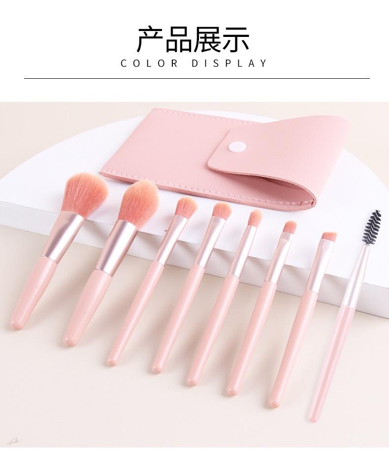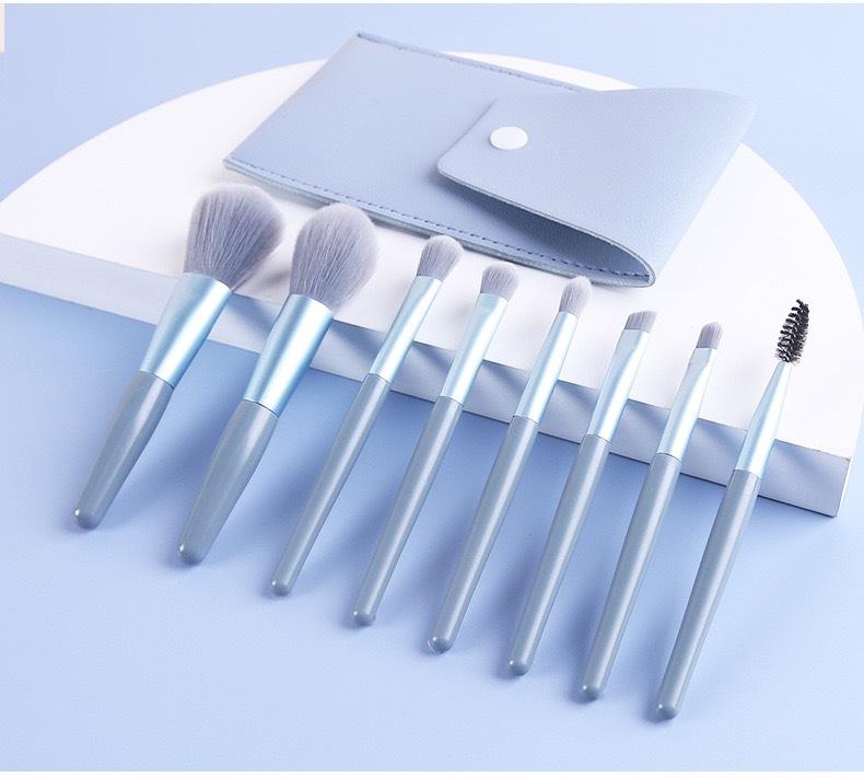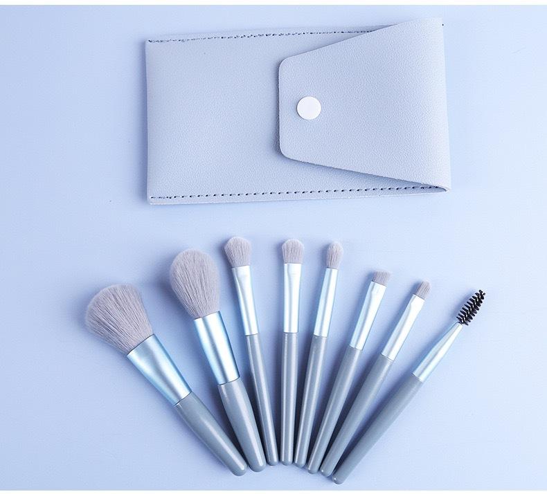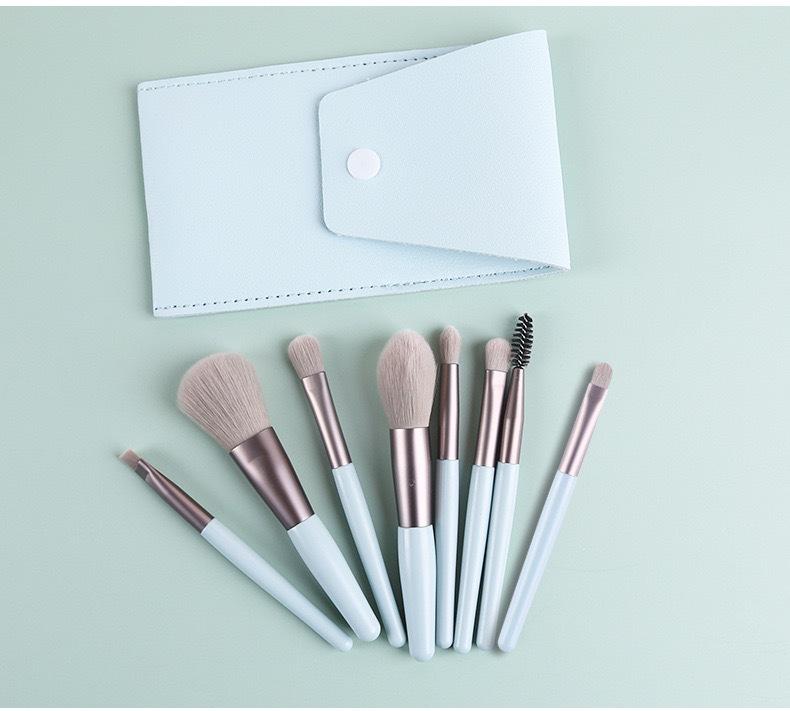 Set de 8 Mini Brochas de Maquillaje Color Macaron con Bolsa para Brochas Portátil Belleza Brocha para Polvo Brocha para Rubor Peine para Pestañas