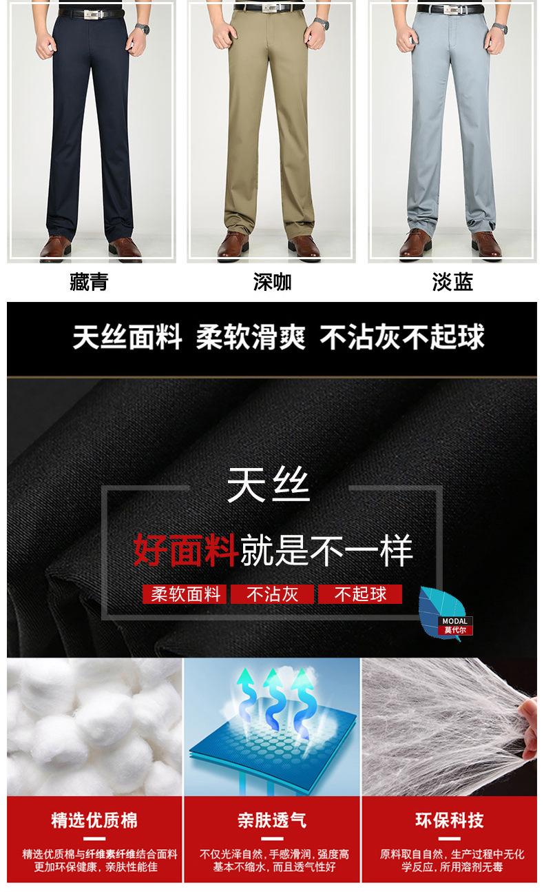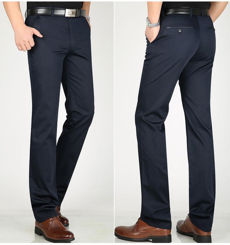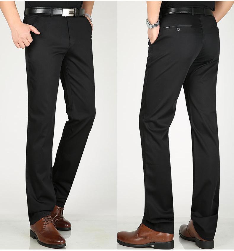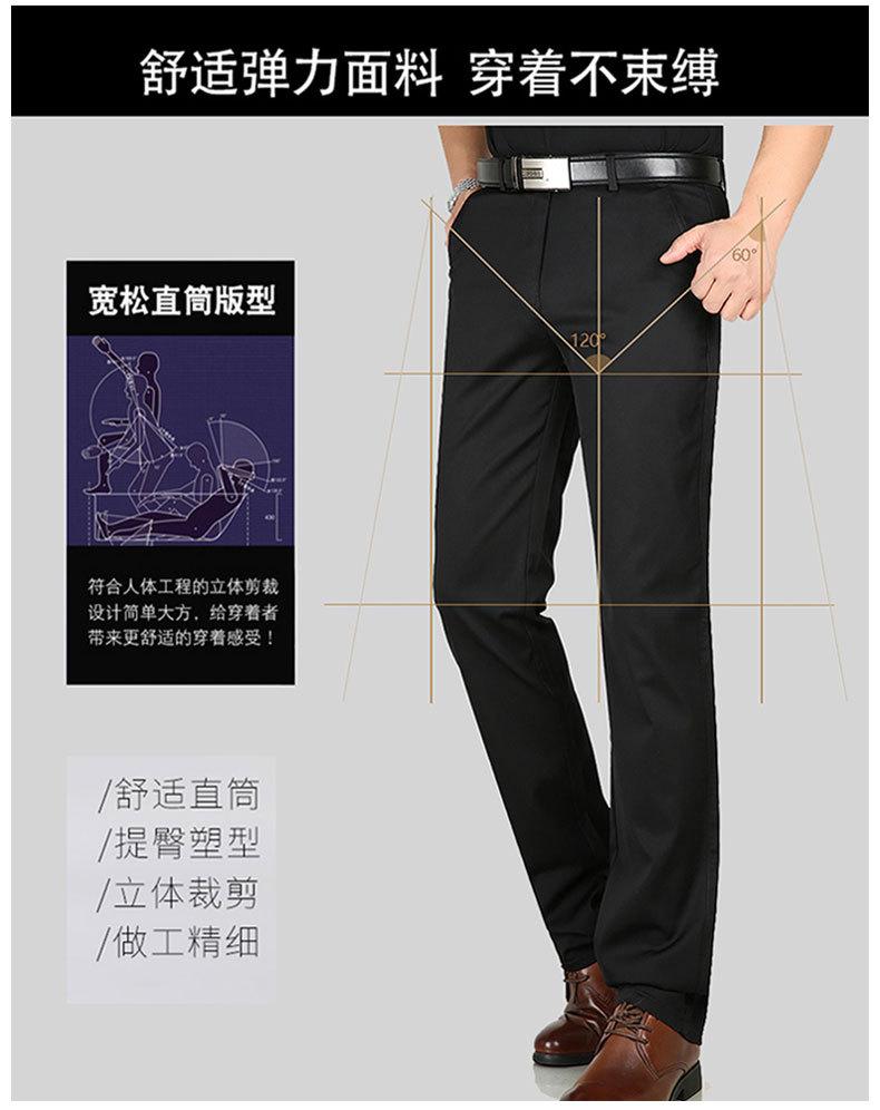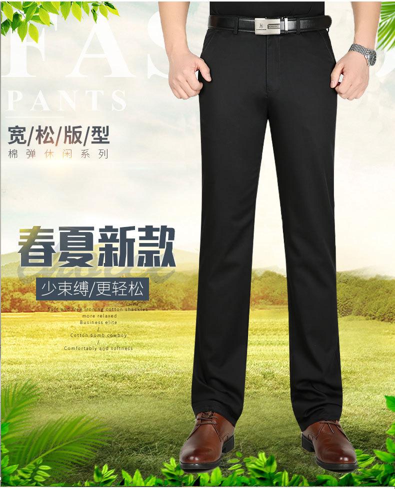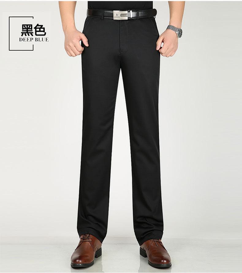 Pantalones casuales de verano para hombre, holgados y rectos, nuevos, de mediana edad, de negocios, negros, largos y elásticos.