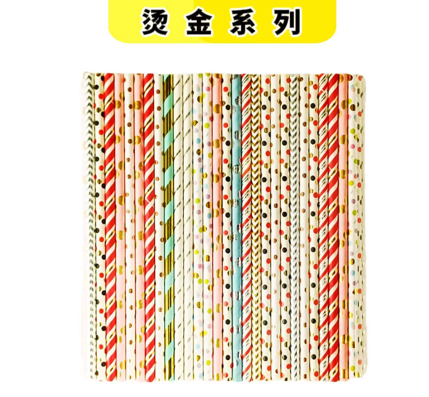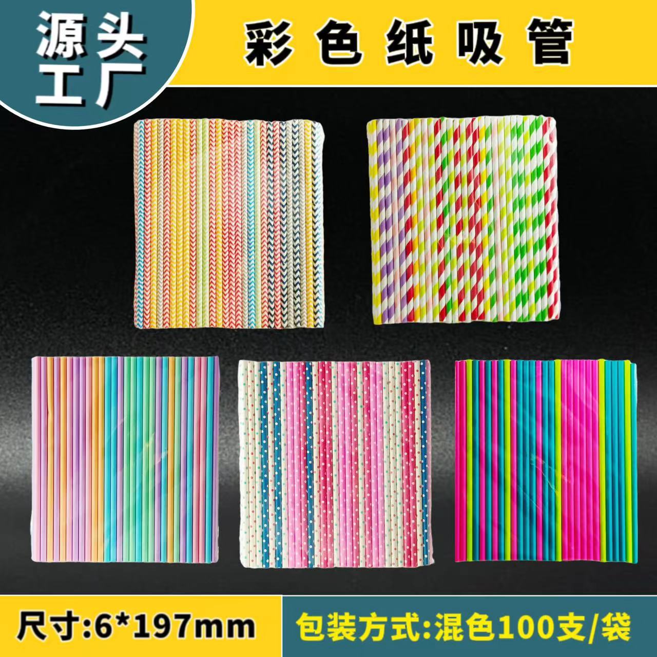 Pajita de papel de color mixto engrosada desechable grado alimenticio té con leche café degradable raya color sólido pajita mayoreo