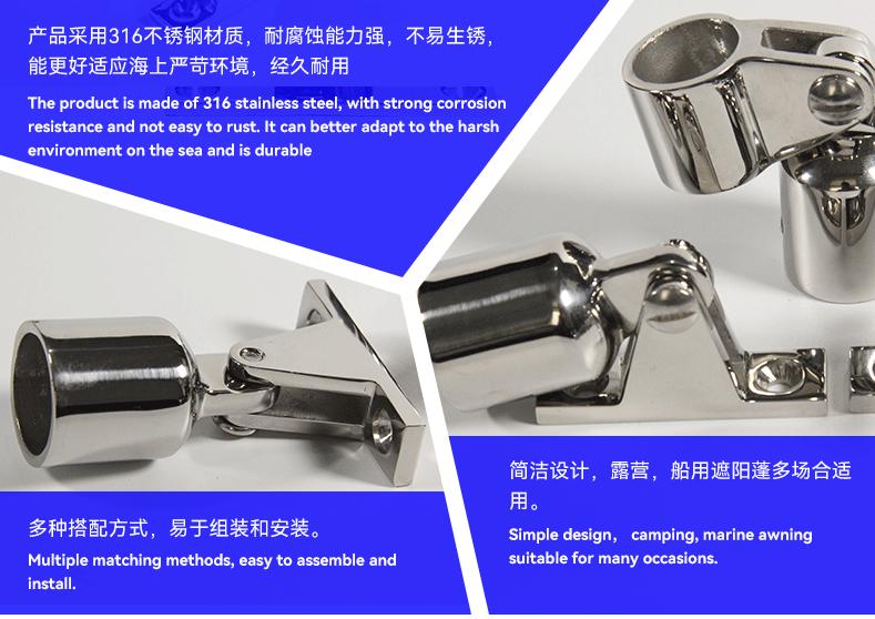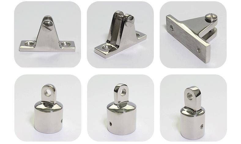 Fábrica: yangxin heritage metal products co., ltd. Nombre del producto: Toldo Bimini de 3 Arcos (Acero Inoxidable Deslizador de Mandíbula para Barco, Ojo de Tapa, Herrajes de Bisagra de Cubierta 12 Juegos) Material: acero inoxidable 316 Método de embalaje predeterminado: bolsa de burbujas OPP |