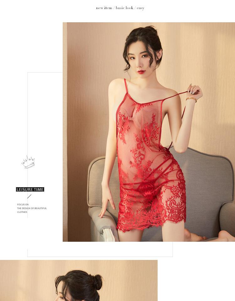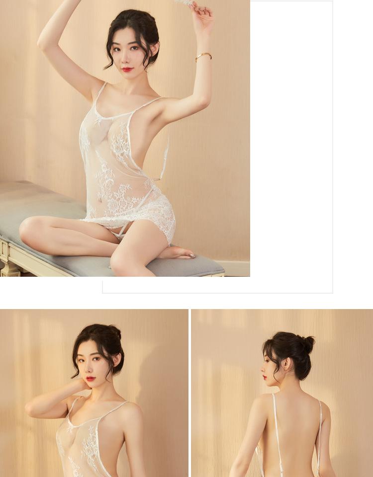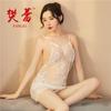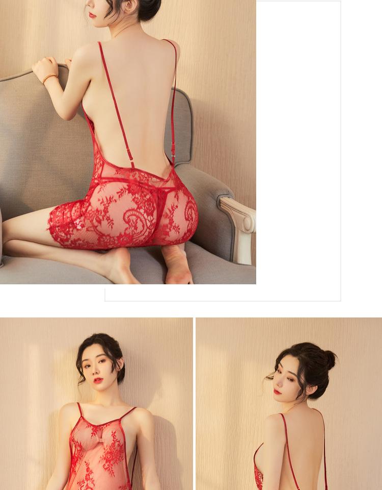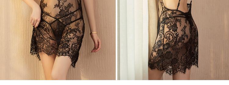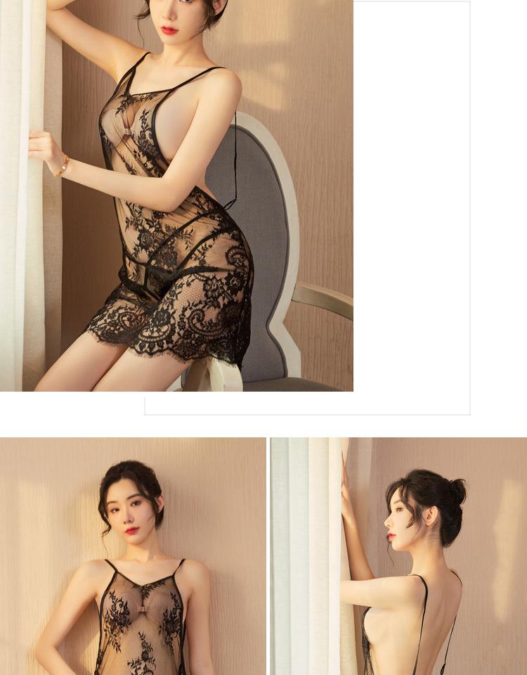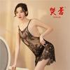 Ropa Interior Sexy Vestido de Dormir Negro Sexy para Mujer Pieza Única Espalda Descubierta Perspectiva Talla Grande 180 Jin Traje de Encaje de Tentación