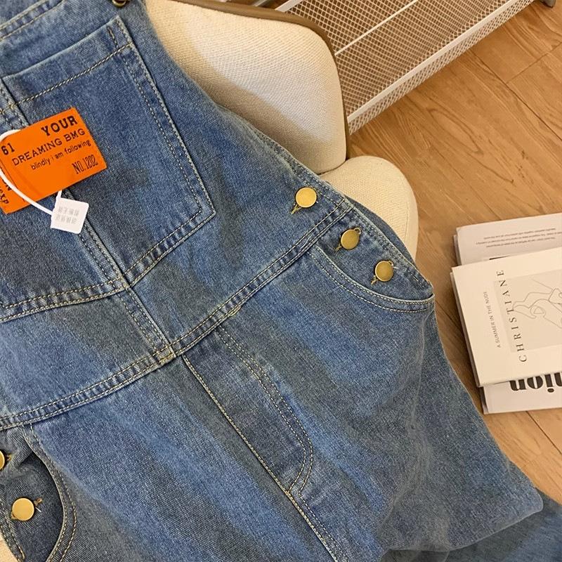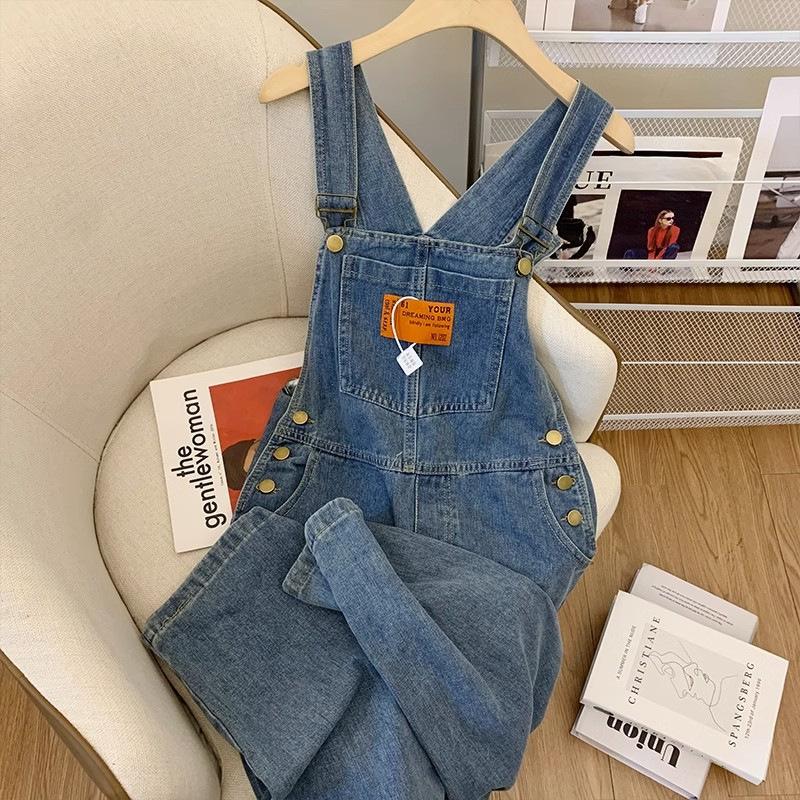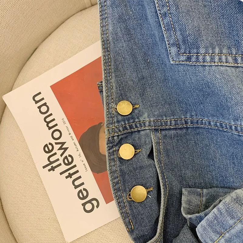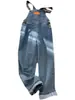 Pantalones de peto de mezclilla retro para mujer, otoño, diseño fresco con sentido de la sal, nicho, cintura alta, rectos, holgados, de pierna ancha, pantalones de una pieza