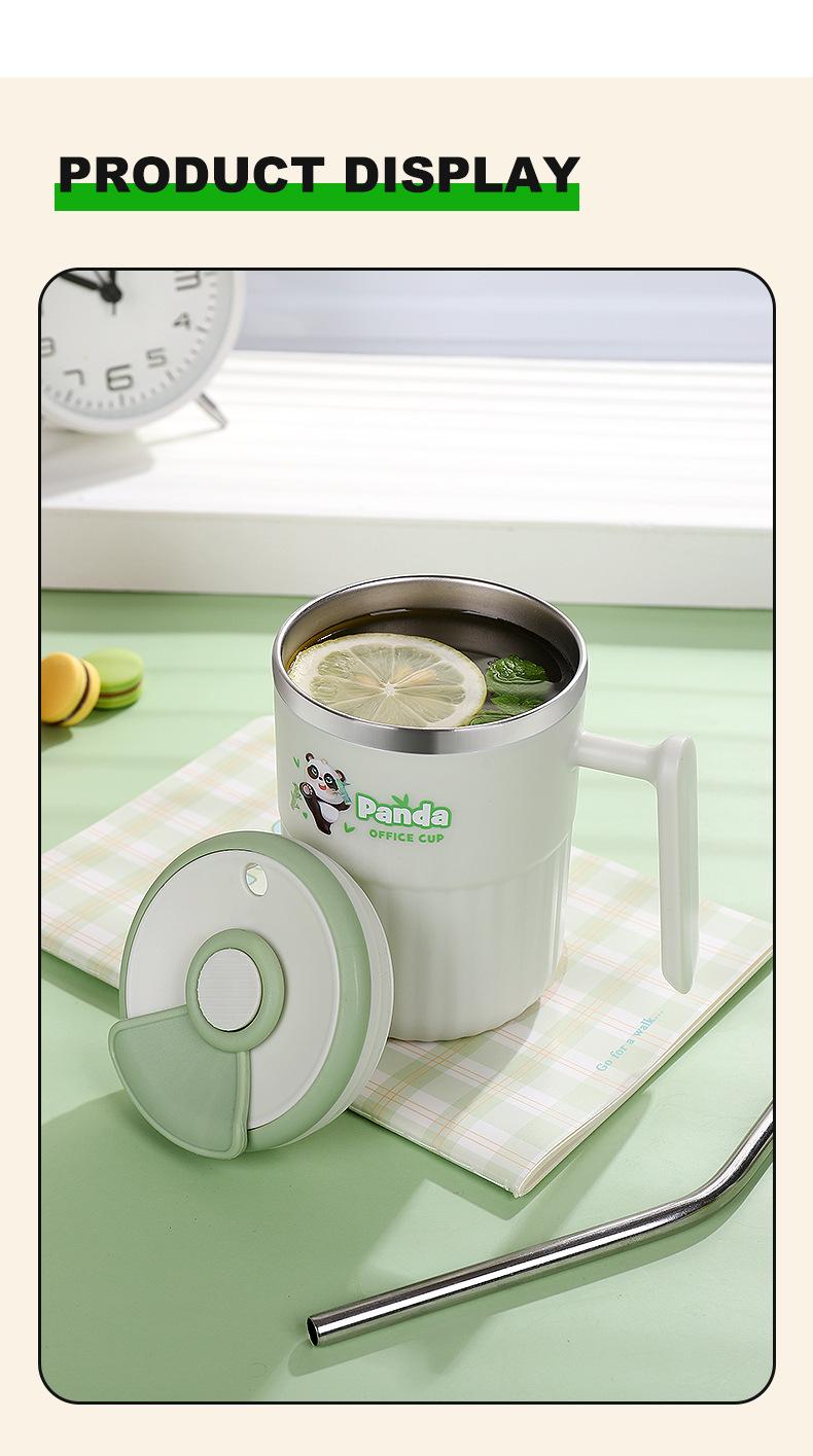 English version, Panda model, With spoon, New mug, Tea leakage