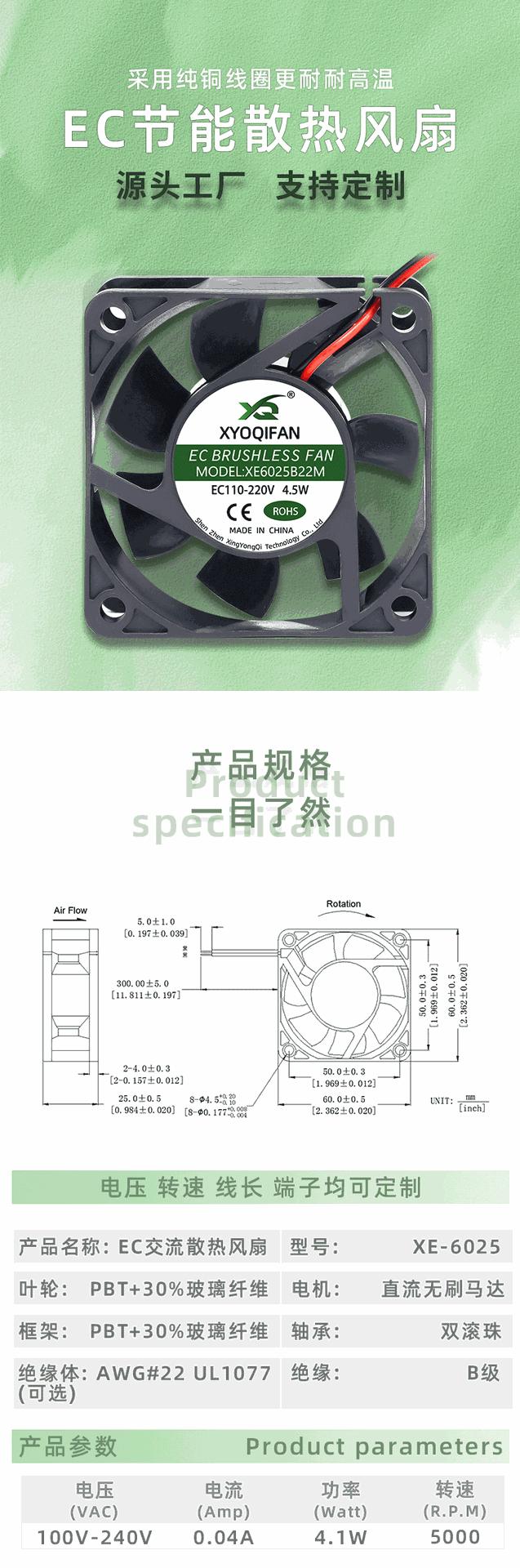 Ventilador de refrigeración EC6025 6 025 220 V CA Ventilador universal de 6 cm Ventilador de refrigeración de ahorro de energía y protección del medio ambiente
