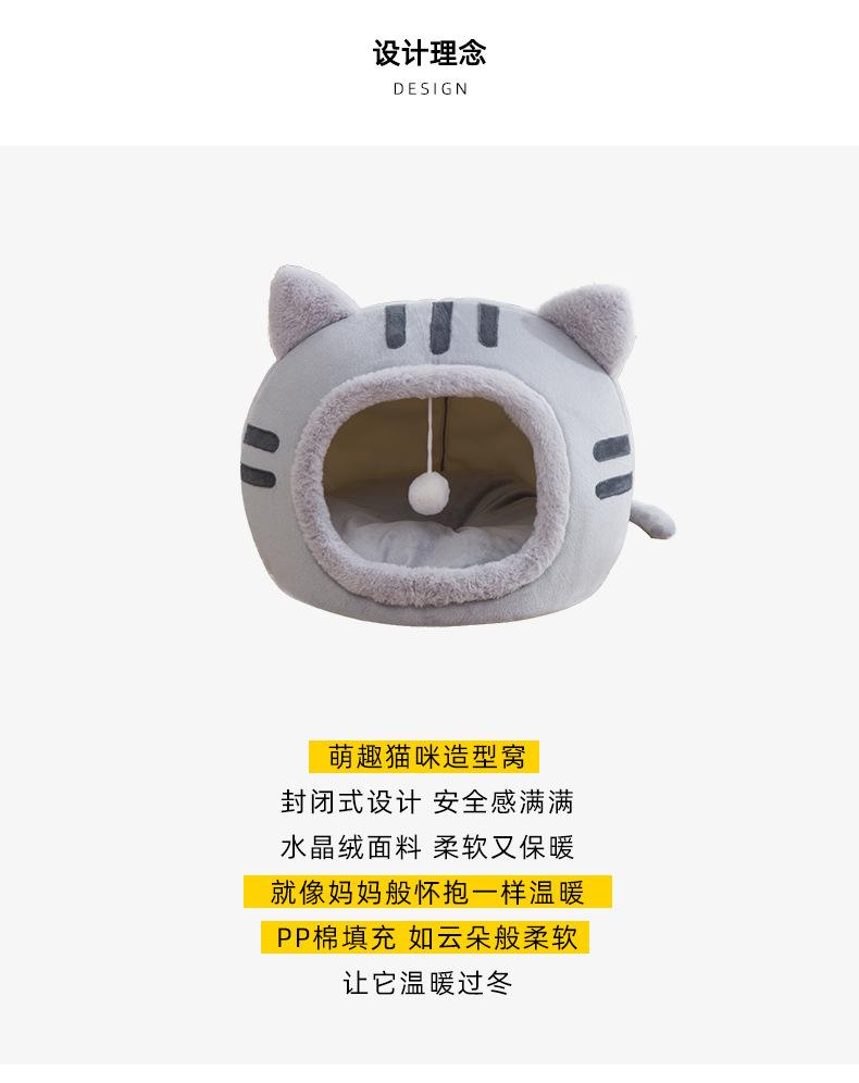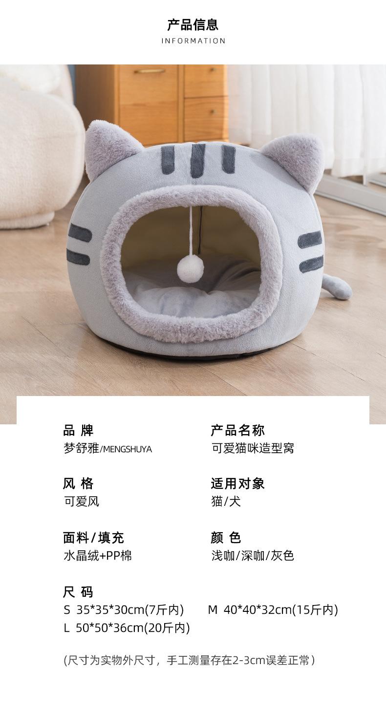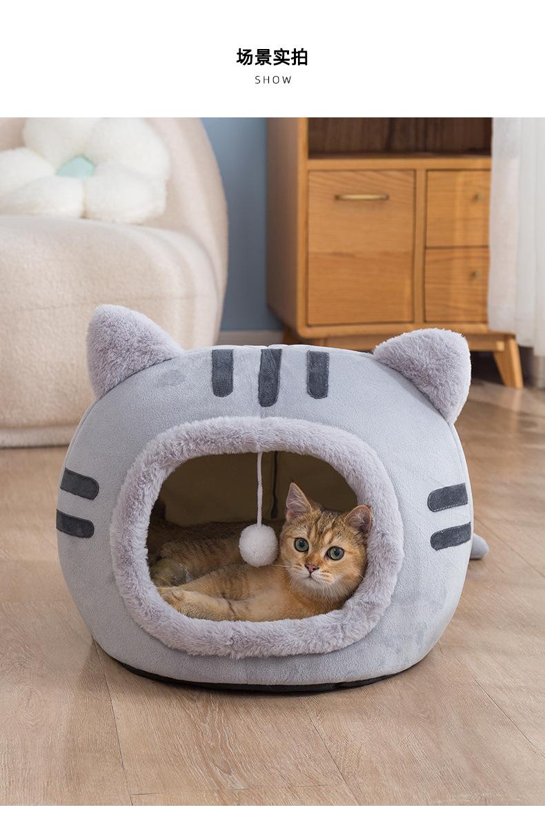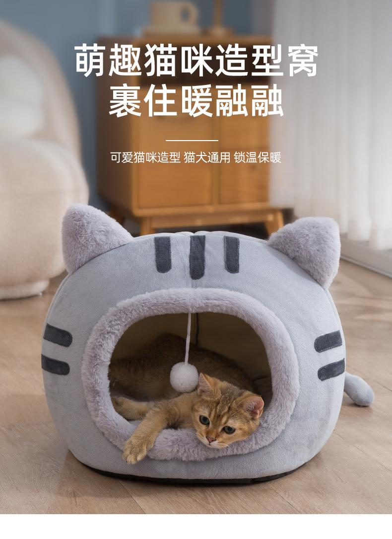 Otoño e Invierno Nuevo Kennel para Perros con Forma de Gato Invierno Popular en Internet Cálido Semicerrado Nido para Gatos Colchoneta Suministros para Mascotas Casa para Gatos