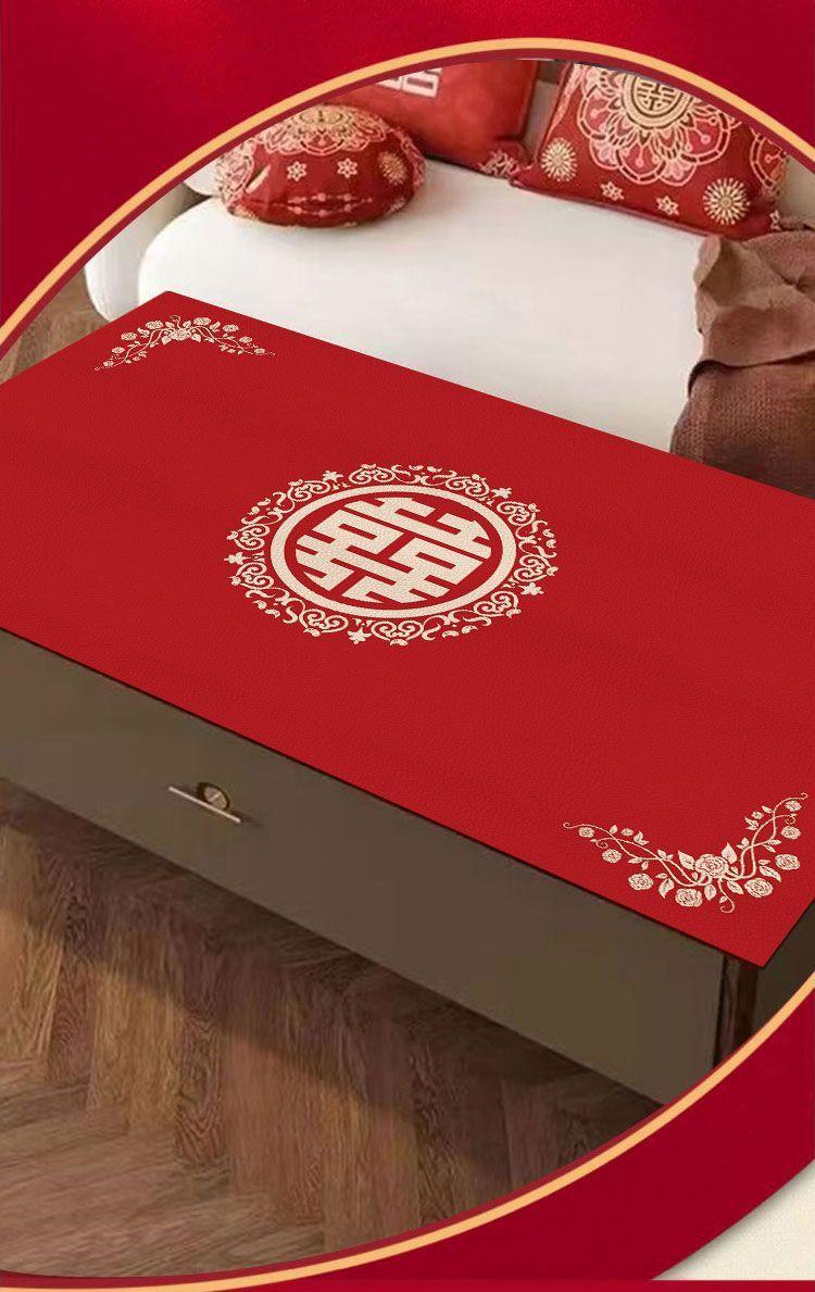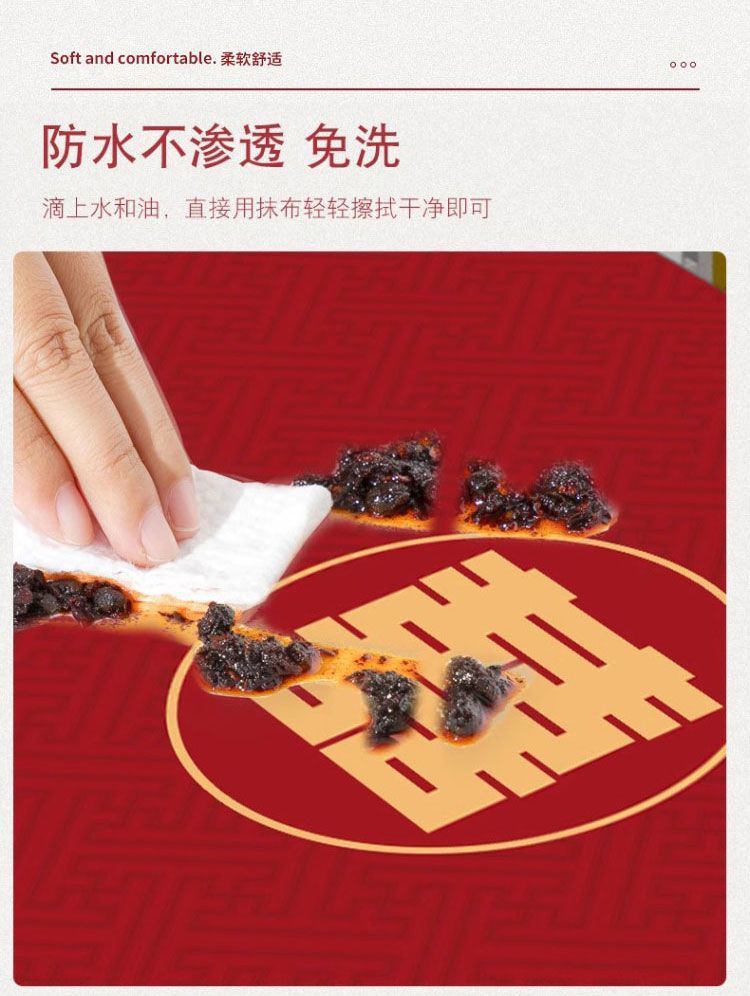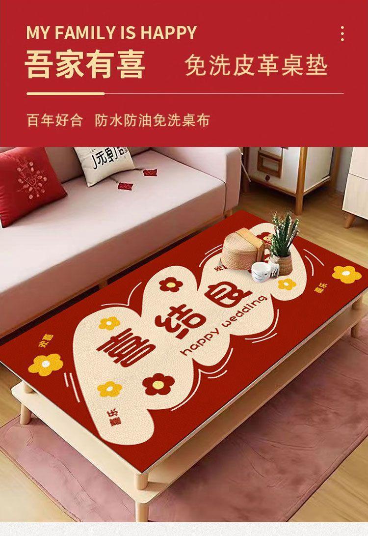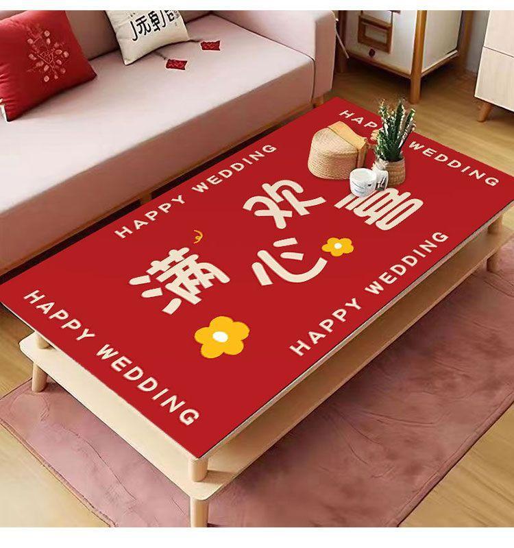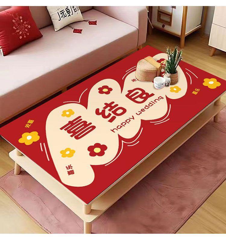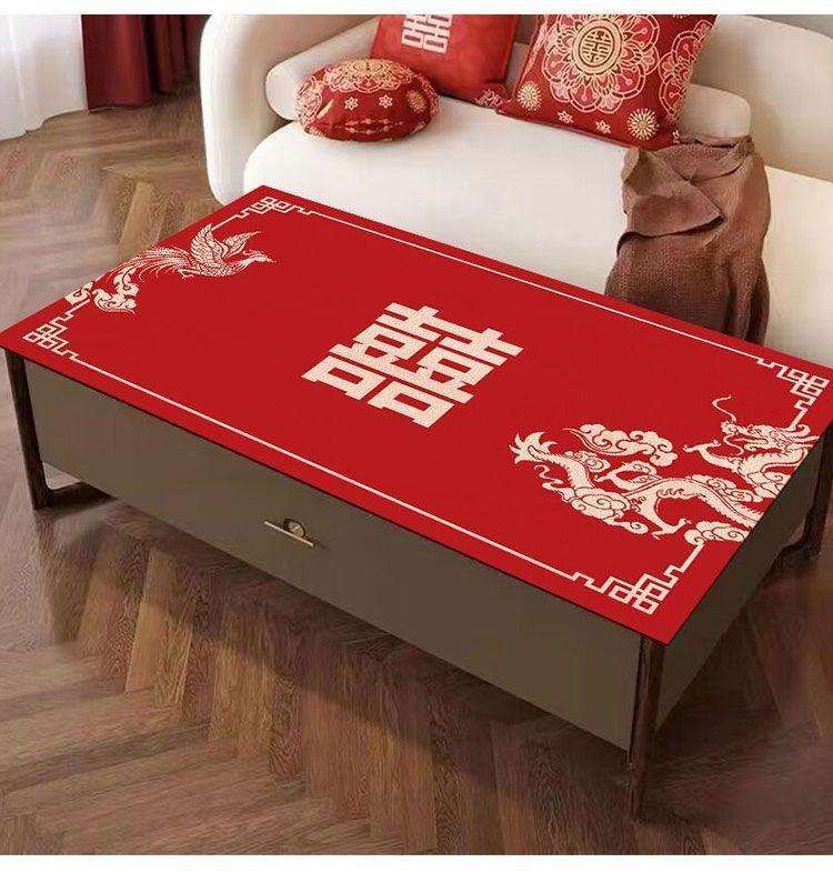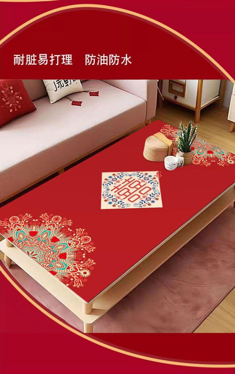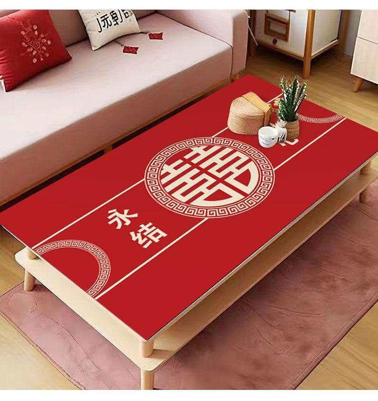 Mantel rojo de boda festivo para mesa de centro doméstico de PVC sin cortar lavable impermeable anti-escaldaduras