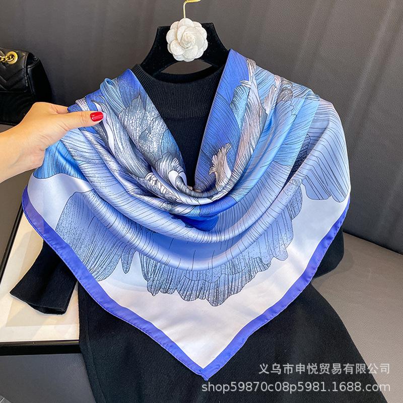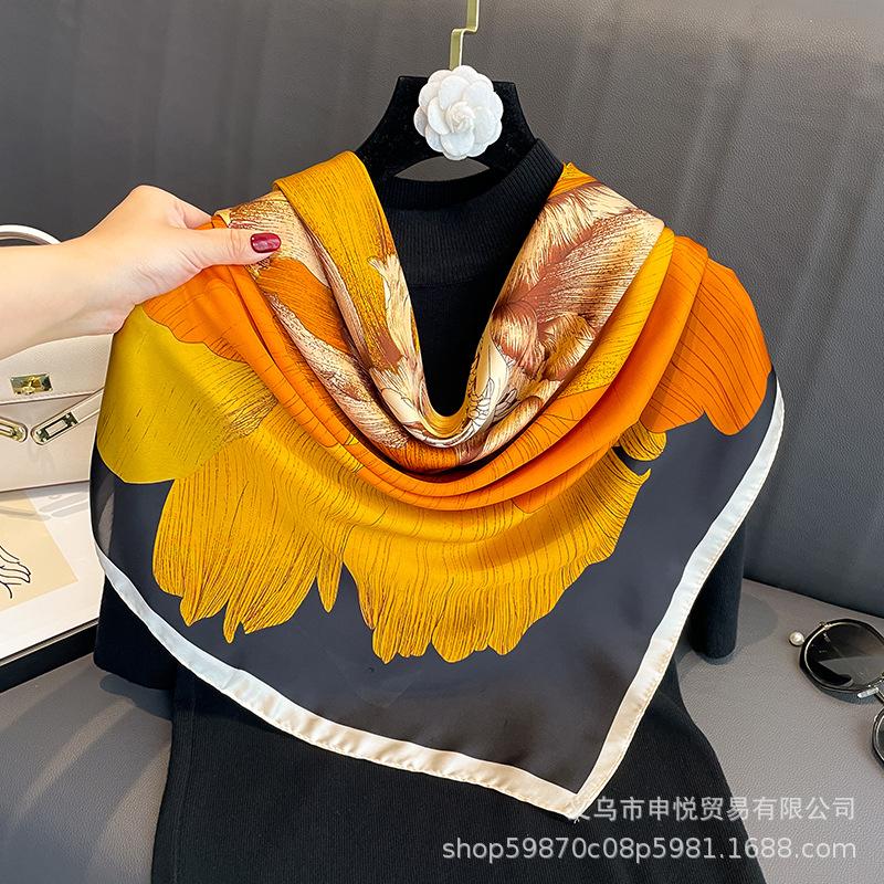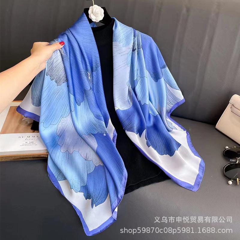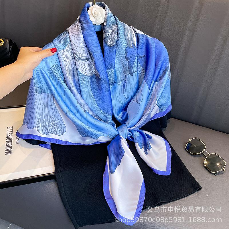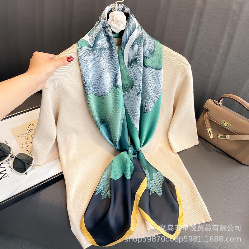 Compra Bufanda cuadrada de satén de seda elegante con estampado floral para mujer, chal de moda para primavera, otoño y verano, con protector solar 110 al por mayor en Joom.pro