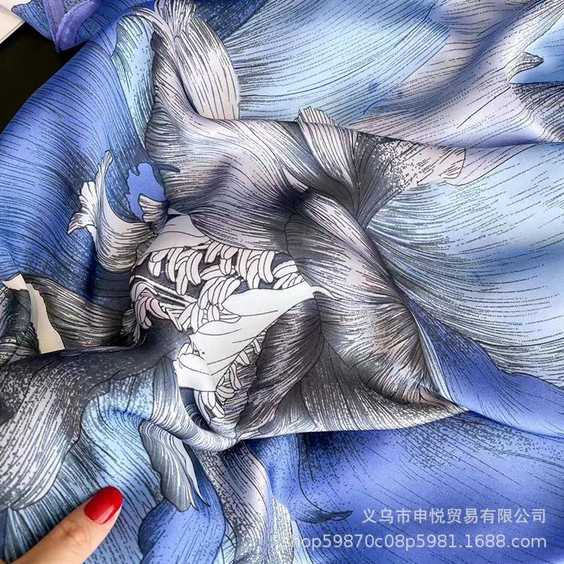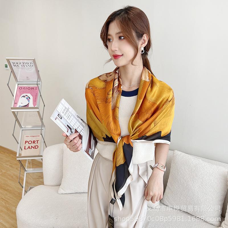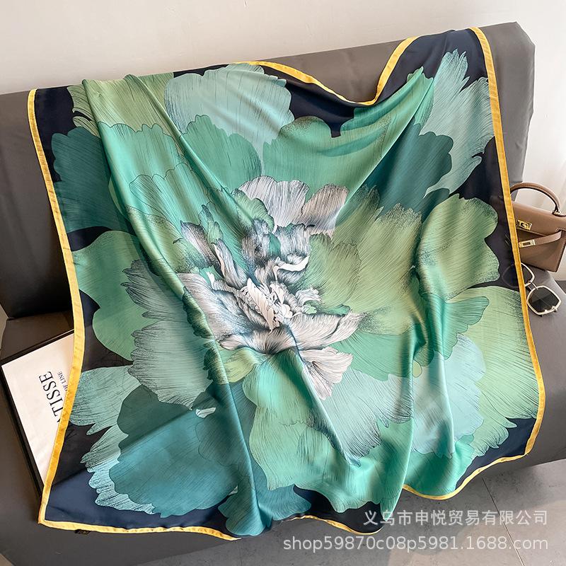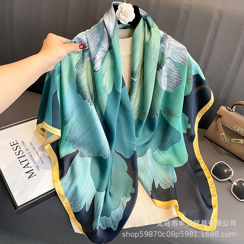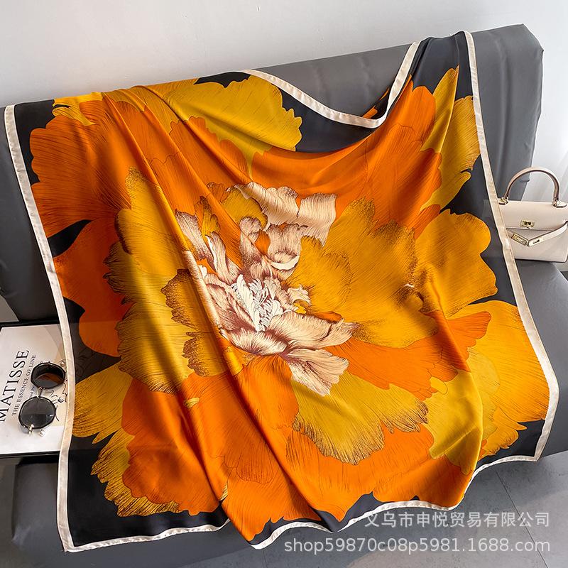 Compra Bufanda cuadrada de satén de seda elegante con estampado floral para mujer, chal de moda para primavera, otoño y verano, con protector solar 110 al por mayor en Joom.pro