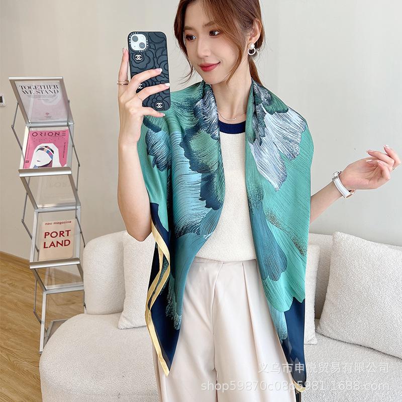 Bufanda cuadrada de satén de seda elegante con estampado floral para mujer, chal de moda para primavera, otoño y verano, con protector solar 110