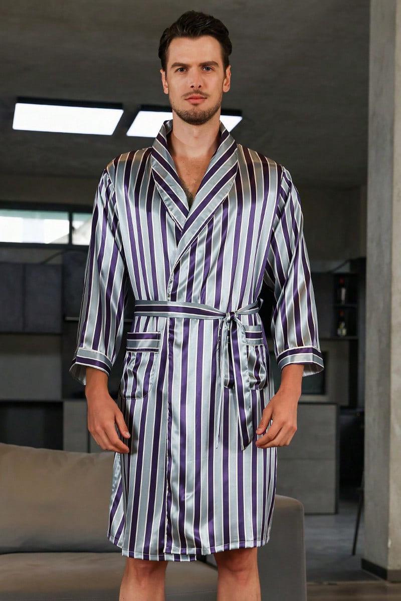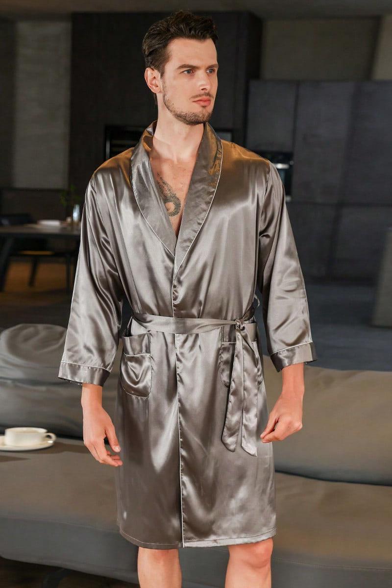 Albornoz de seda de verano para hombre, pijama de seda fina de hielo, talla grande, ropa de casa, novedad transfronteriza