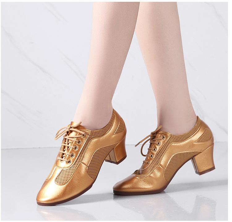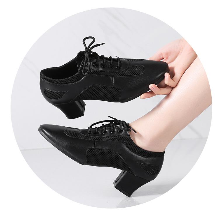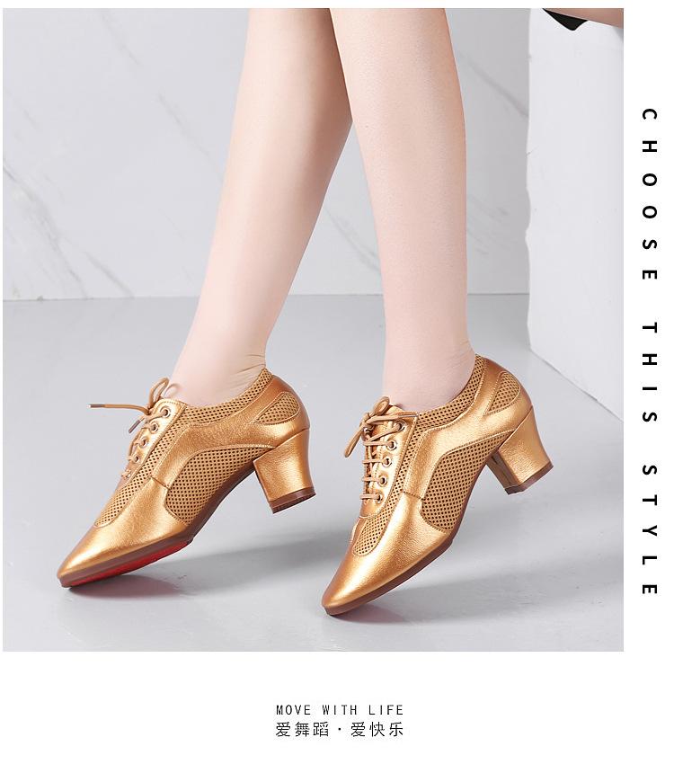 Zapatos de baile de verano para mujer, zapatos de baile cuadrados para mujer, zapatos de baile para exteriores de tacón medio transpirables con suela suave, zapatos de baile latino tipo marinero