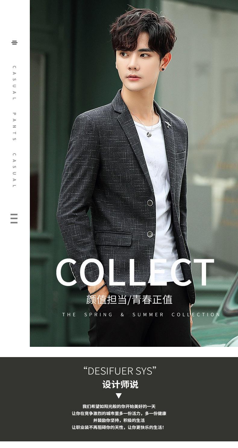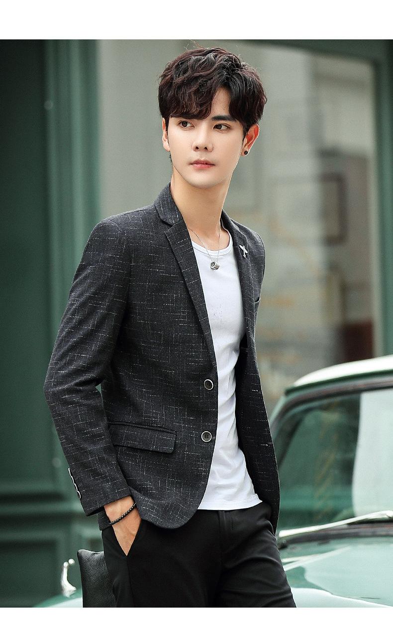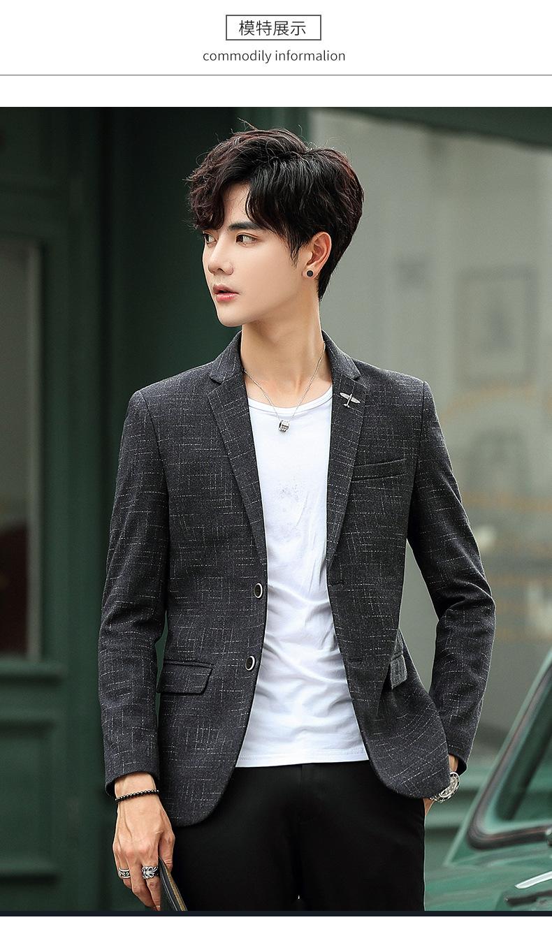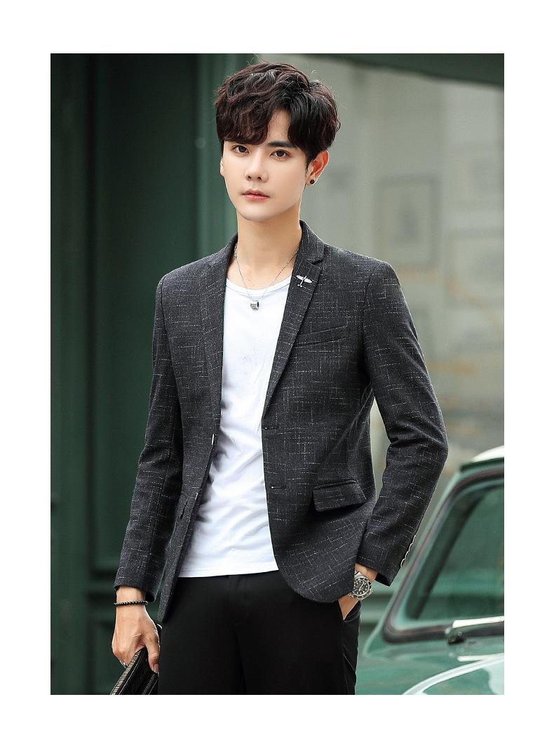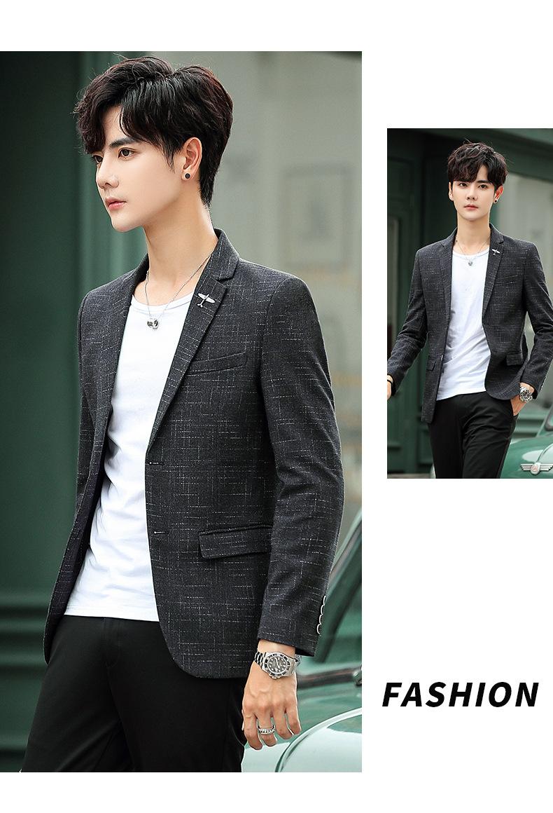 Chaqueta de Traje para Hombre de Primavera y Otoño Coreana Slim-fit Traje Profesional para Hombre Top de Un Botón Occidental Doble Vestido de Padrino