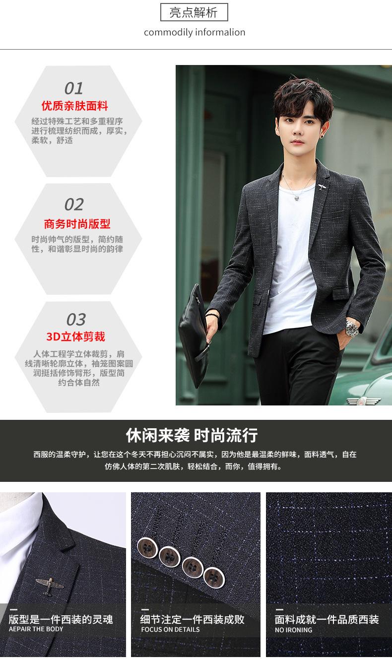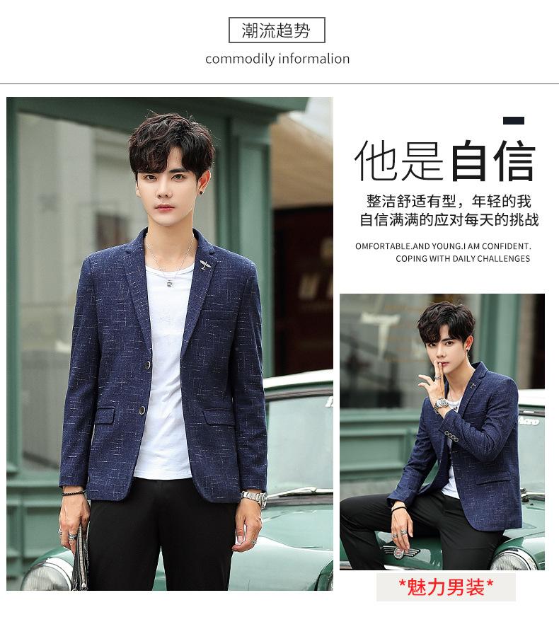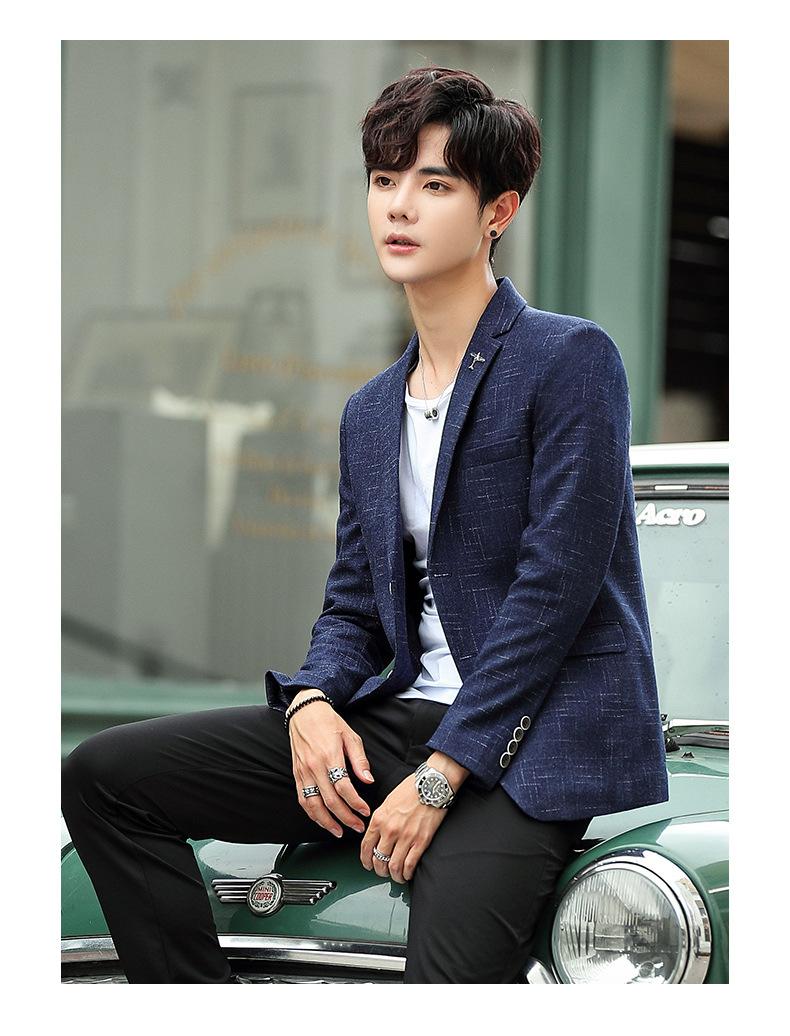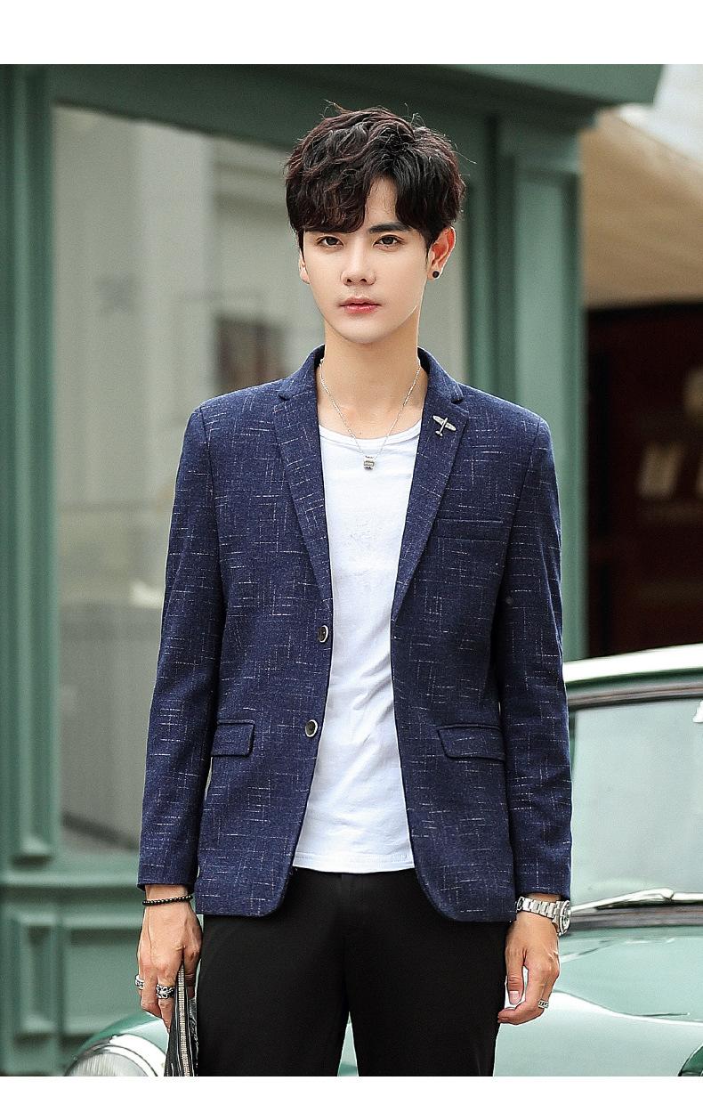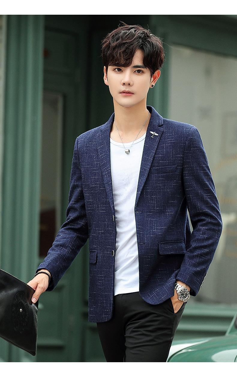 Chaqueta de Traje para Hombre de Primavera y Otoño Coreana Slim-fit Traje Profesional para Hombre Top de Un Botón Occidental Doble Vestido de Padrino