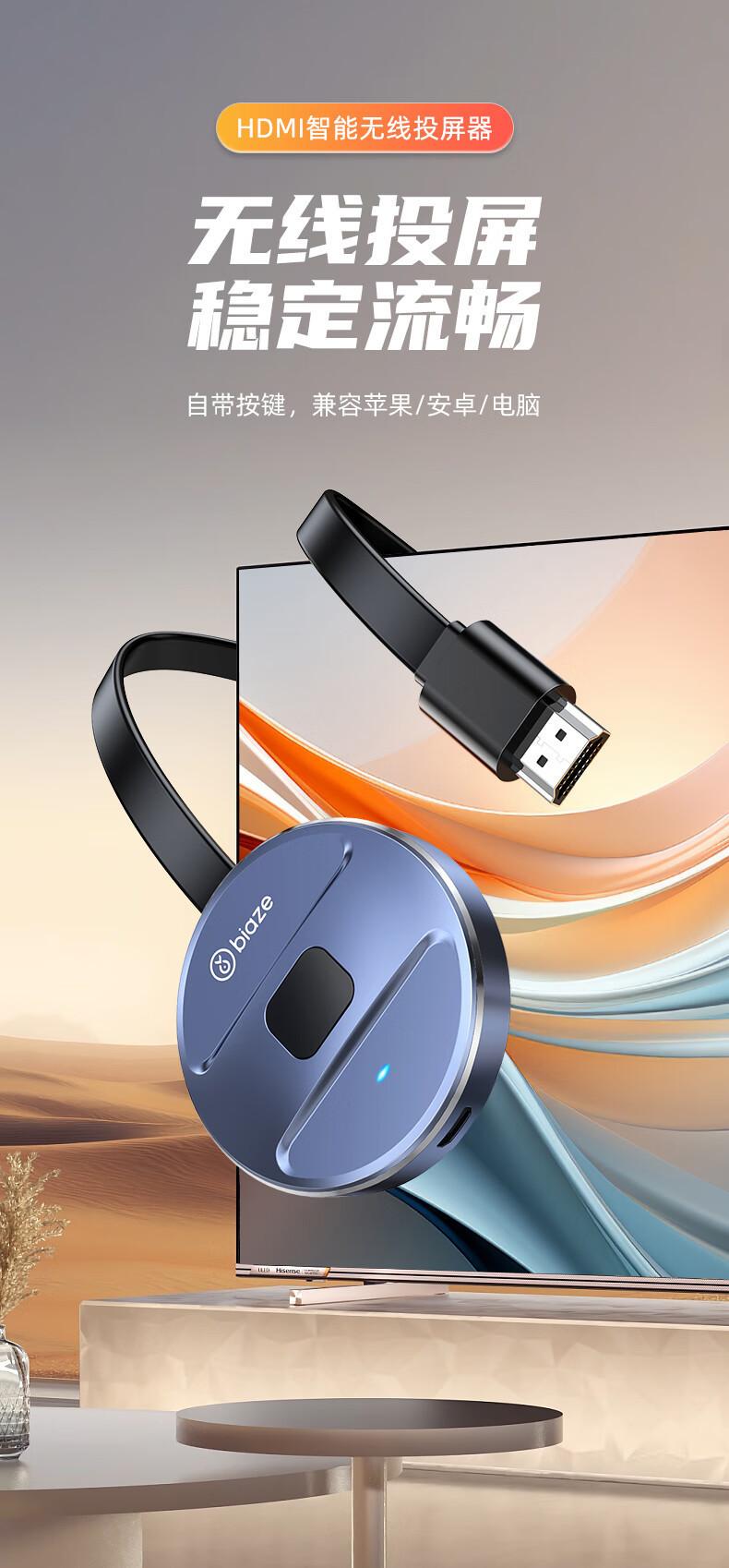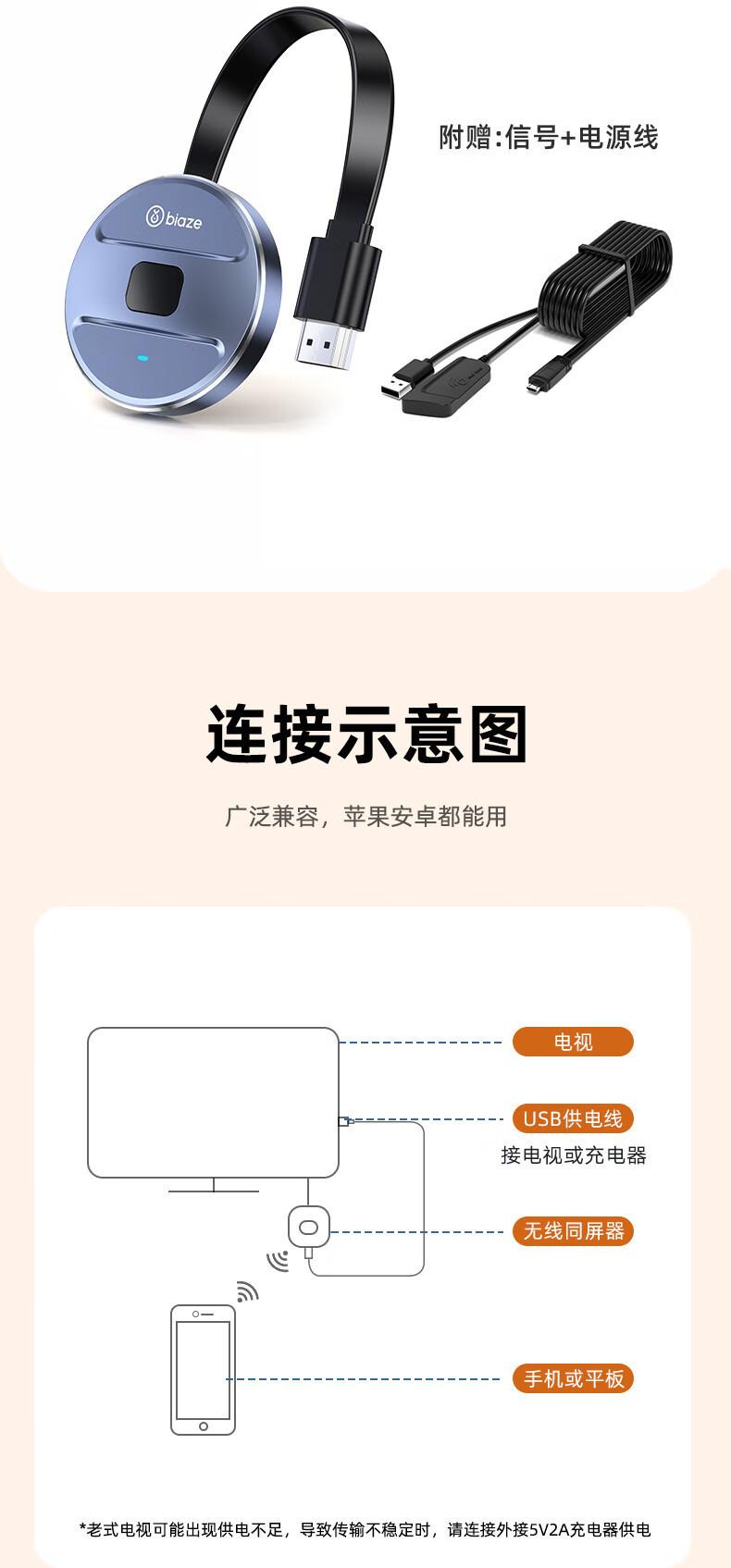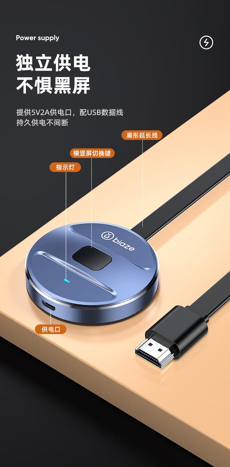 Proyector de pantalla inalámbrico Biaz 5G +2.4 Transmisión de audio y video de doble frecuencia en la misma pantalla del teléfono móvil y la computadora conectada al monitor de TV