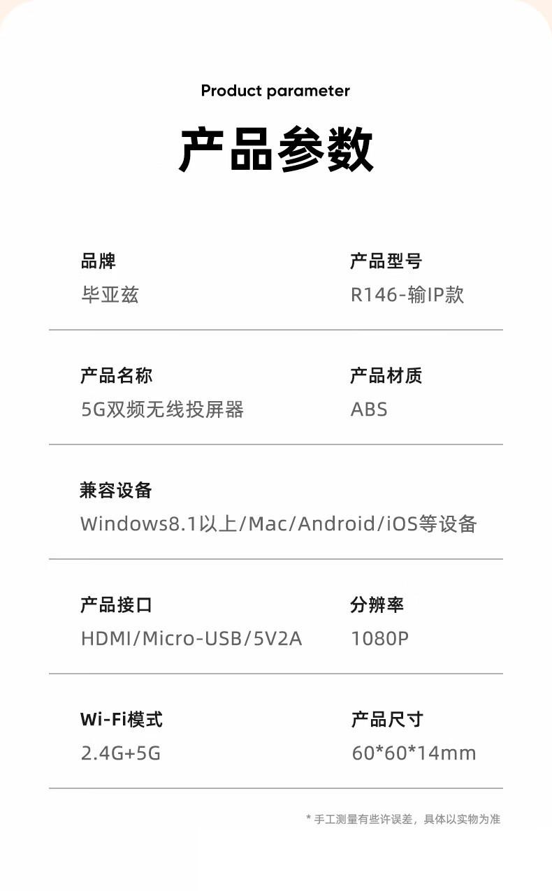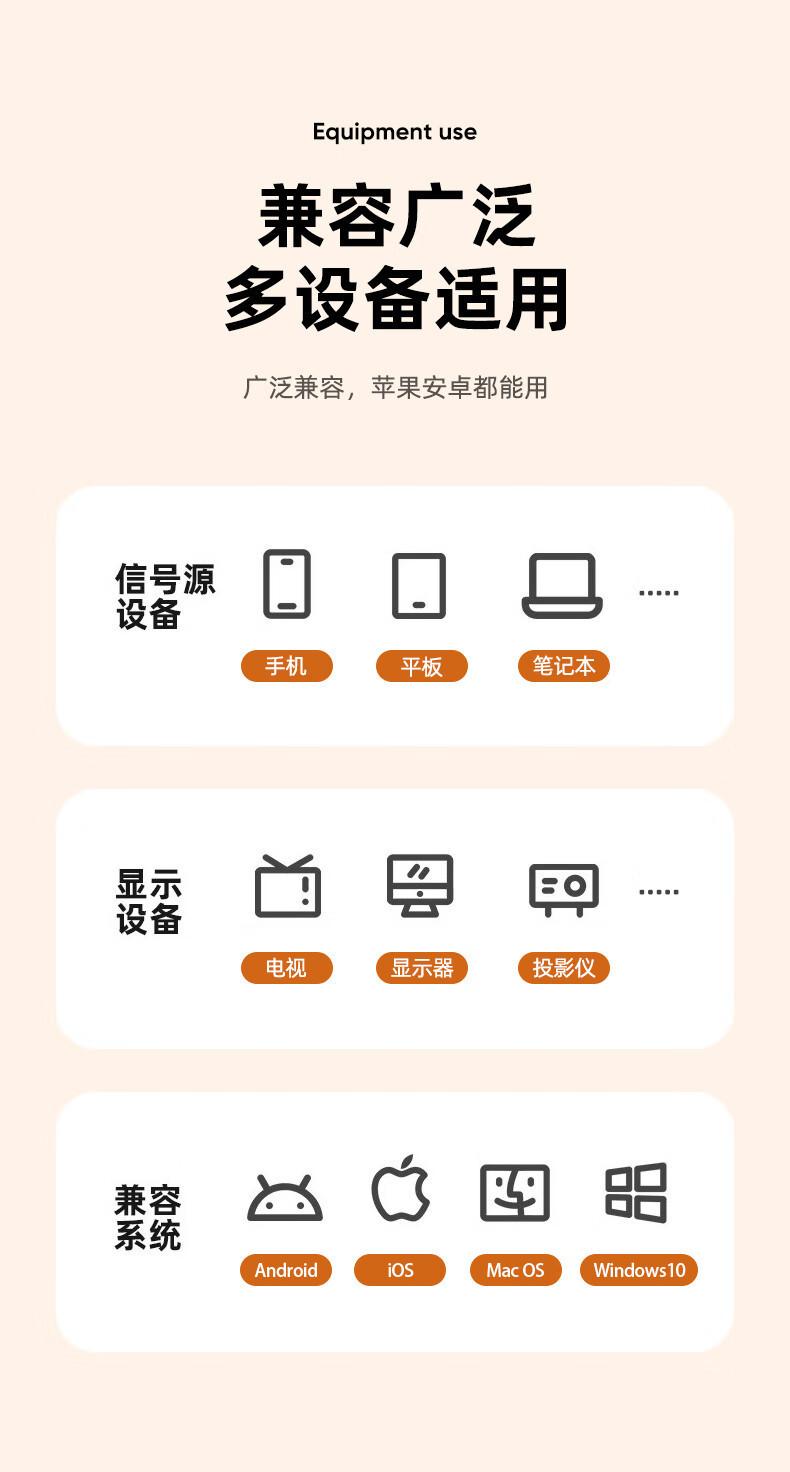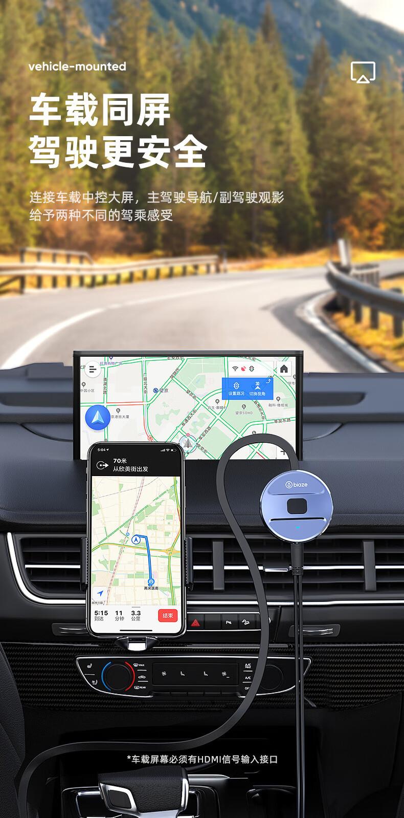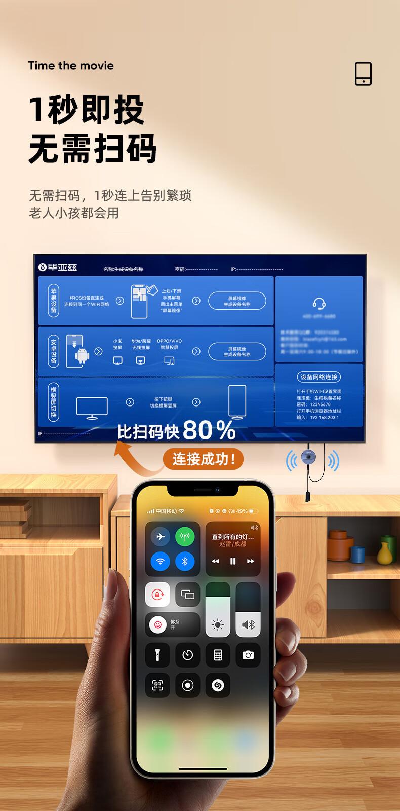 Proyector de pantalla inalámbrico Biaz 5G +2.4 Transmisión de audio y video de doble frecuencia en la misma pantalla del teléfono móvil y la computadora conectada al monitor de TV