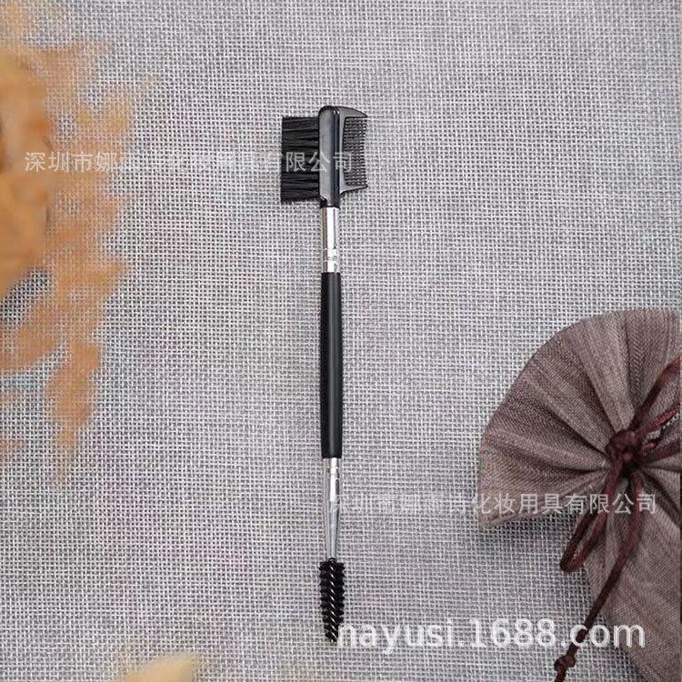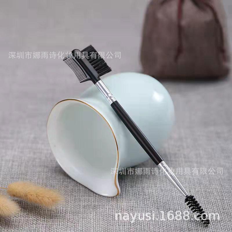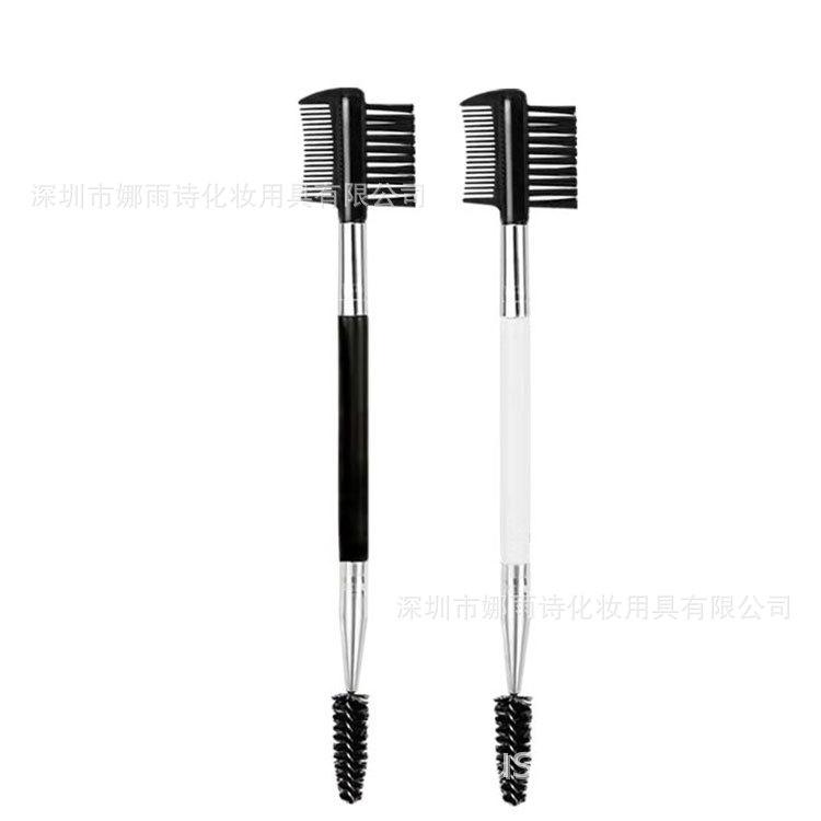 Herramienta de pincel de maquillaje de doble cabezal de doble uso, cepillo para cejas, cepillo rizador de pestañas, peine para cejas, peine portátil, un juego