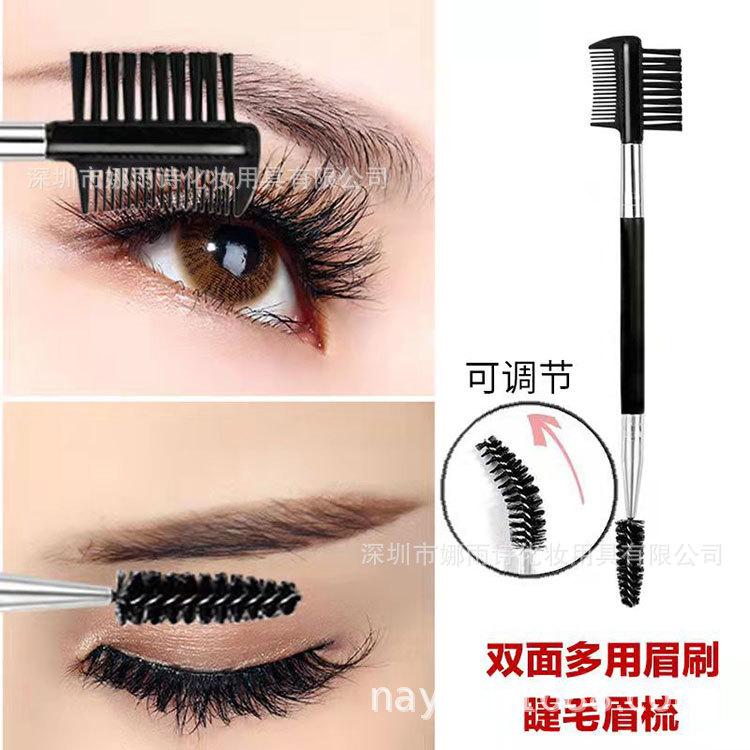 Herramienta de maquillaje de doble uso, cepillo de acero de doble cabezal, cepillo para cejas, cepillo enrollable para pestañas, cepillo reparador de cejas, peine, juego de brochas de maquillaje