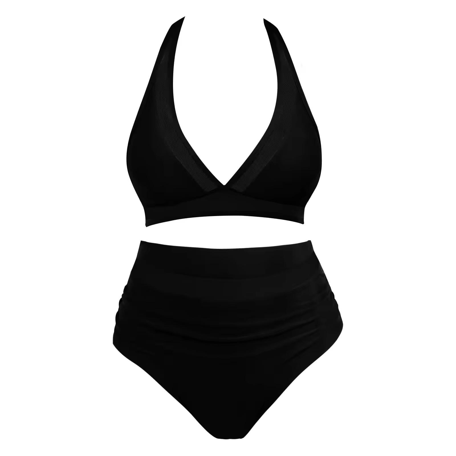 Traje de Baño Amazon 2024 con Cuello Halter Dividido para Mujer, Traje de Baño Bikini Transfronterizo, Bikini Deportivo de Alta Elasticidad