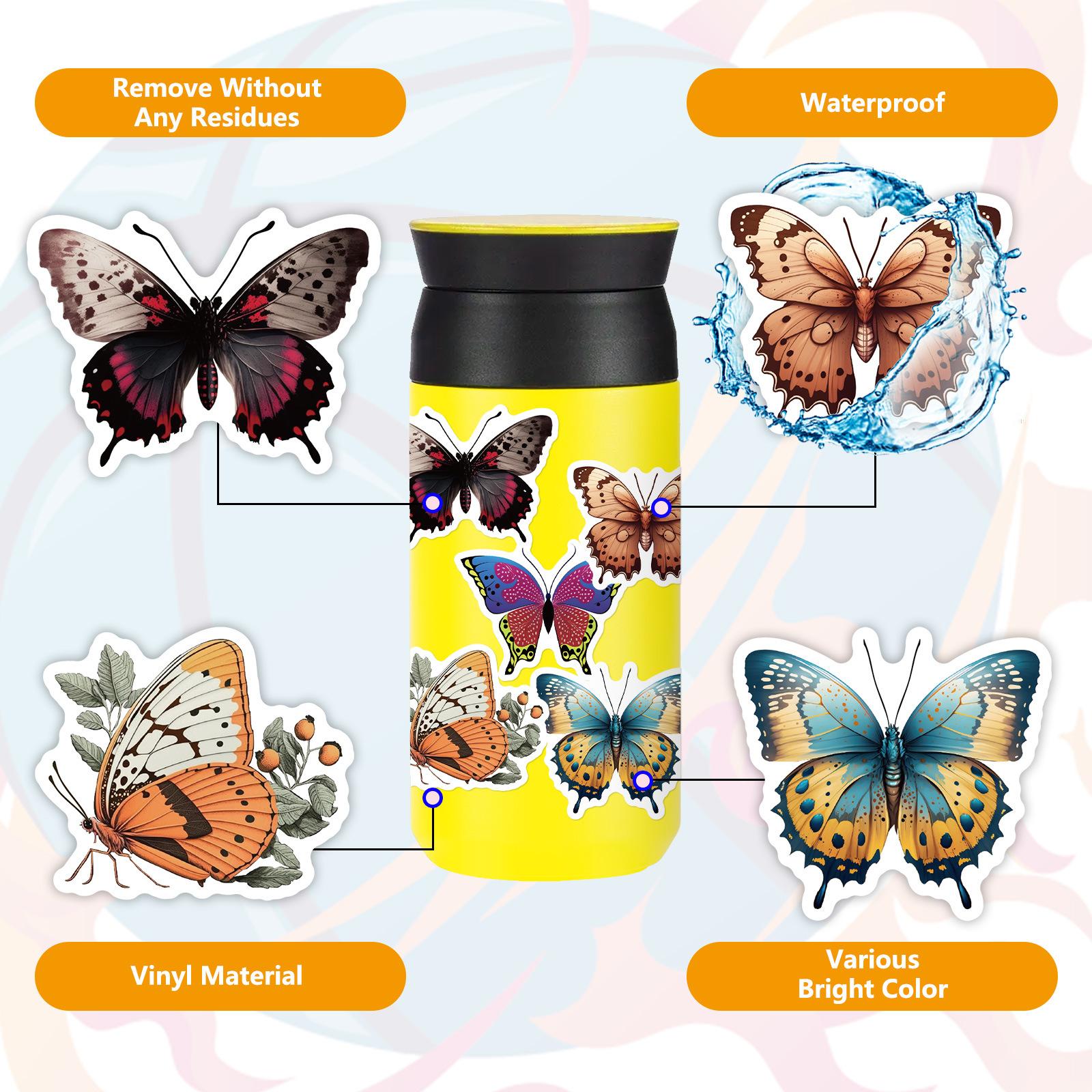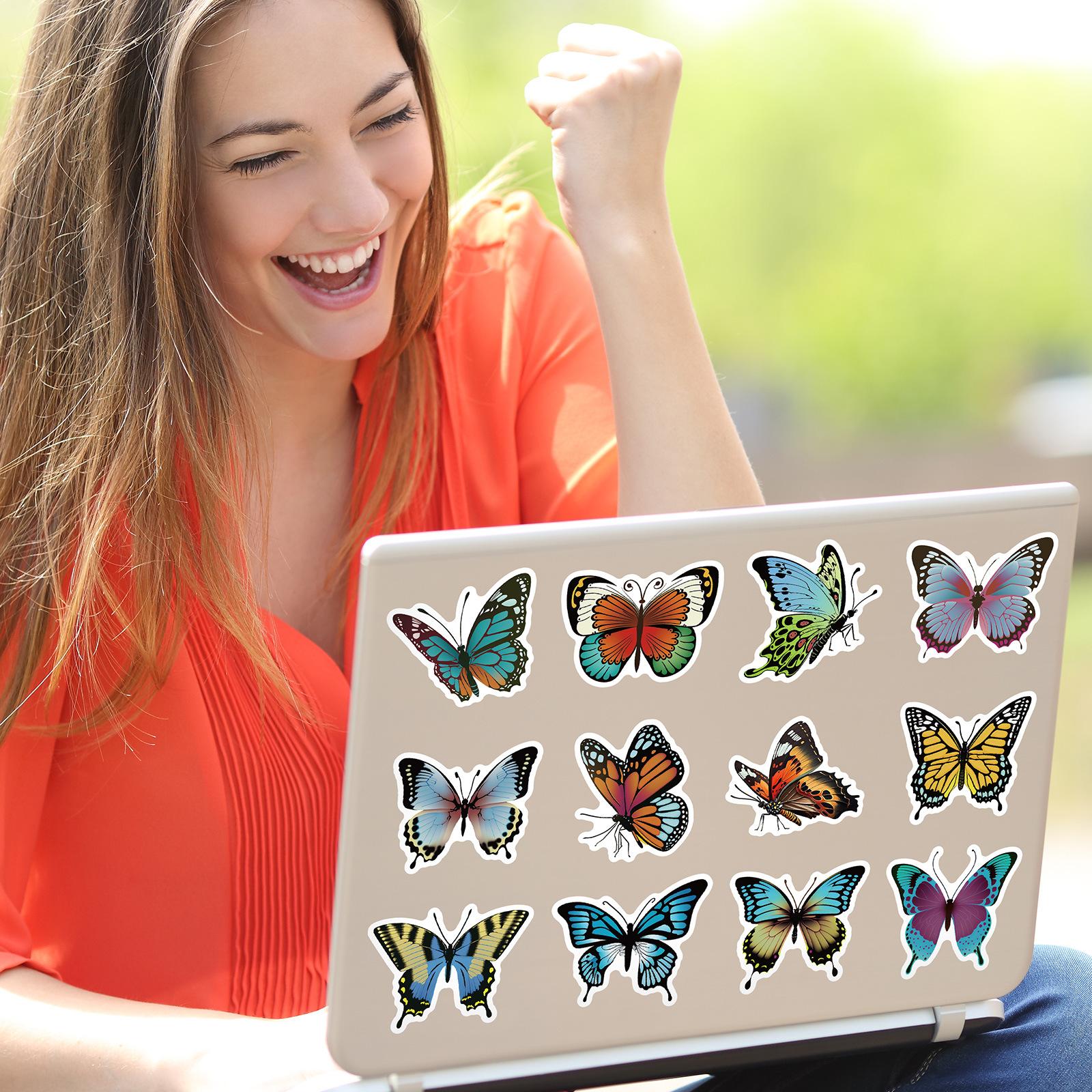 50 pegatinas de mariposas con diseño de dibujos animados de colores, mariposas, grafitis, cuadernos, monopatines y tazas de agua.