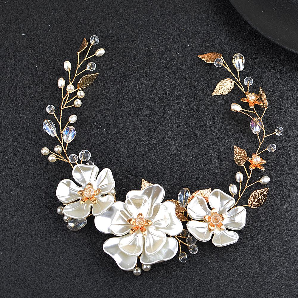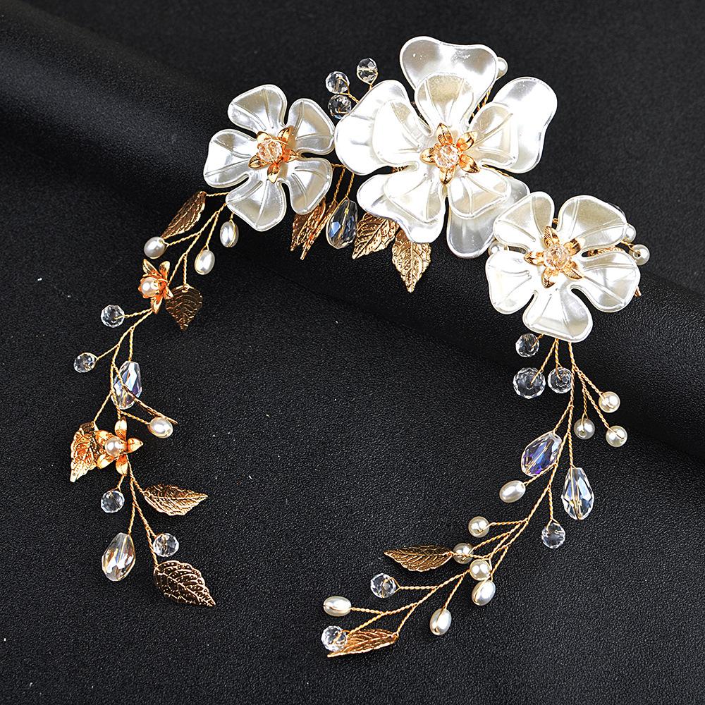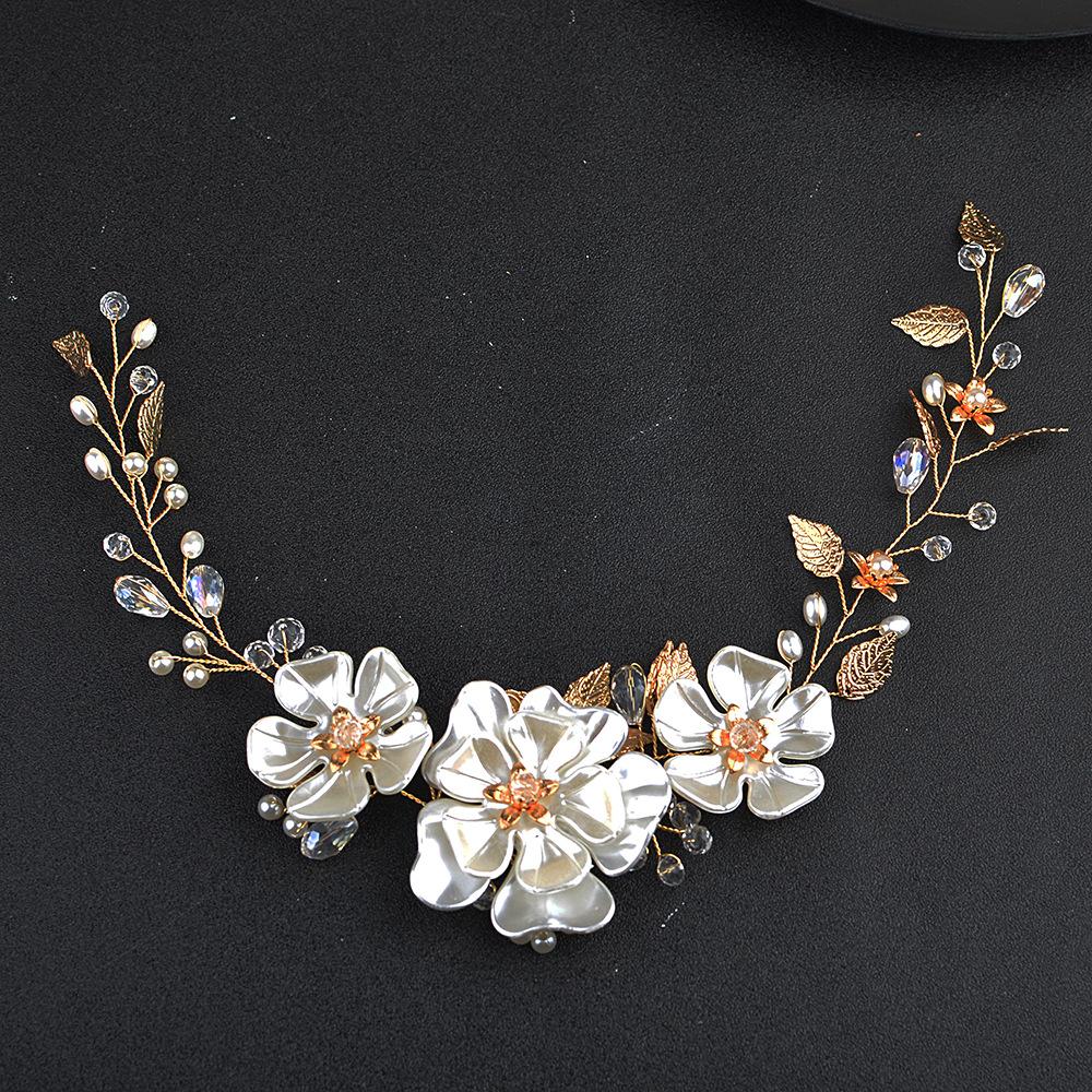 Tocado de perlas hecho a mano para novia de comercio exterior, accesorios para vestido de novia con hojas de perla blanca, diadema, accesorios para novia