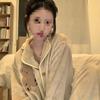 Pijama de otoño e invierno para mujer, felpa dulce, cárdigan, pantalones de manga larga, forro polar de coral, talla grande para chica gordita, ropa para el hogar