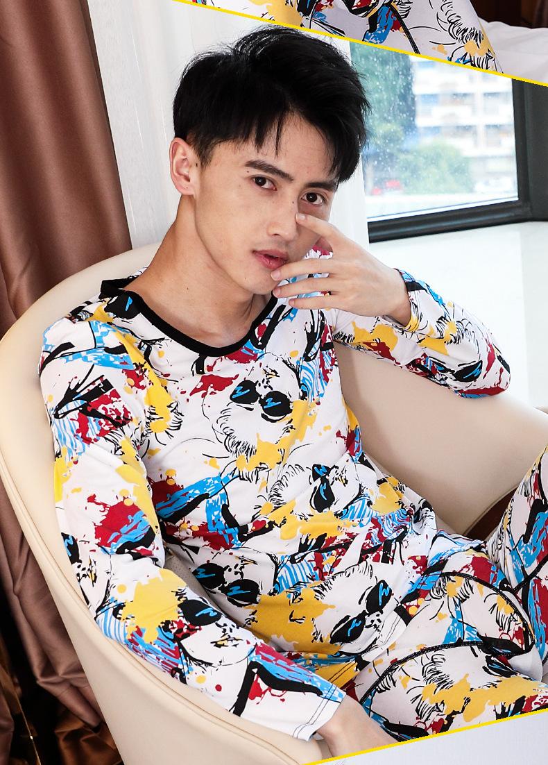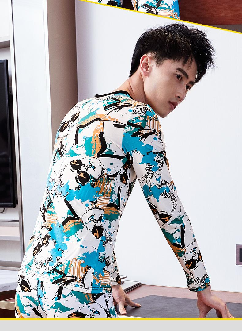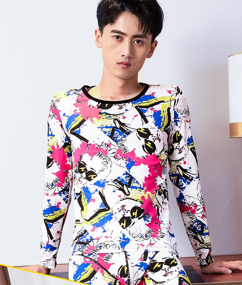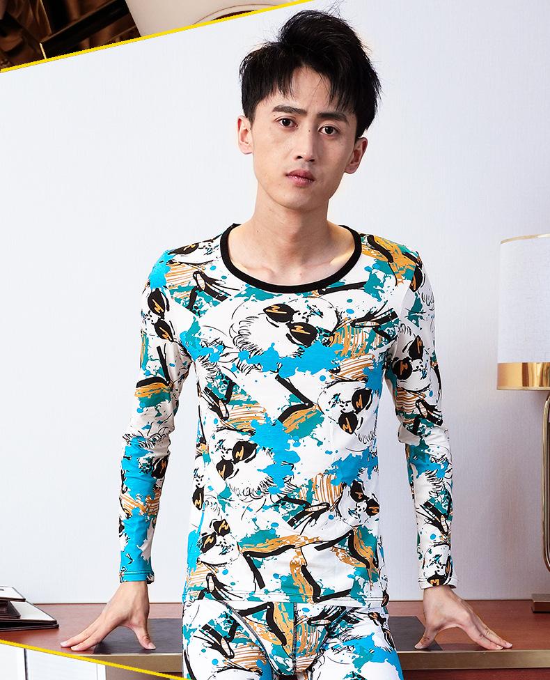Ropa interior básica de algodón para hombre, de otoño e invierno, de una pieza, de moda, fina y cálida, con cuello redondo y corte entallado.