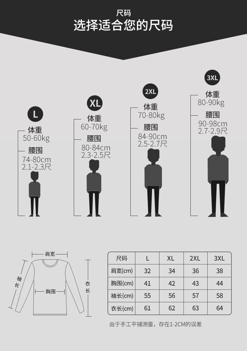 170(L), 175(XL), 180(XXL), 185(XXXL)