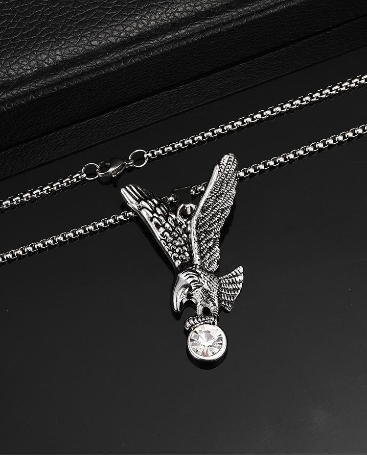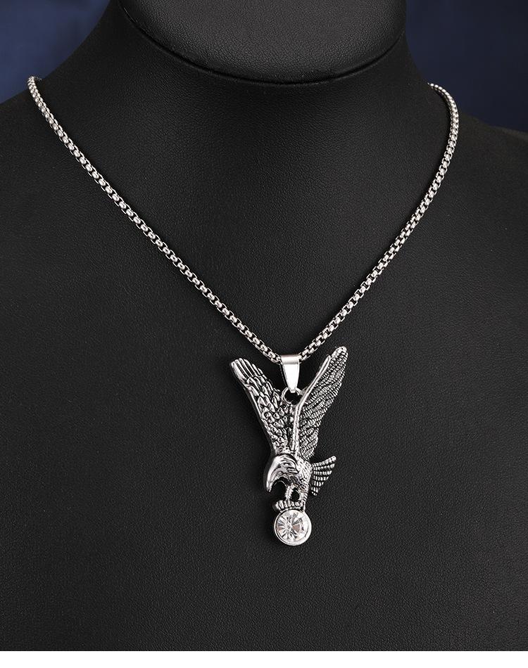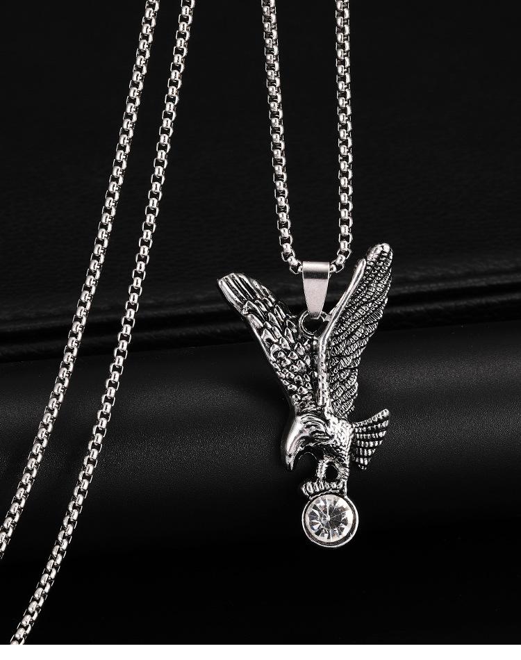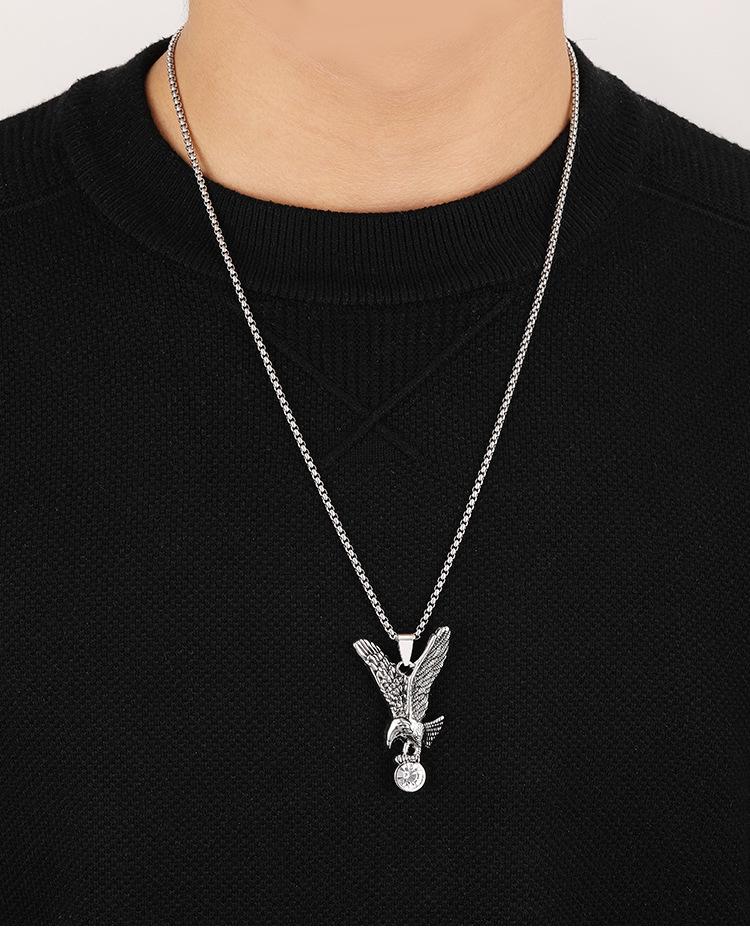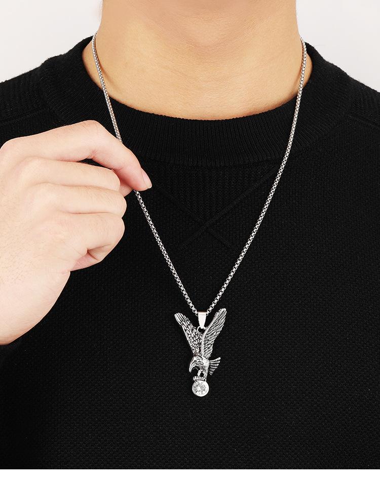 Colgante de águila de primavera 2025, estilo hip hop, popular en Europa y América, con circonitas, collar de acero inoxidable para hombre.